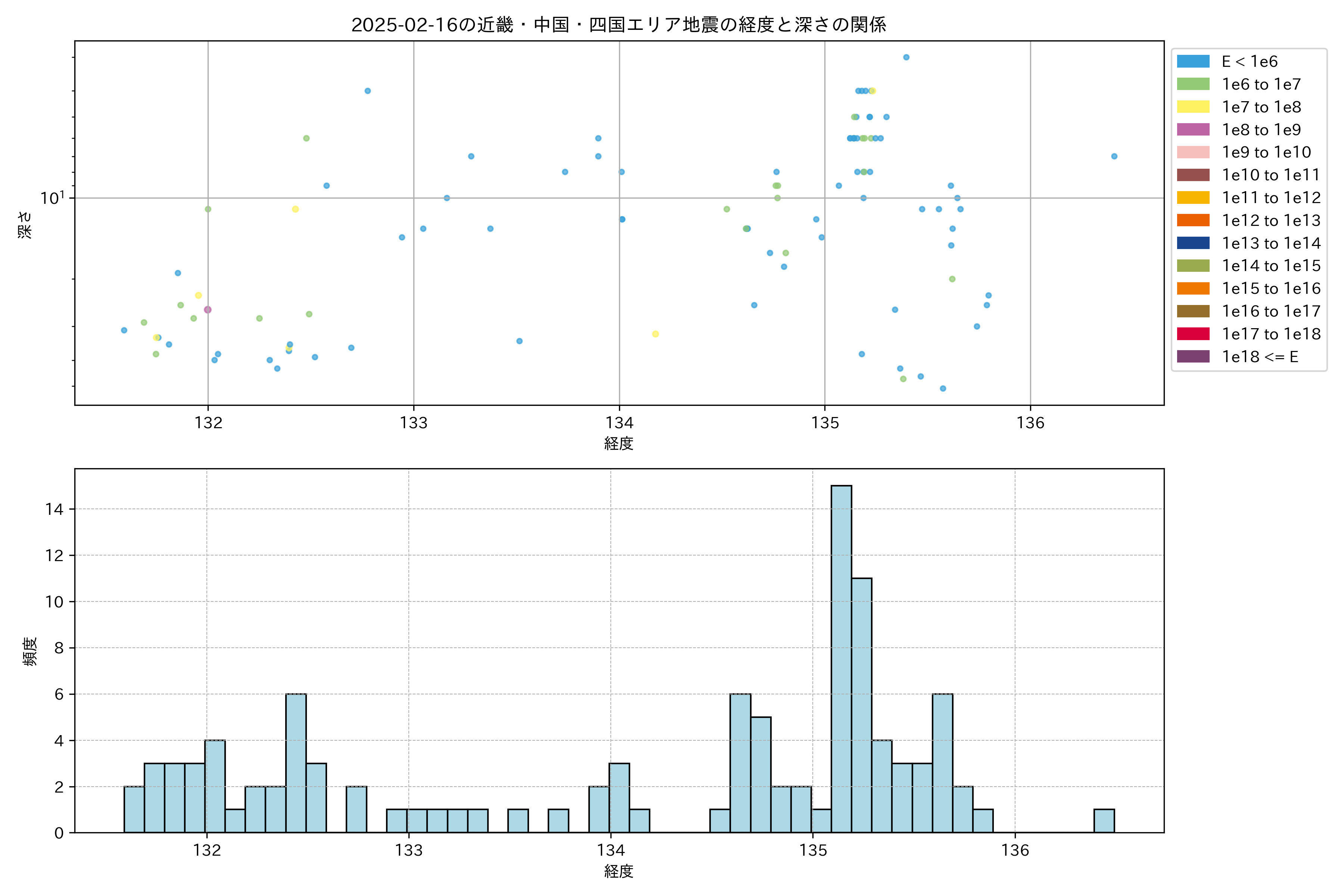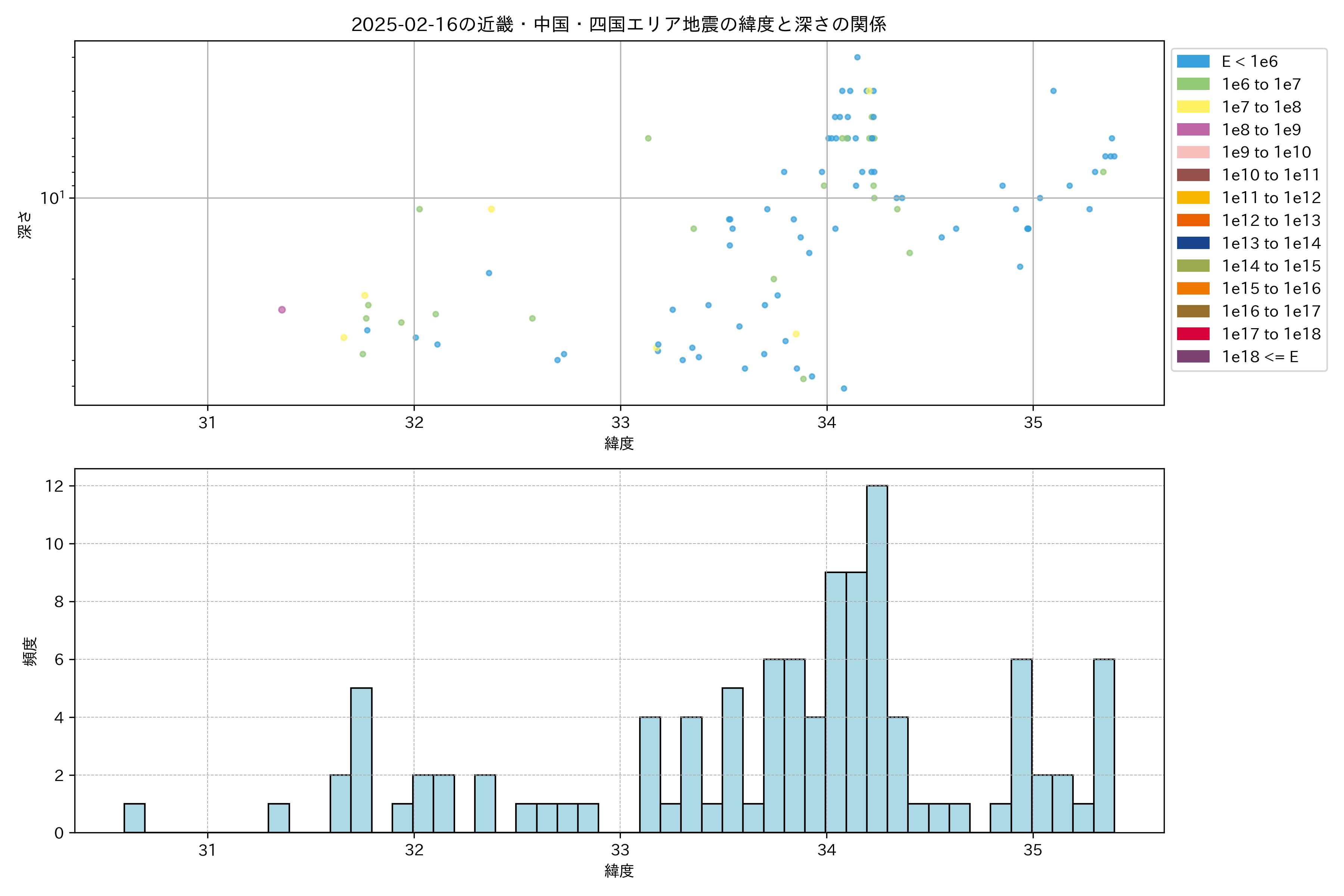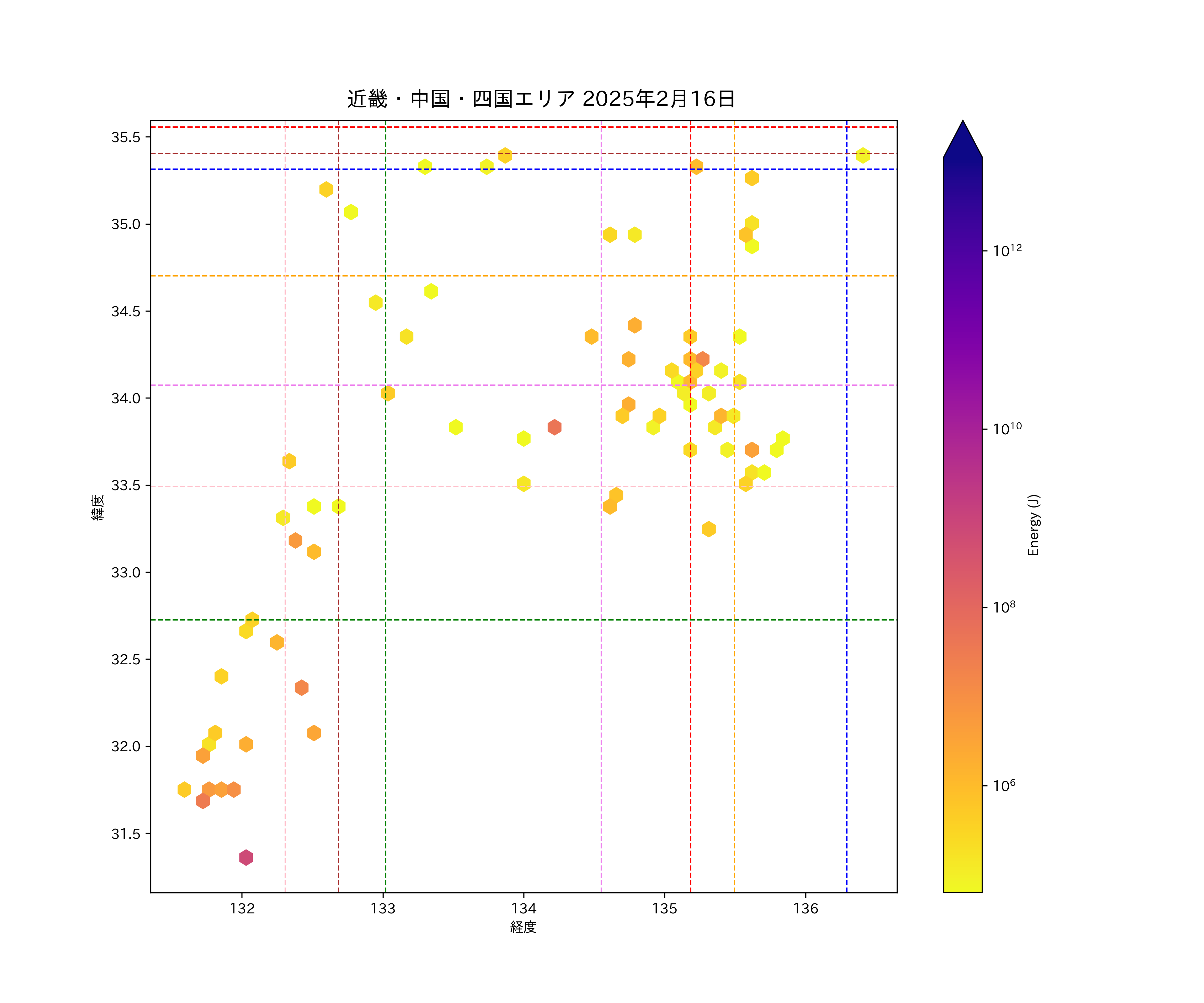 2025年02月16日近畿・中国・四国エリア震源マップ