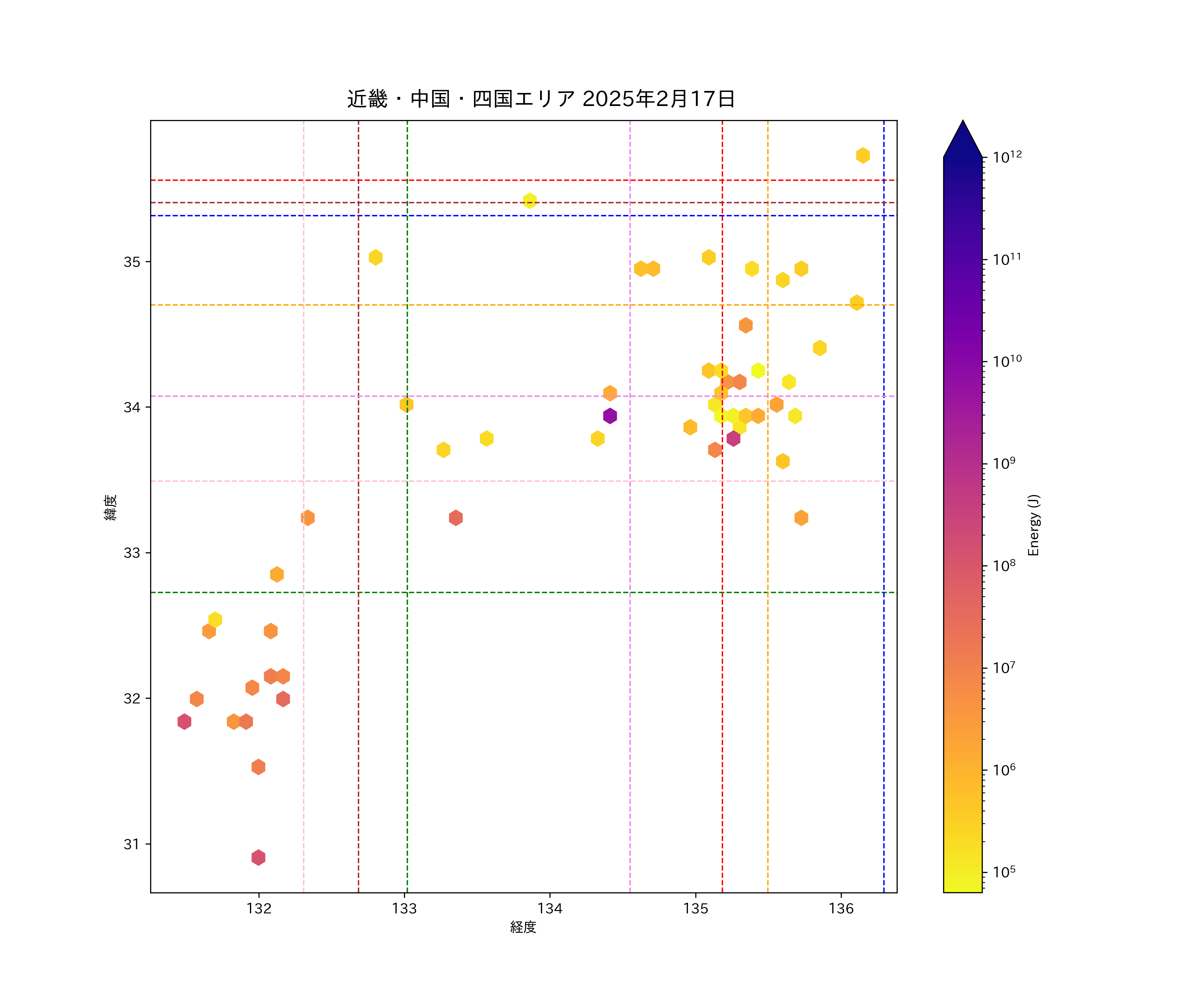 2025年02月17日近畿・中国・四国エリア震源マップ