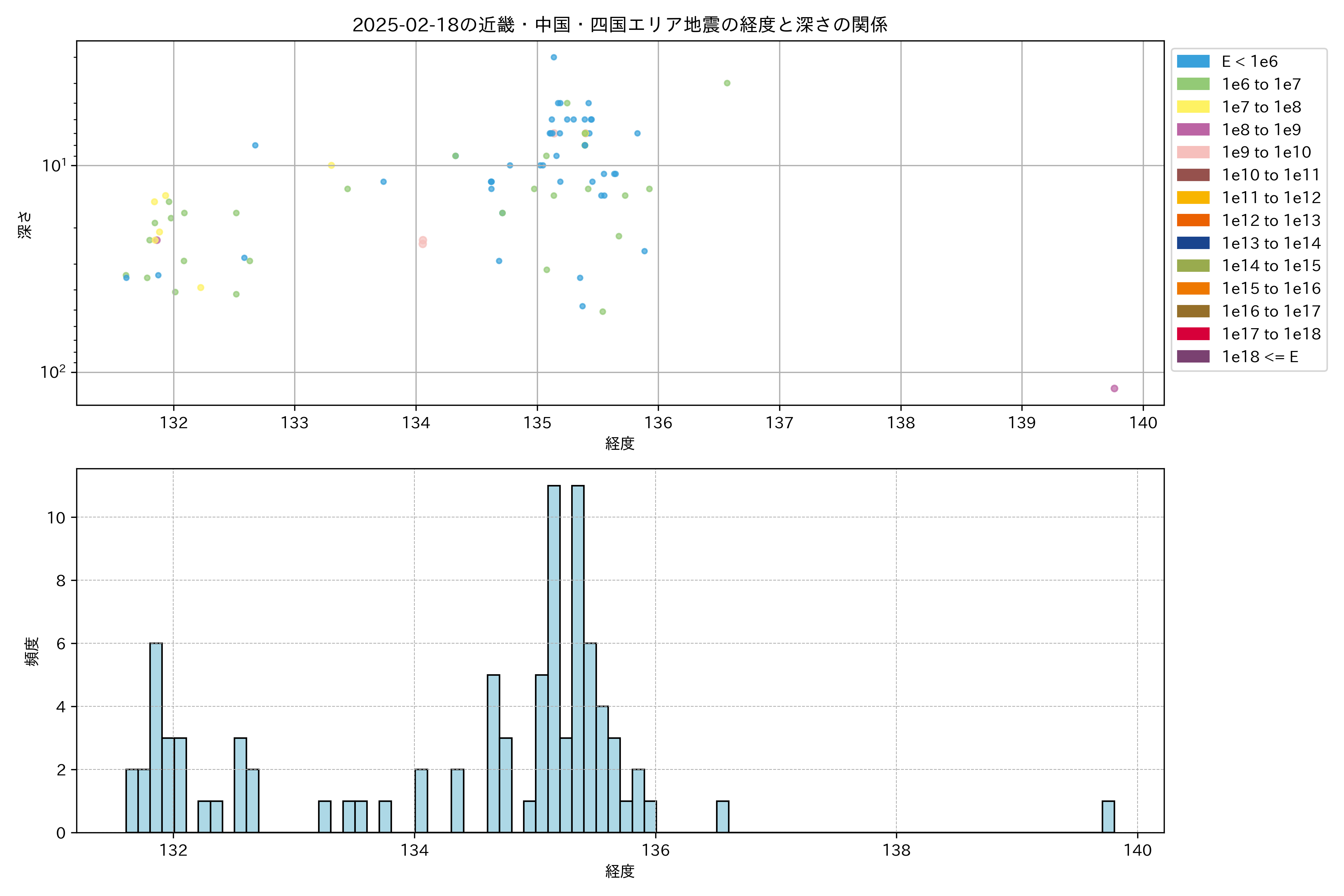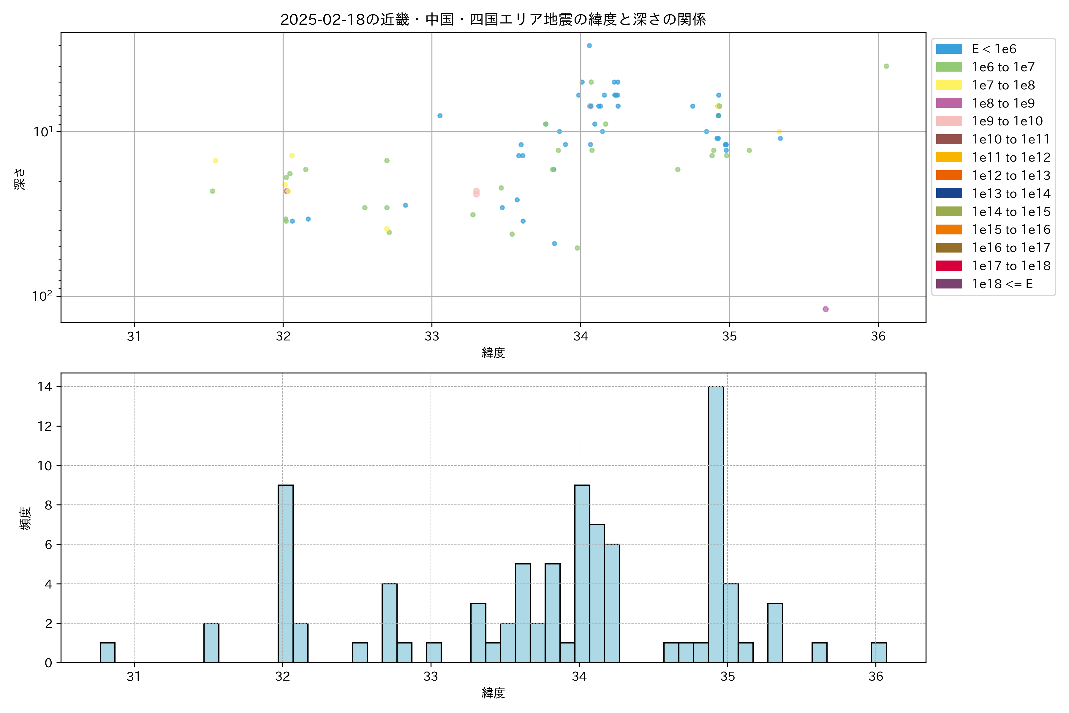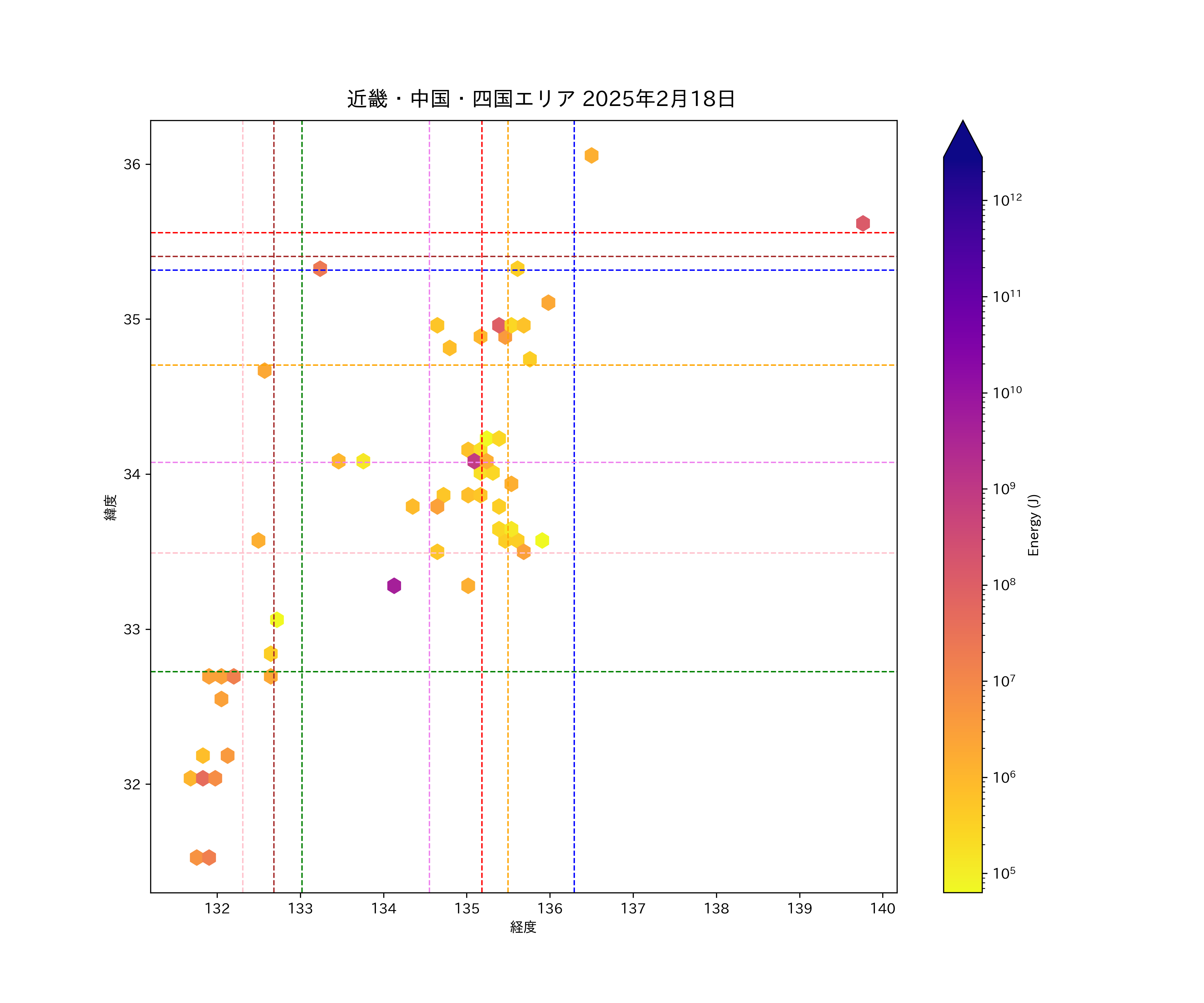 2025年02月18日近畿・中国・四国エリア震源マップ