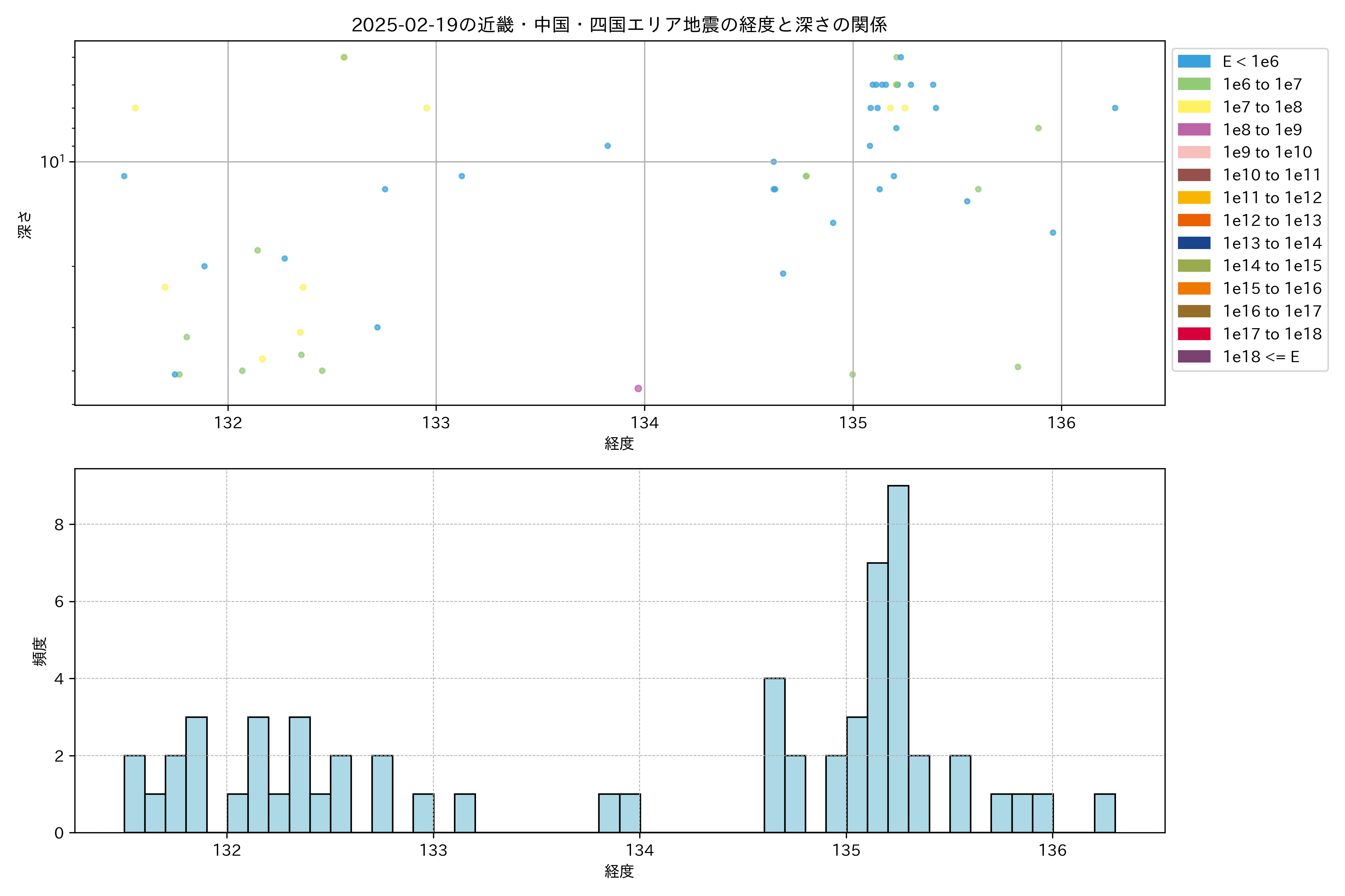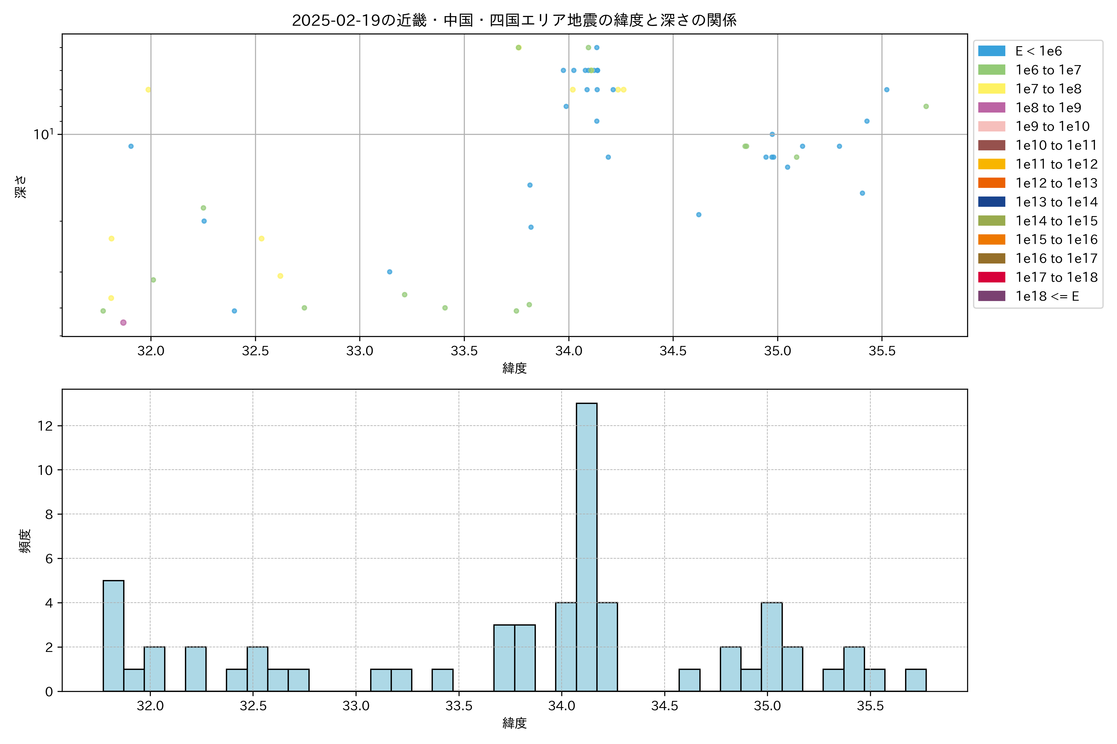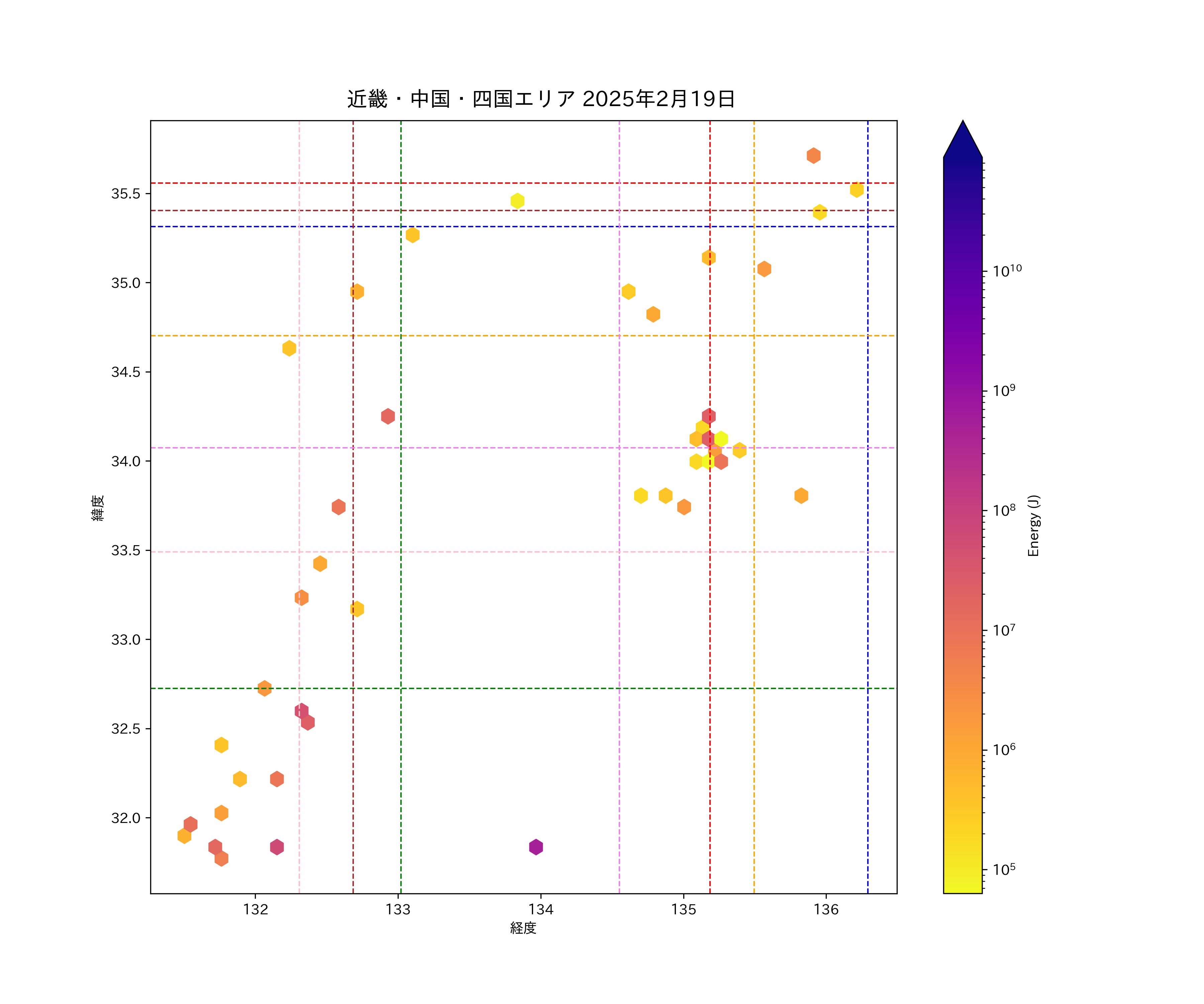 2025年02月19日近畿・中国・四国エリア震源マップ