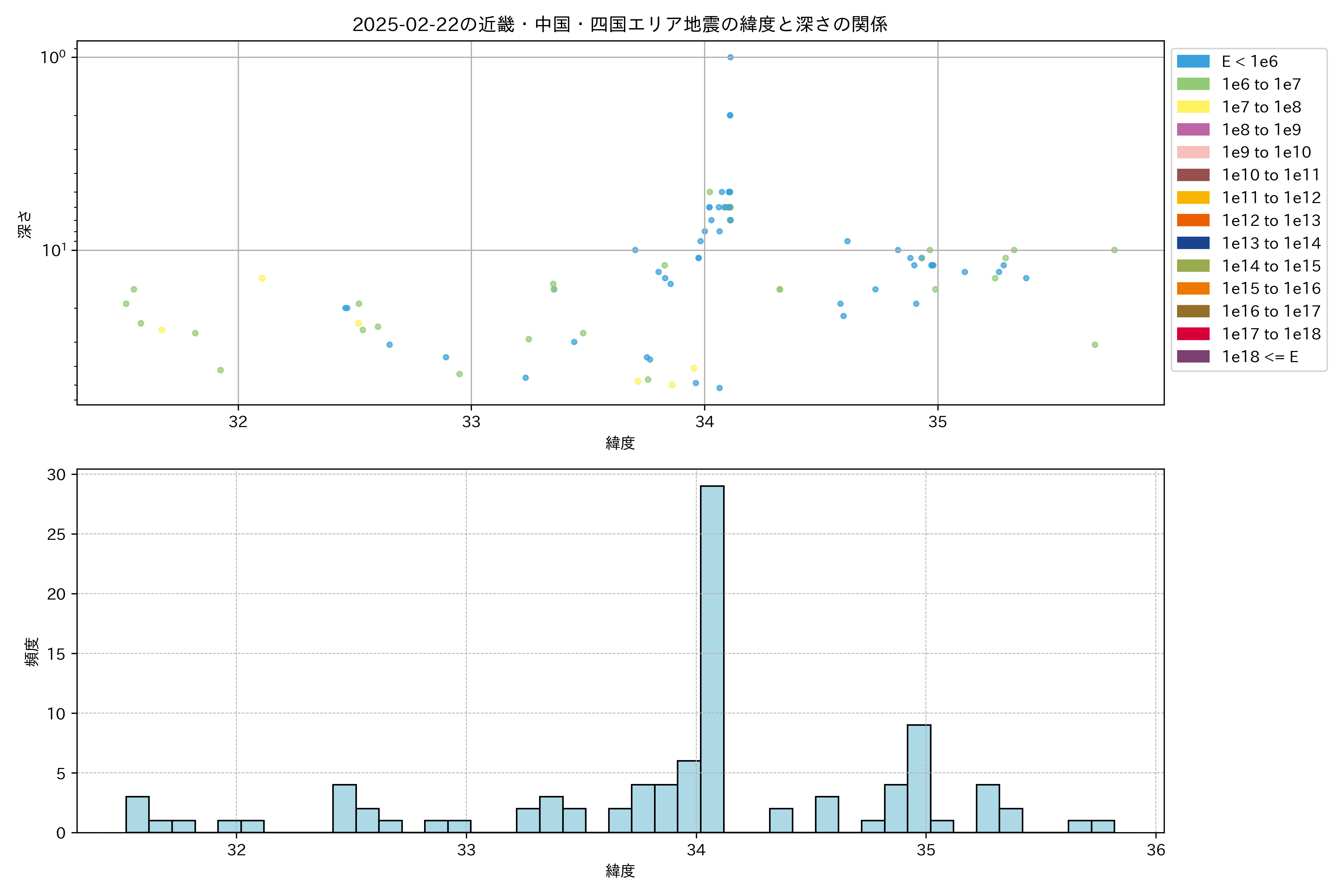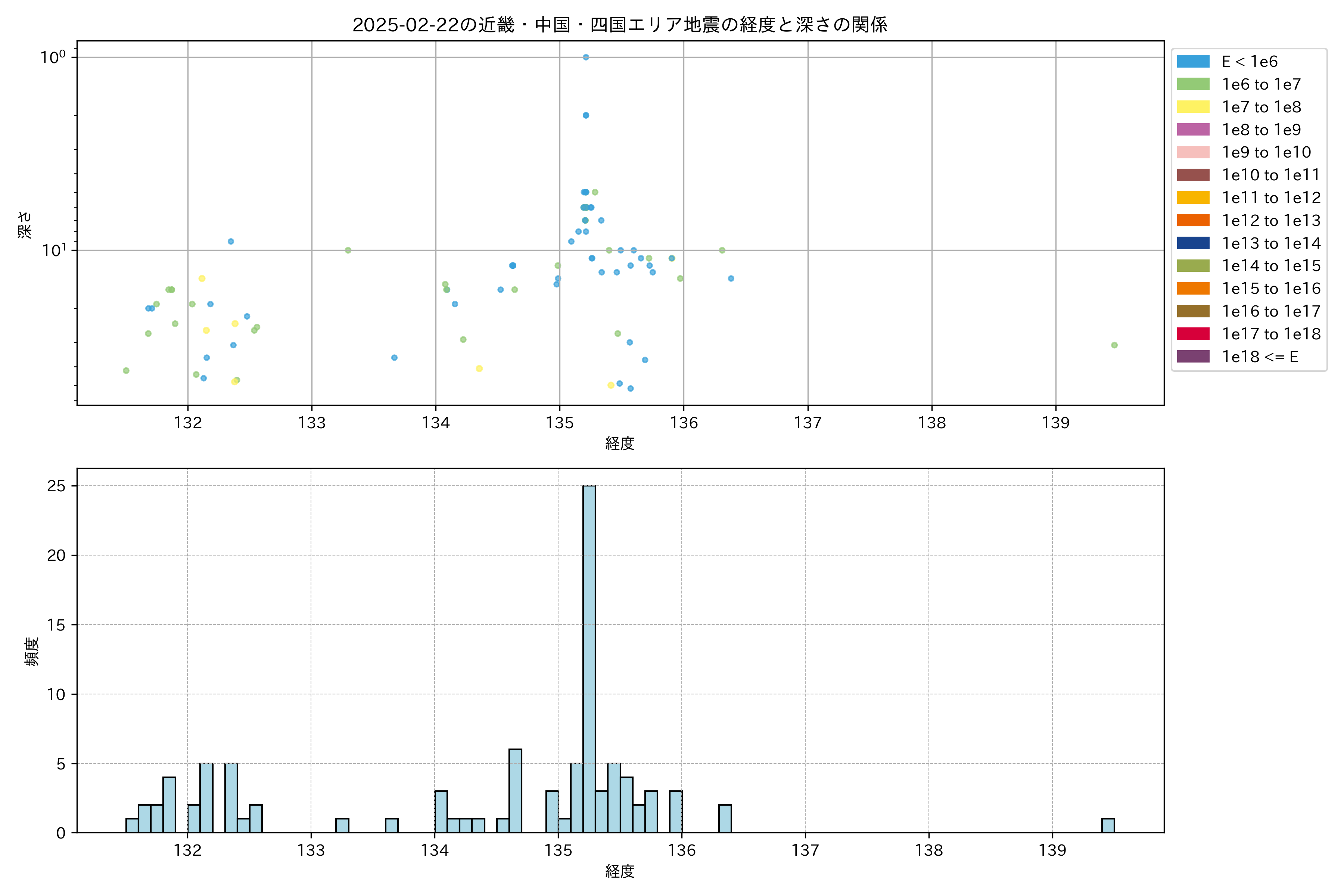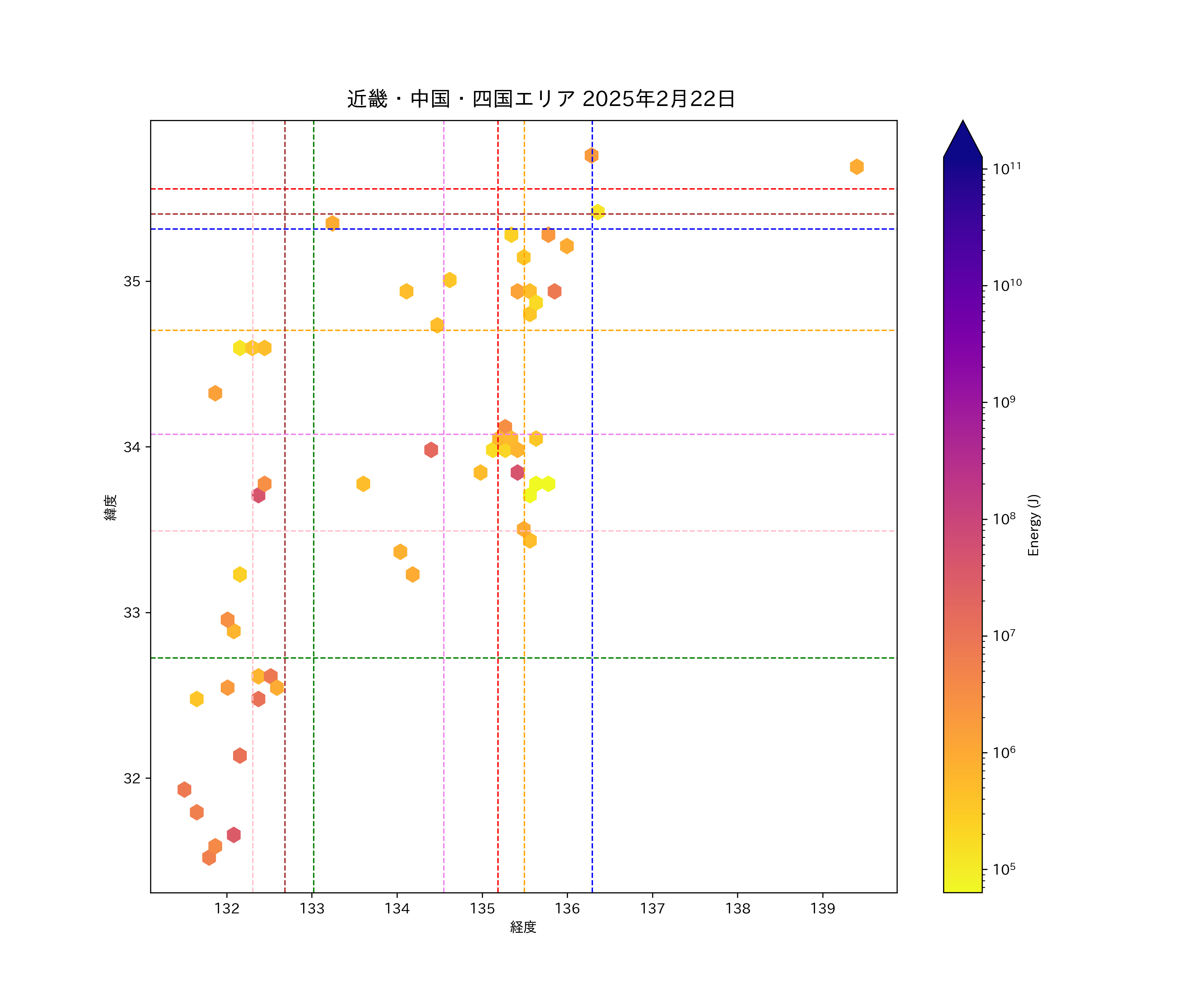 2025年02月22日近畿・中国・四国エリア震源マップ