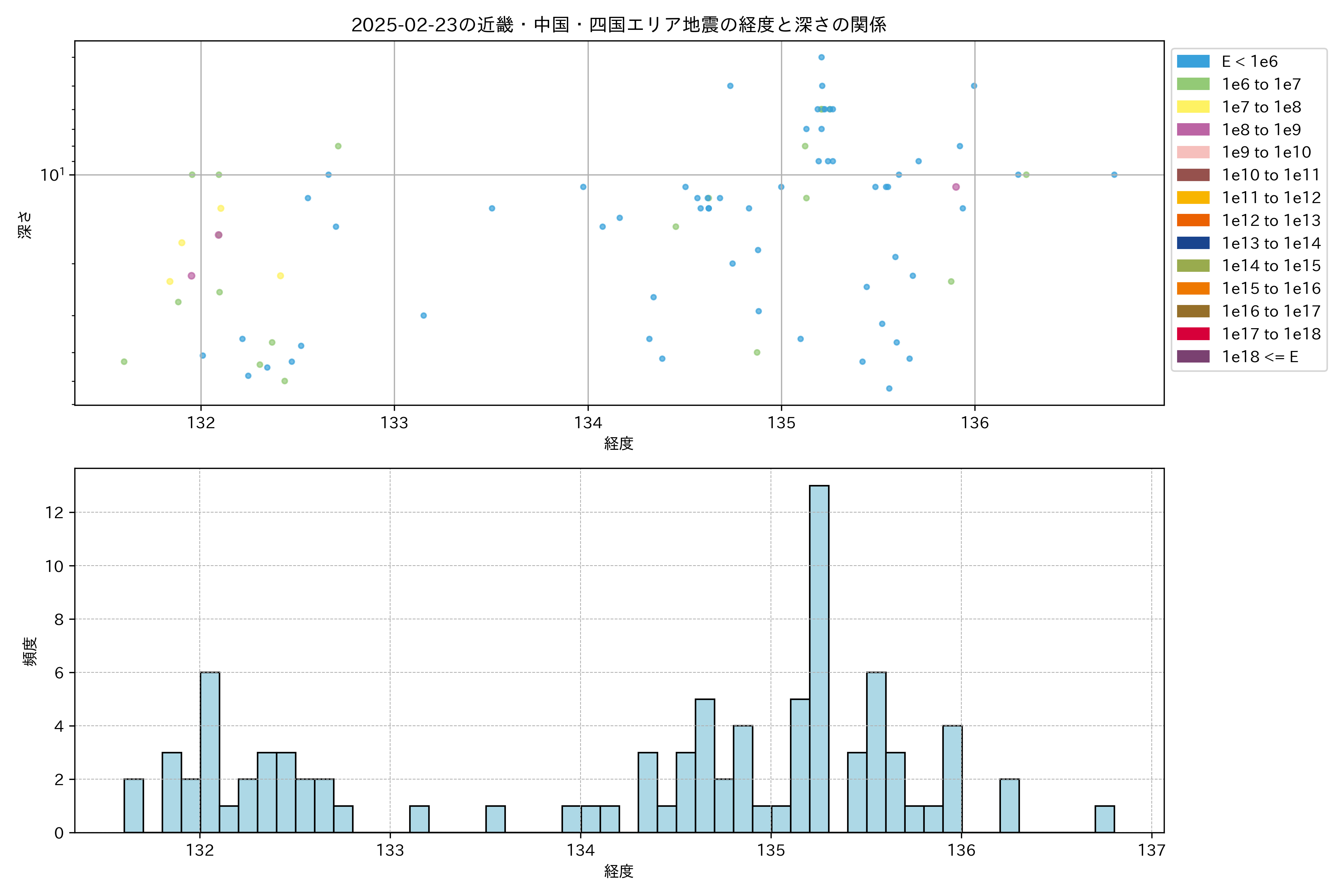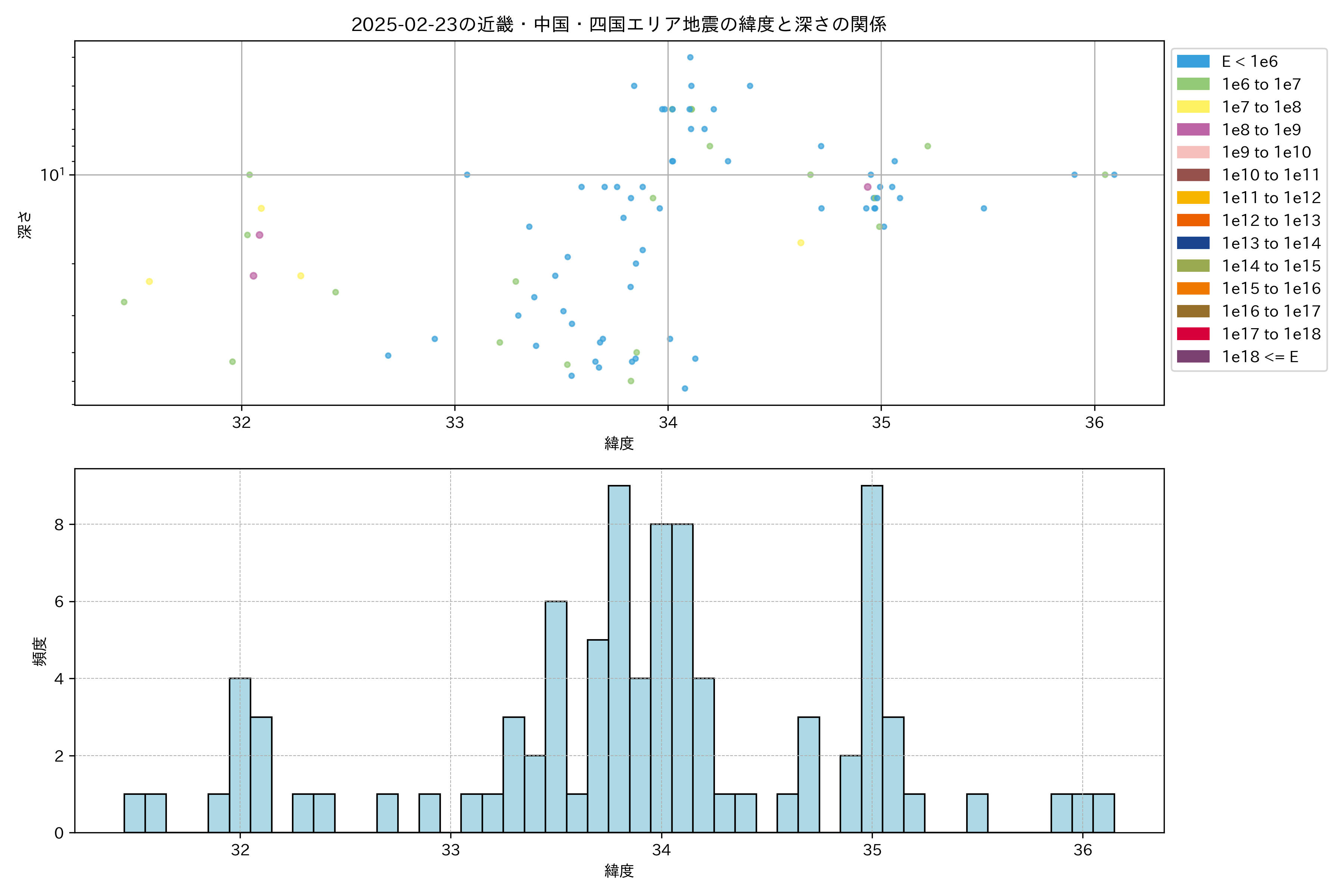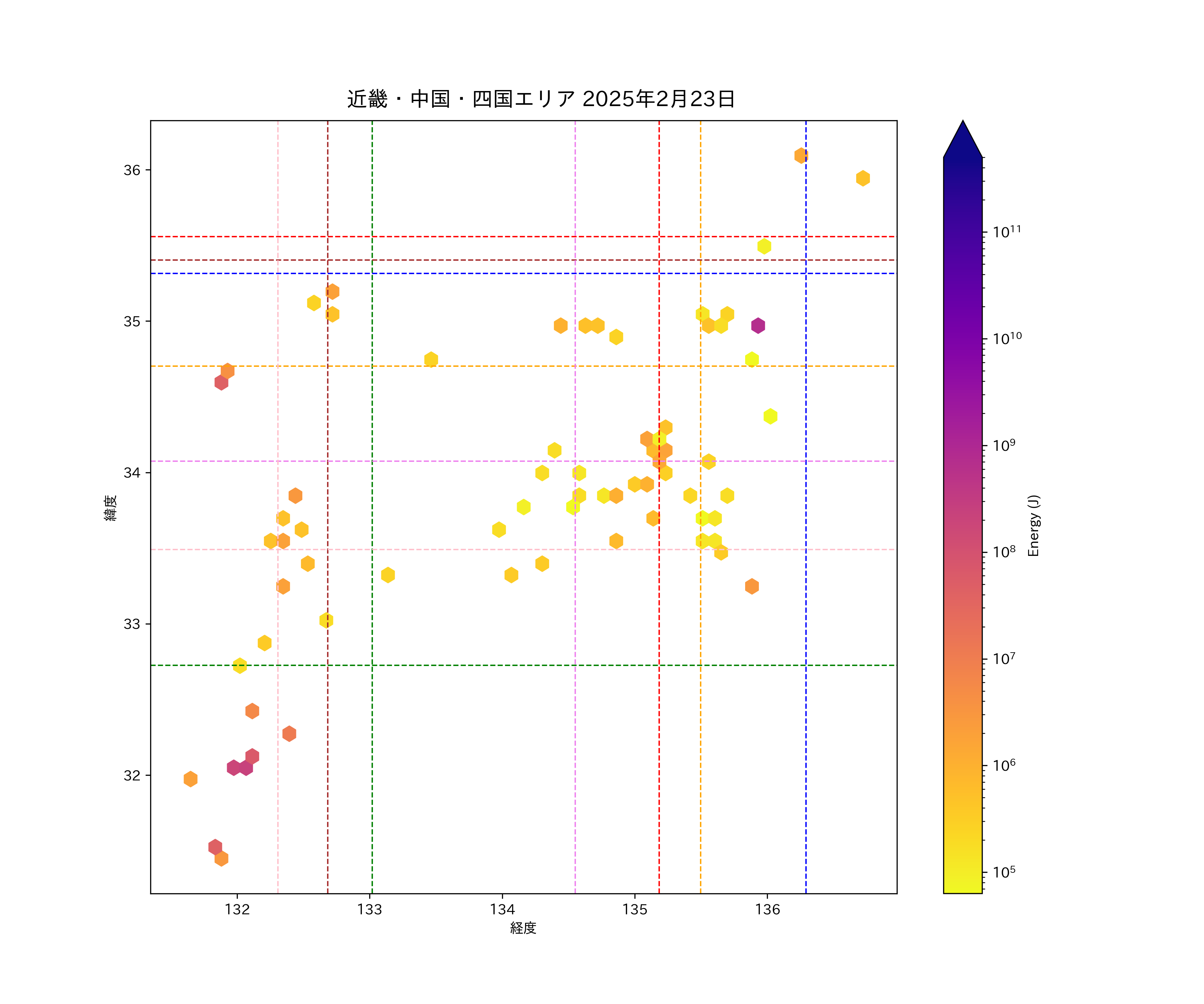 2025年02月23日近畿・中国・四国エリア震源マップ