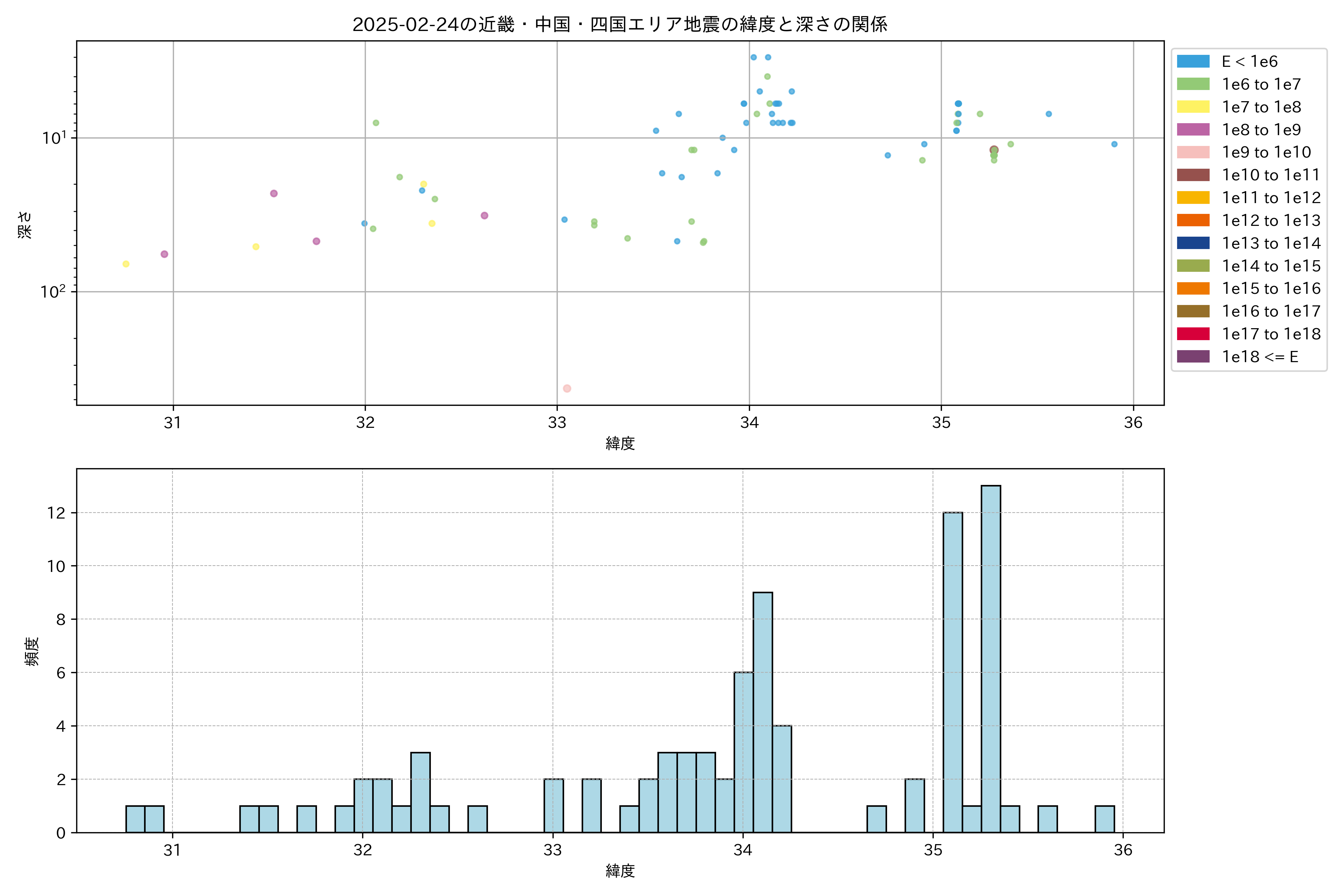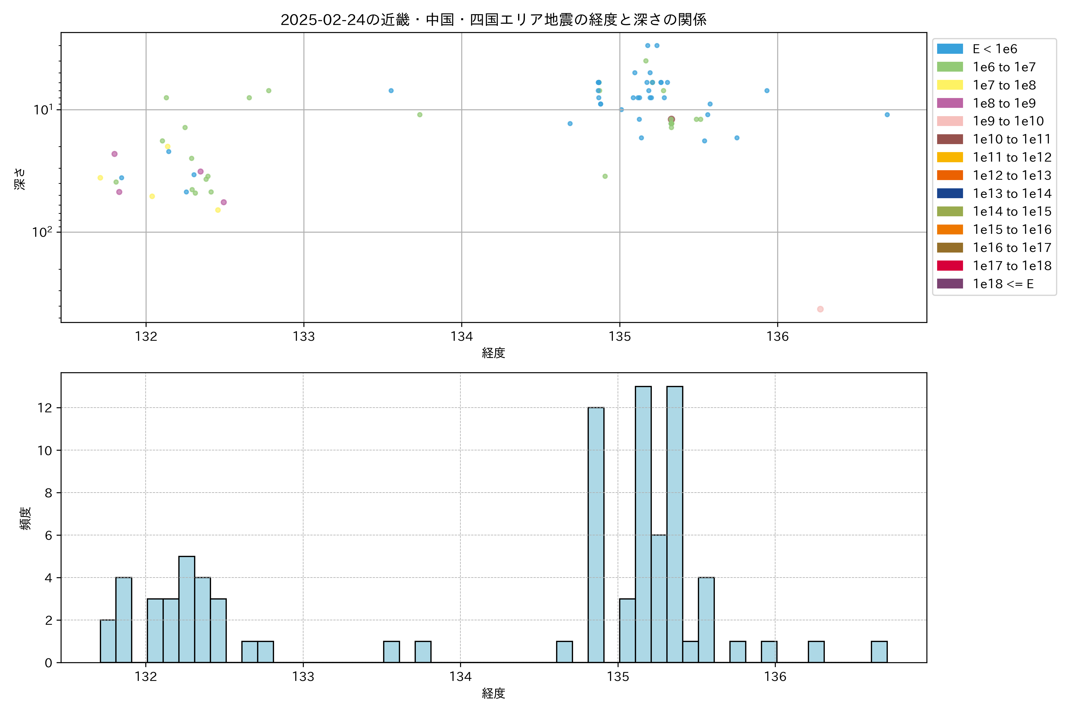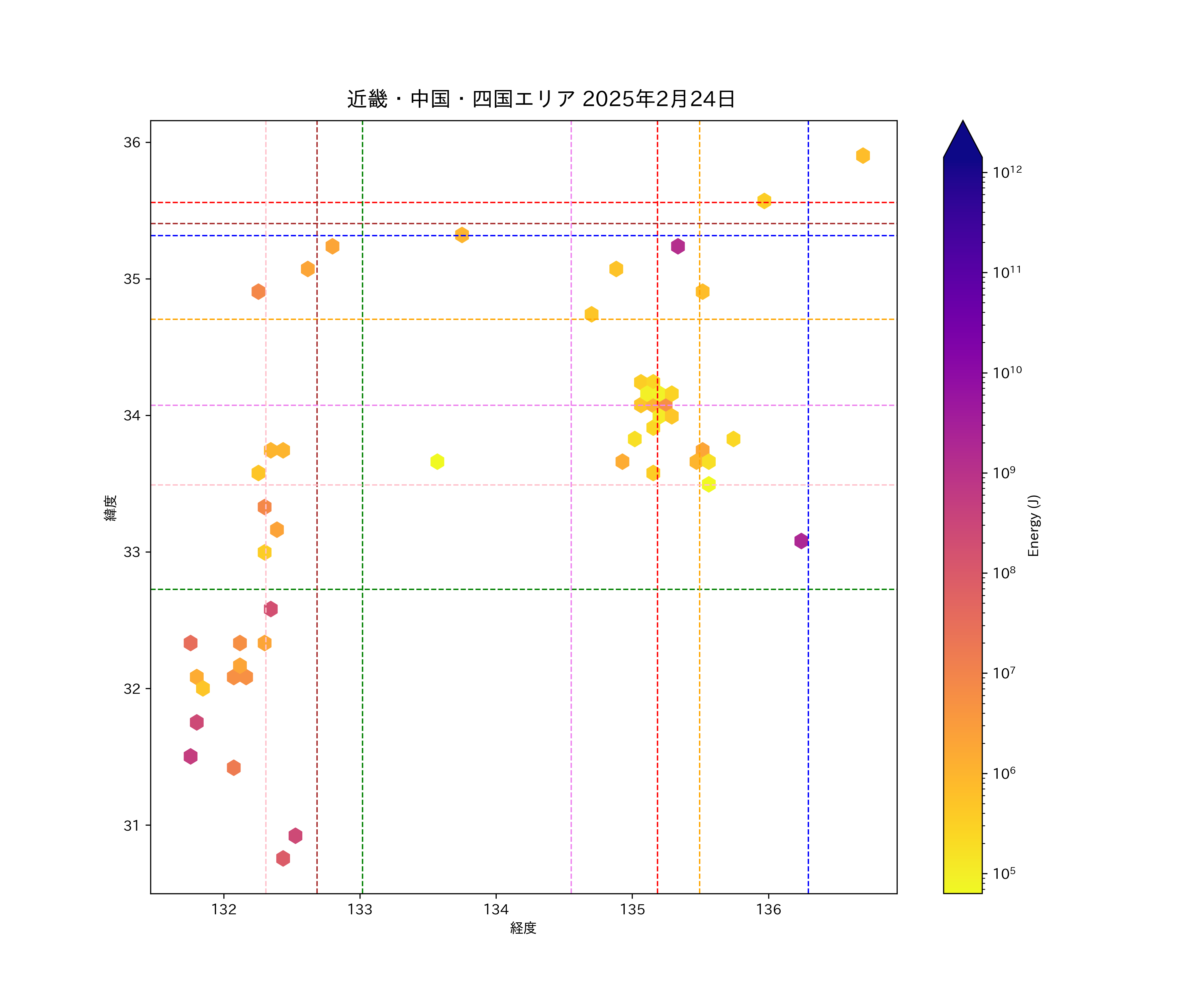 2025年02月24日近畿・中国・四国エリア震源マップ