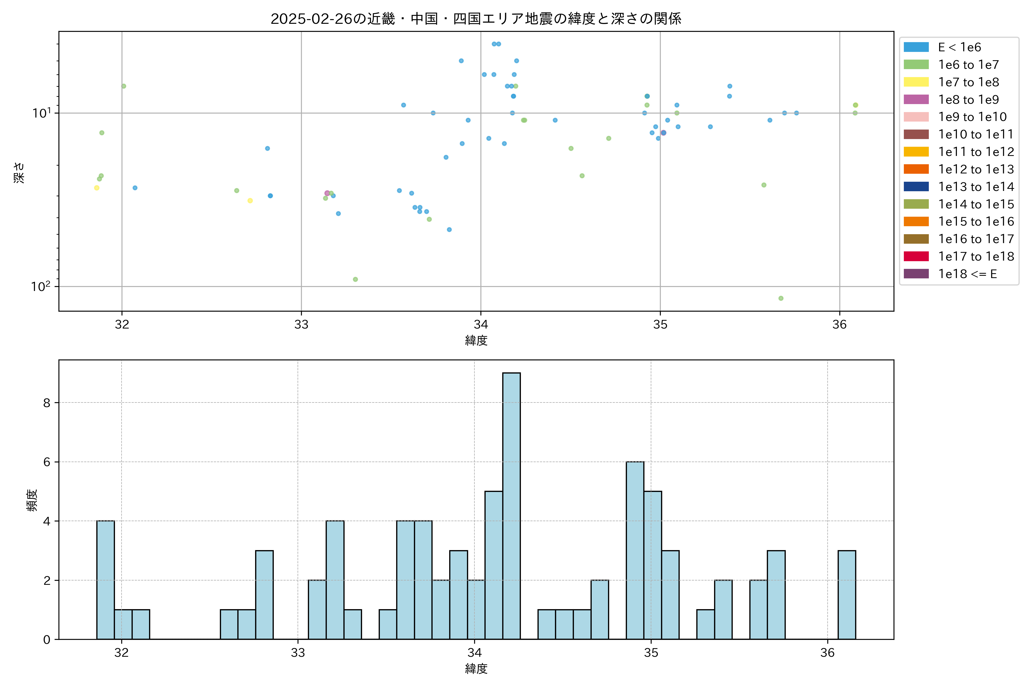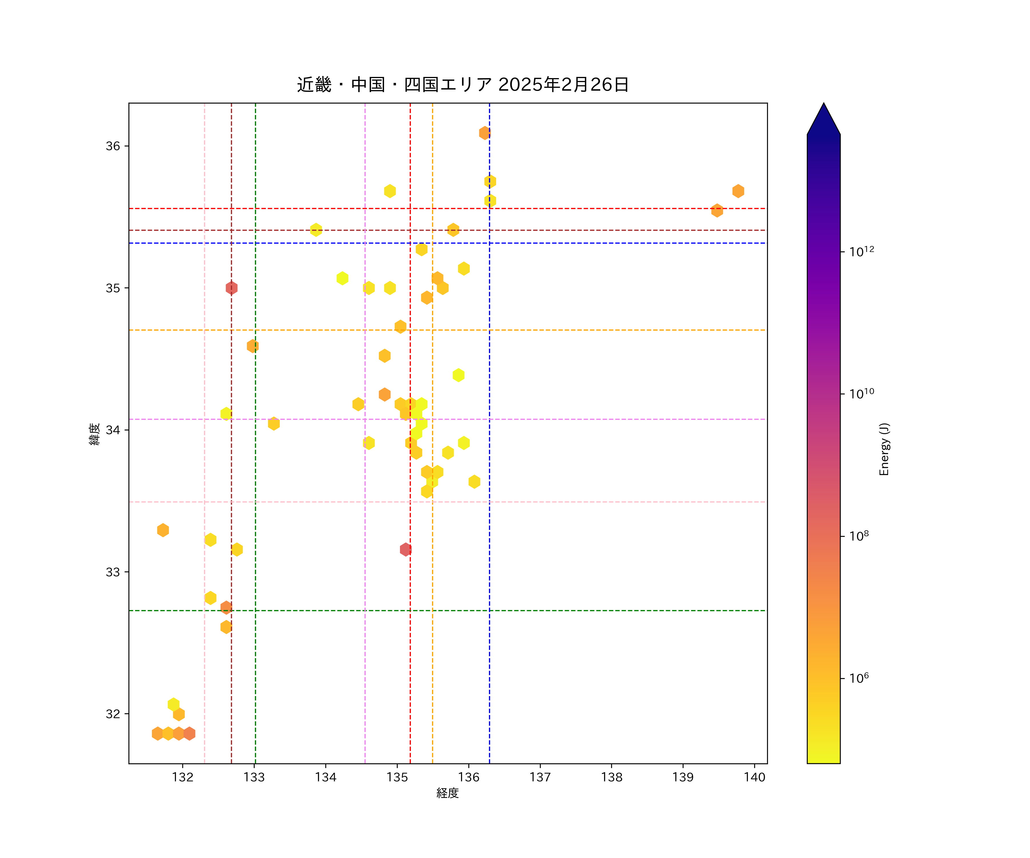 2025年02月26日近畿・中国・四国エリア震源マップ