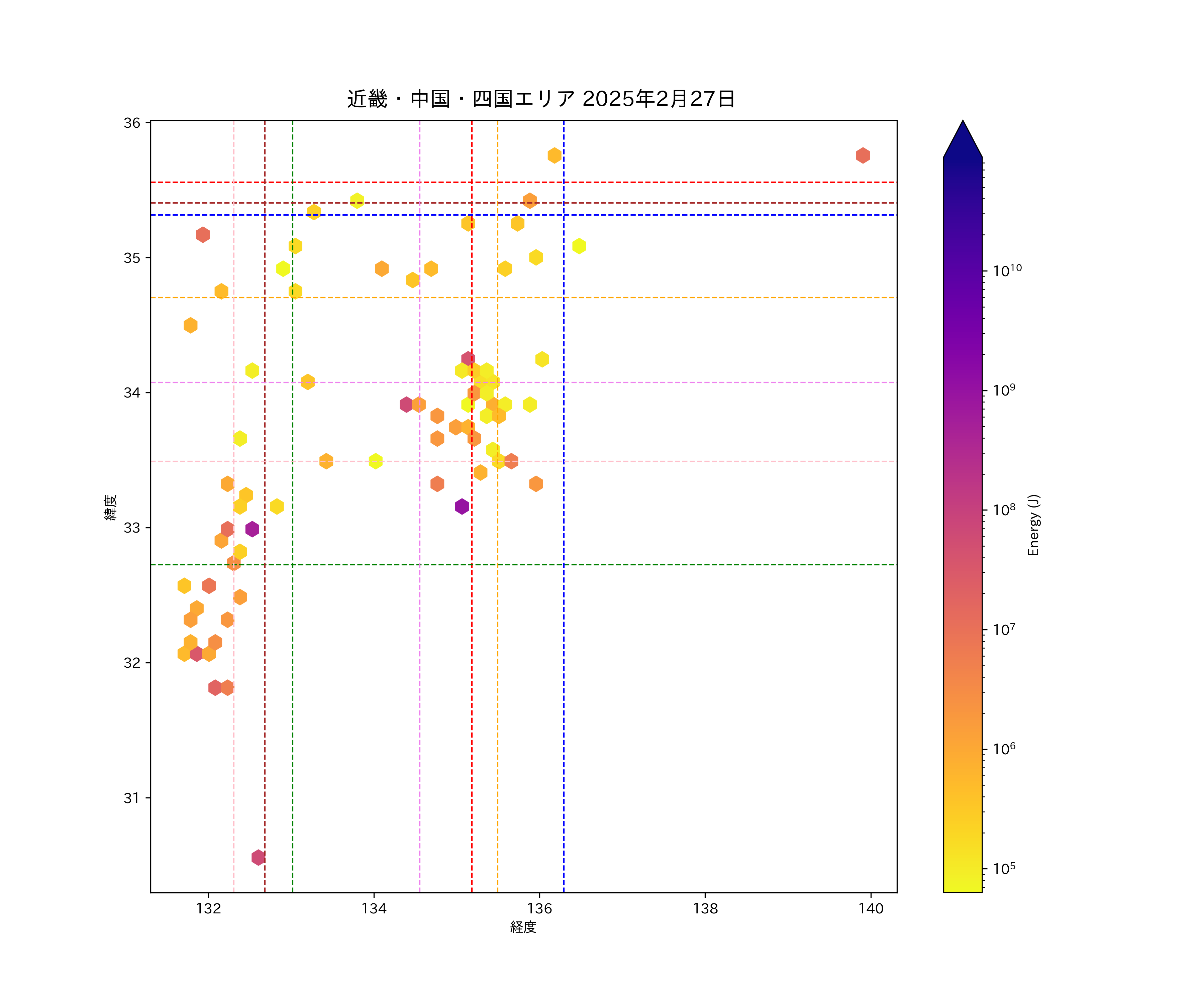 2025年02月27日近畿・中国・四国エリア震源マップ