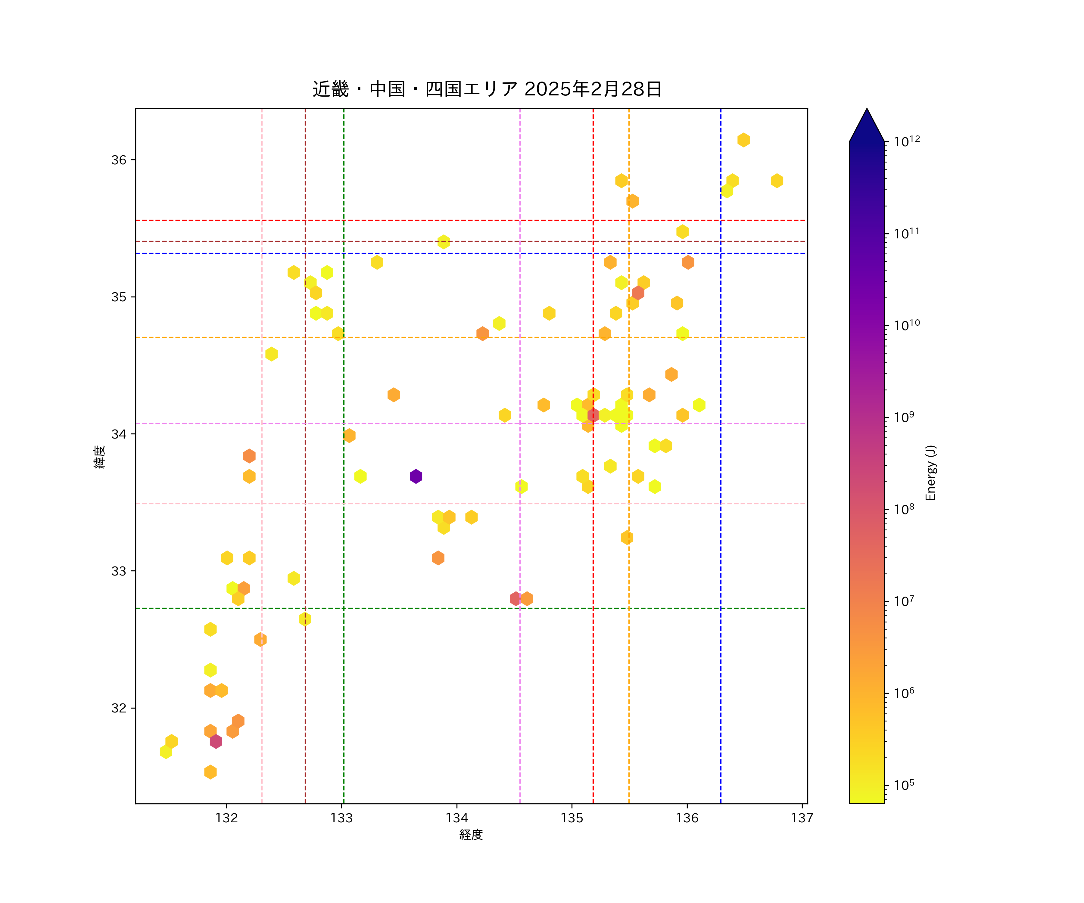 2025年02月28日近畿・中国・四国エリア震源マップ