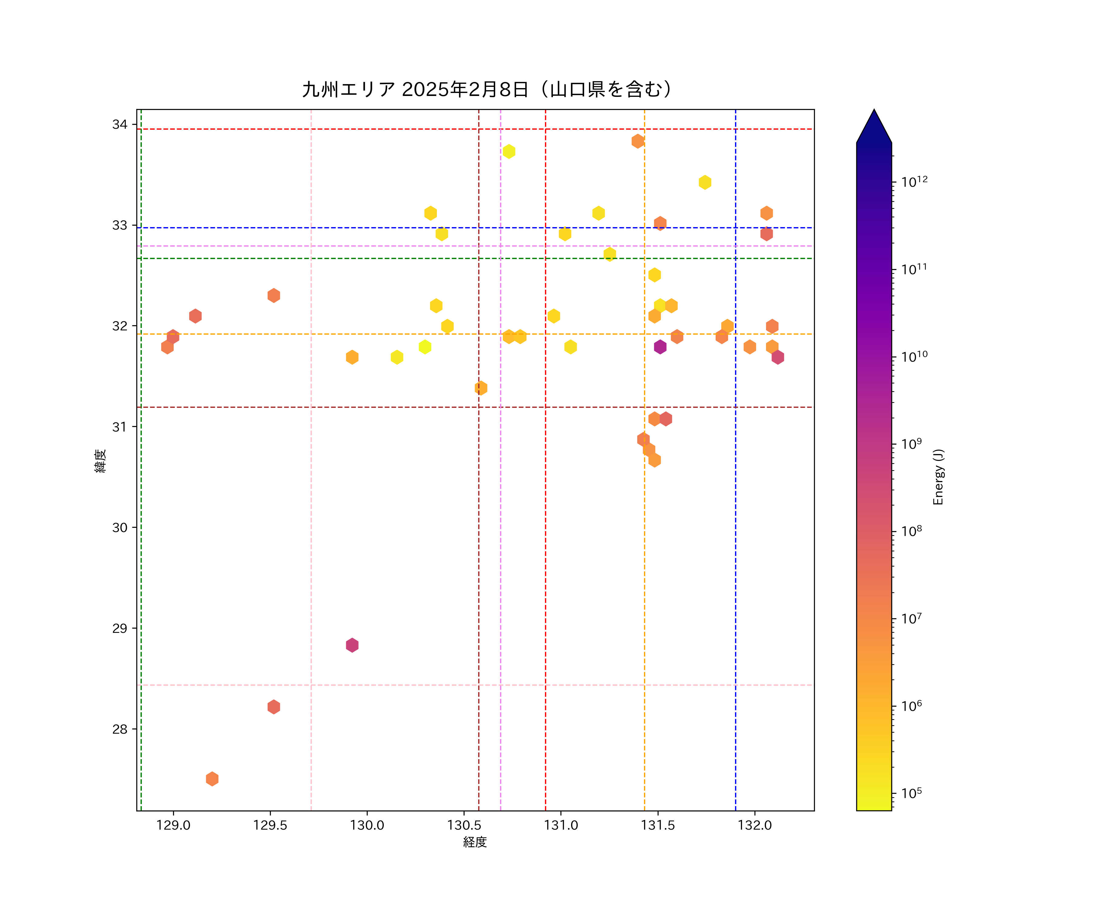 2025年02月08日九州エリア震源マップ