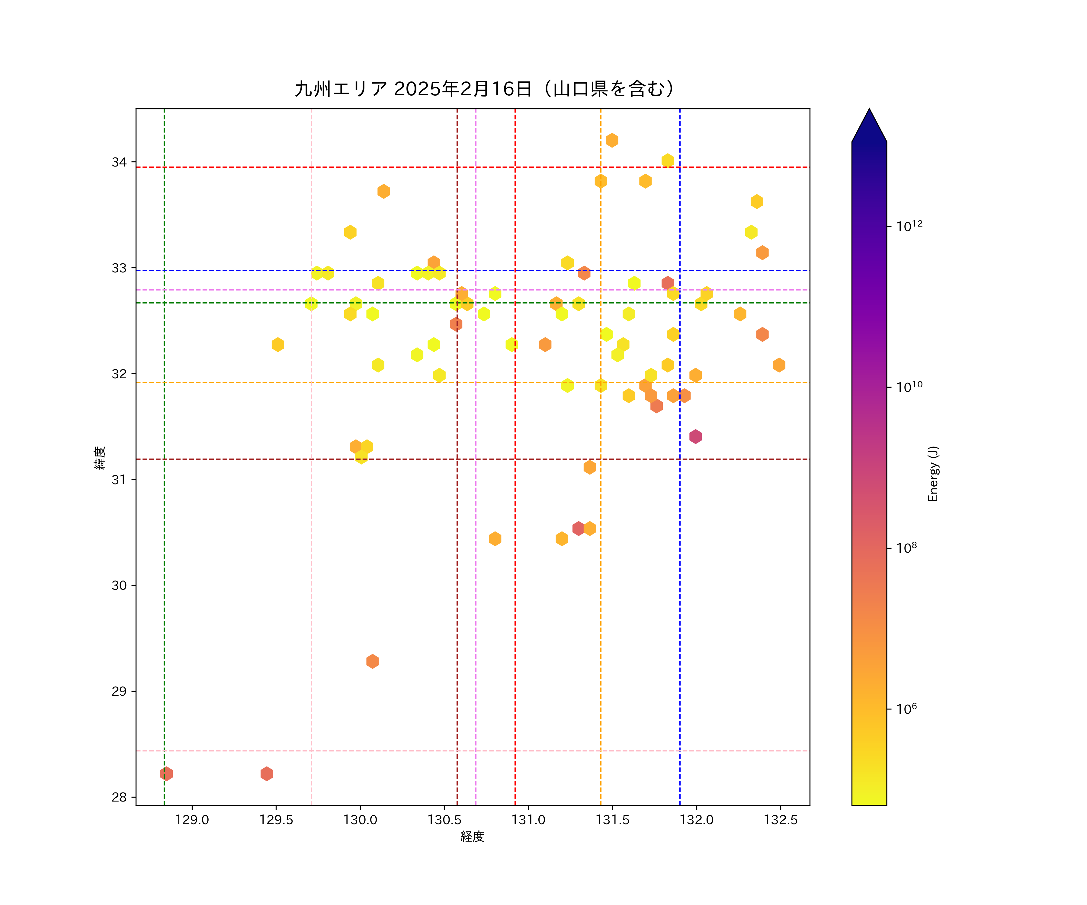 2025年02月16日九州エリア震源マップ