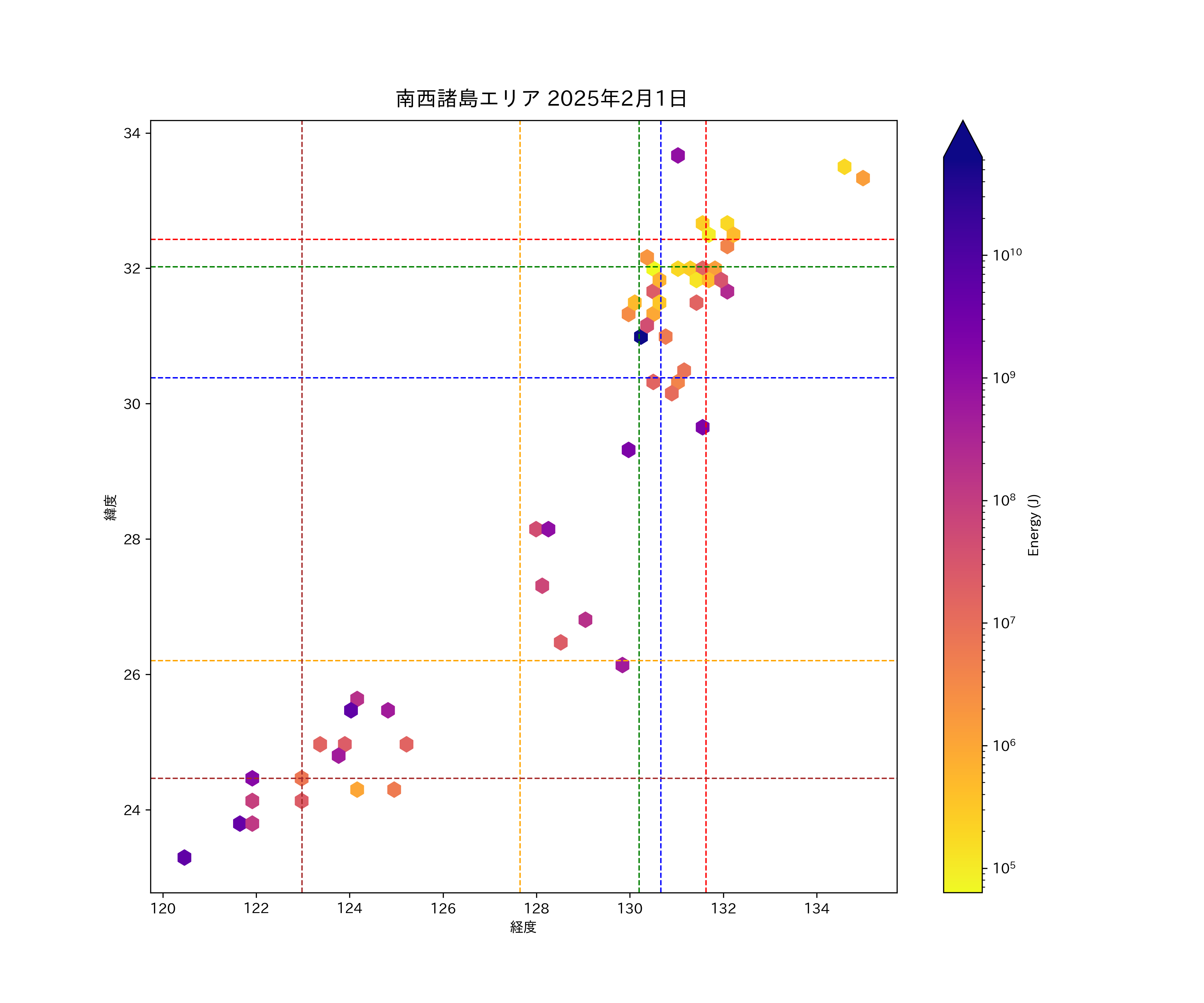 2025年02月01日南西諸島エリア震源マップ