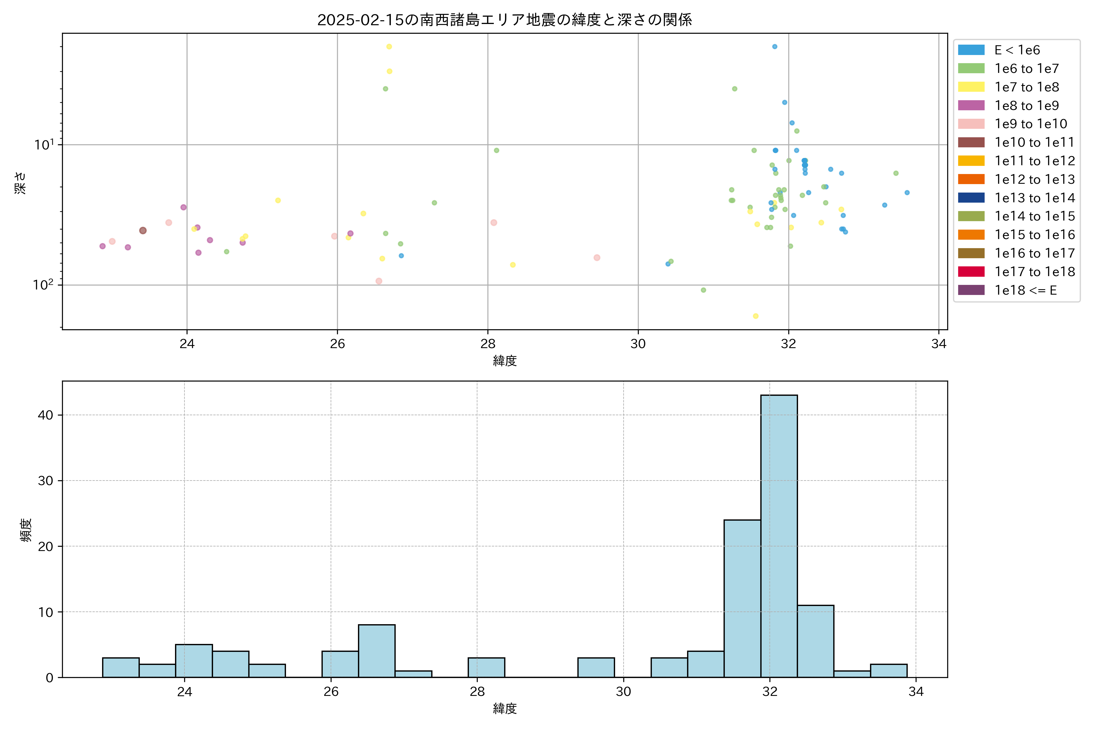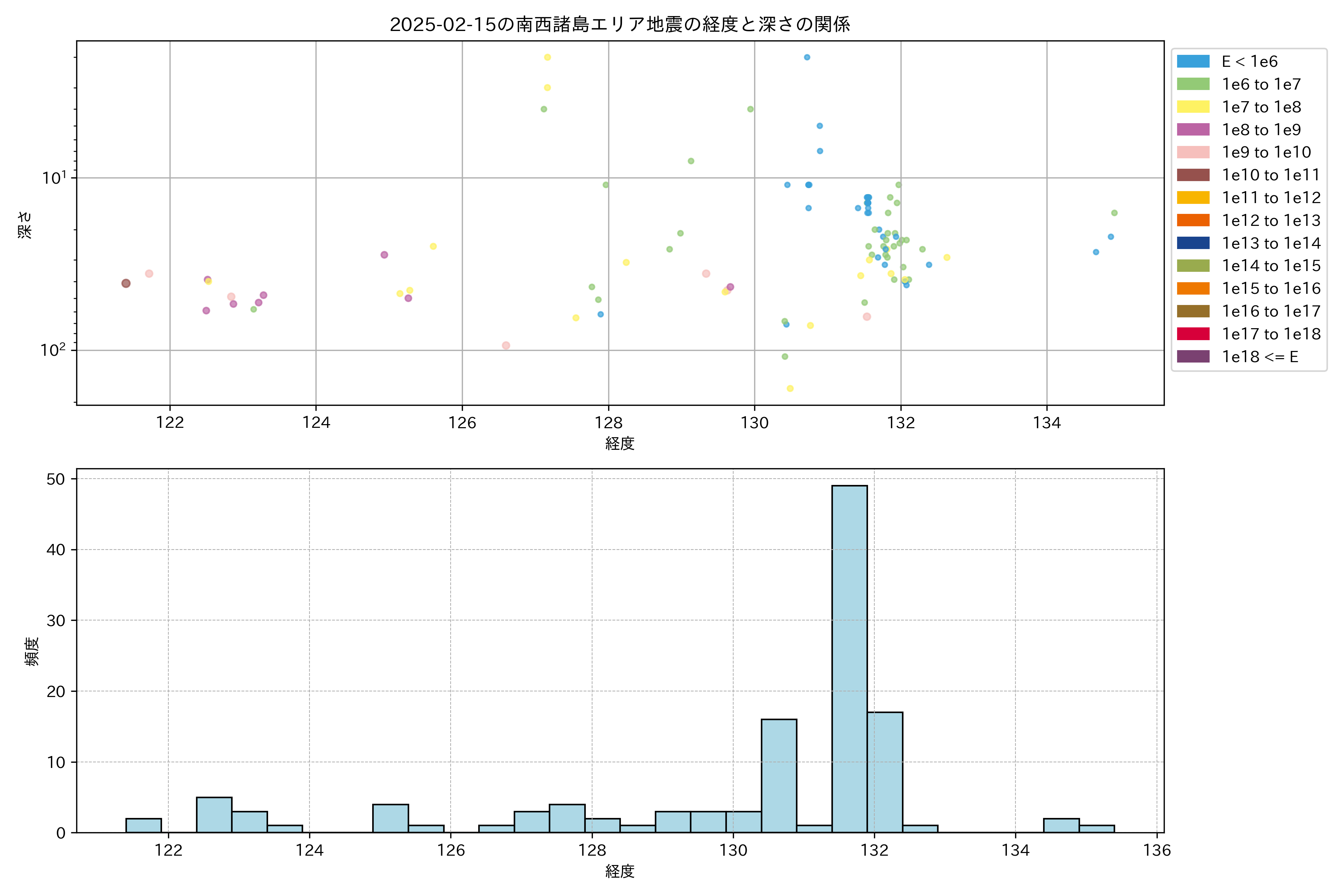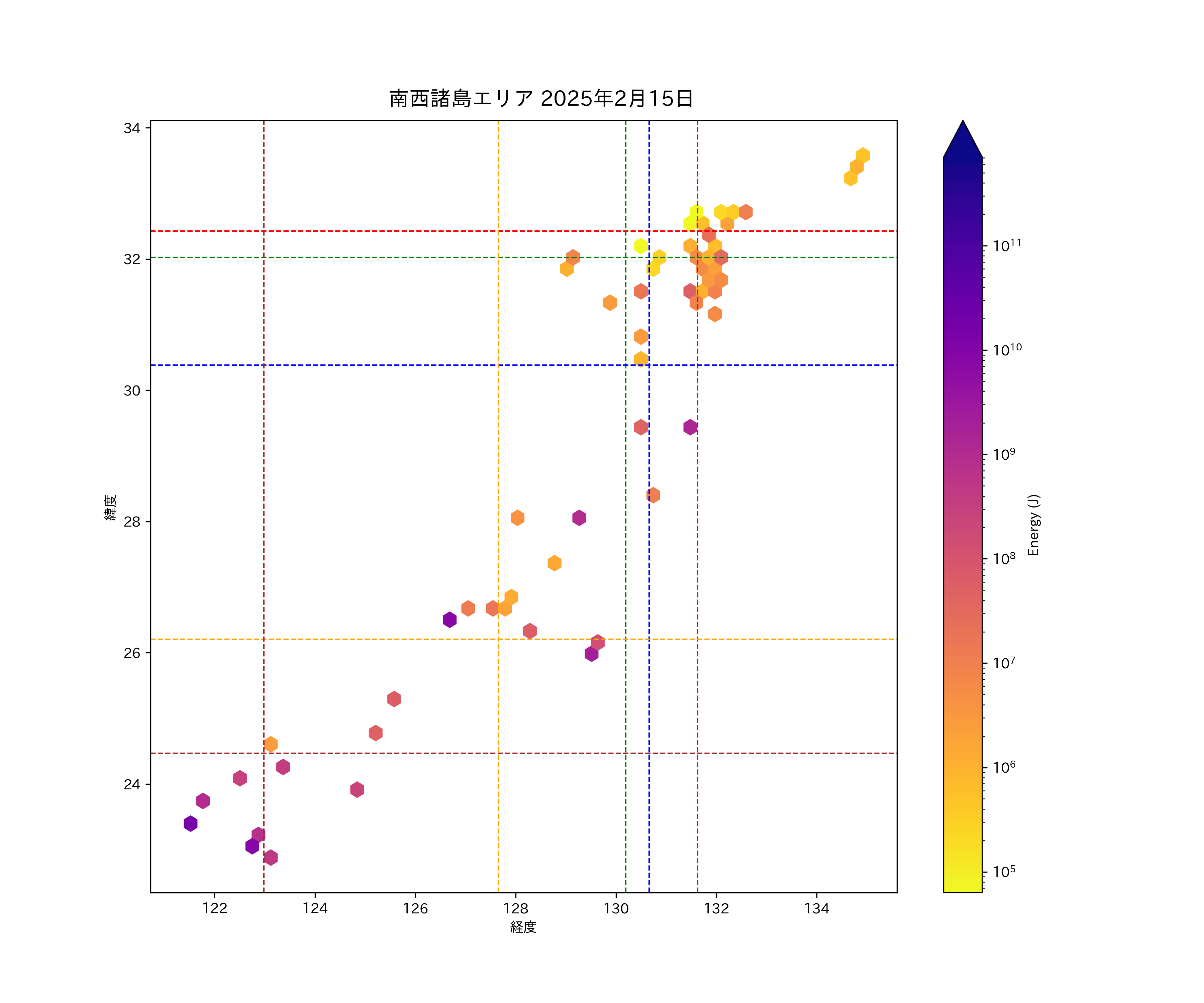 2025年02月15日南西諸島エリア震源マップ