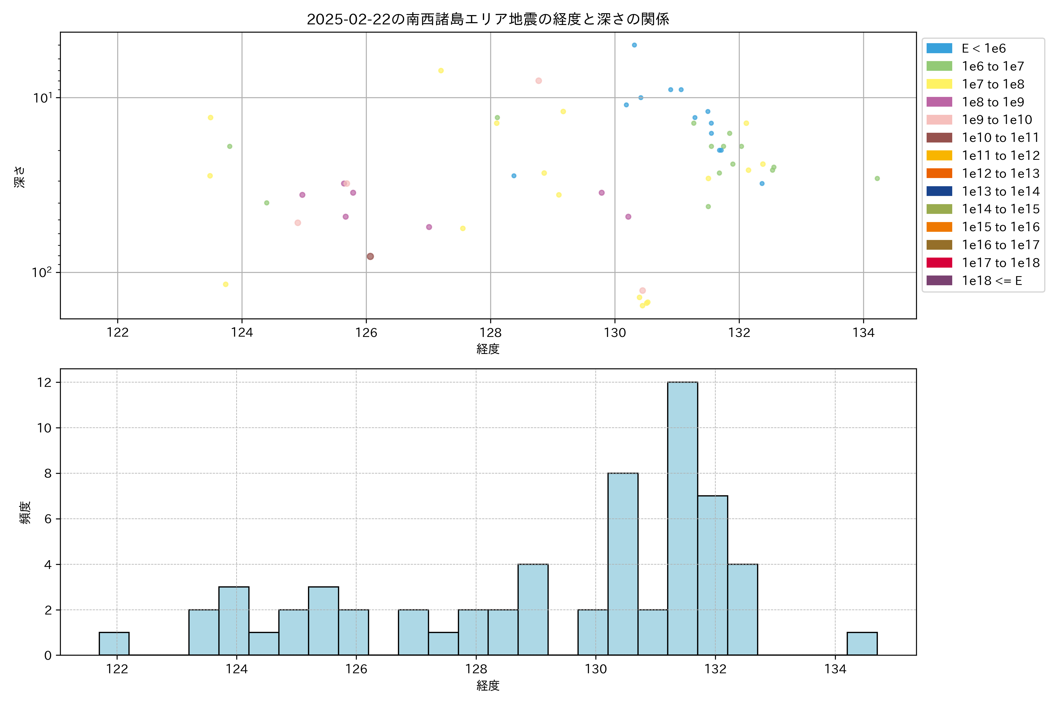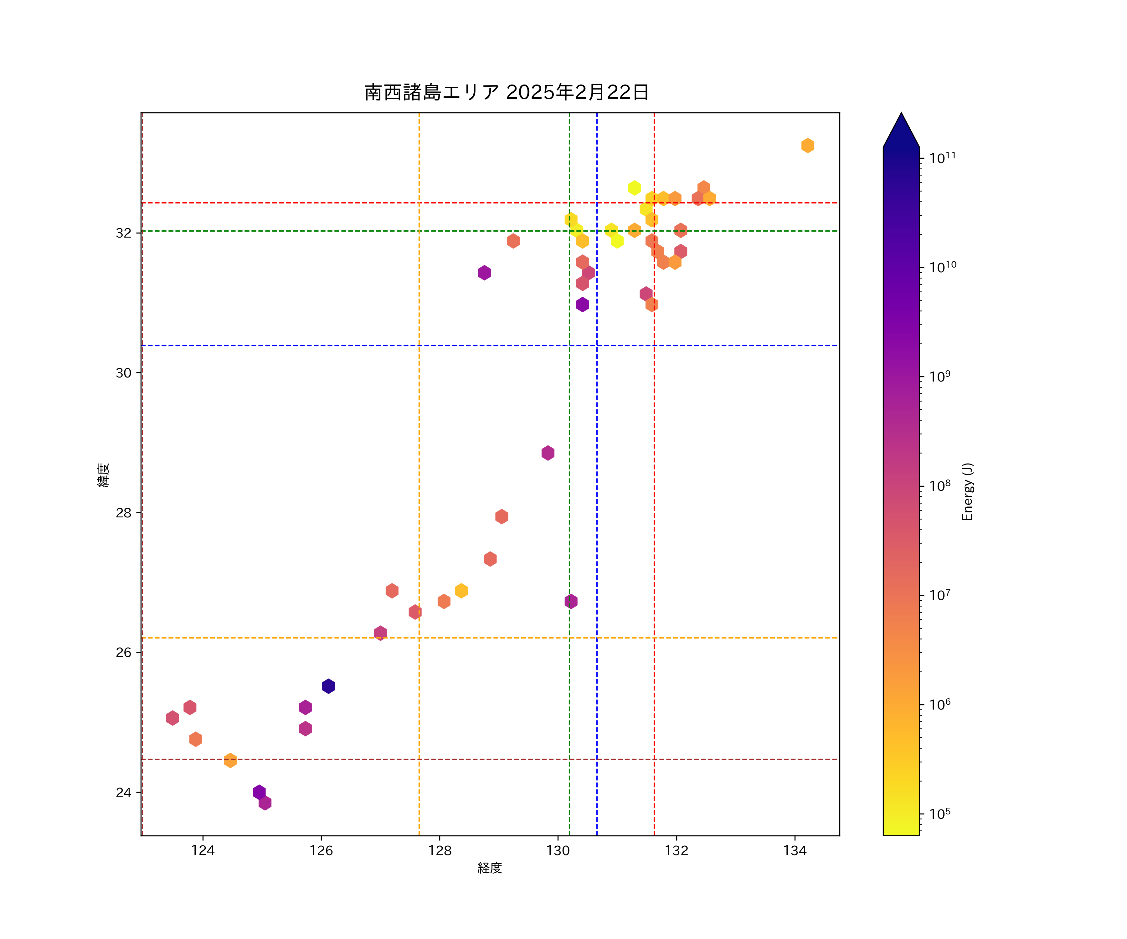 2025年02月22日南西諸島エリア震源マップ