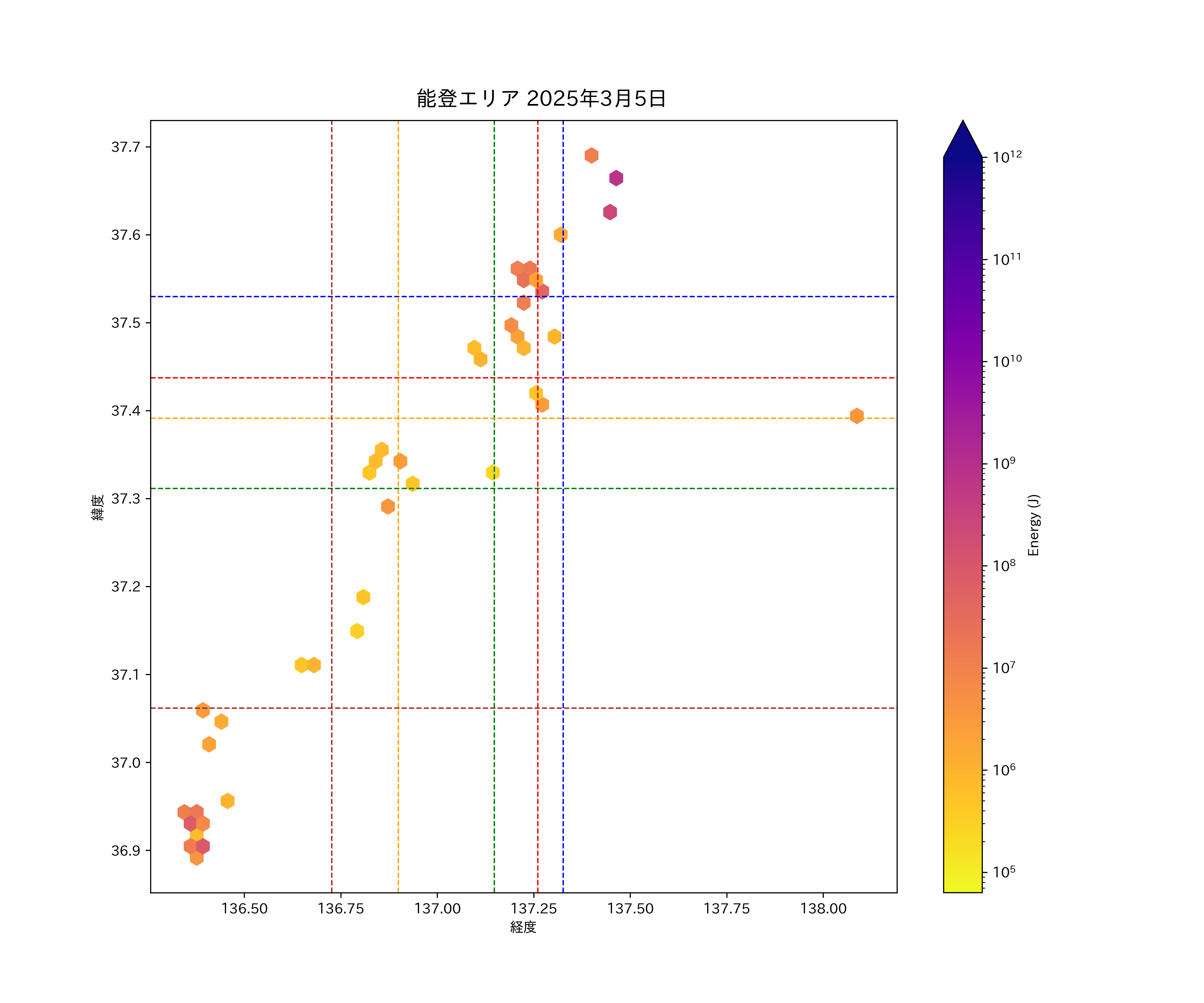 2025年03月05日能登エリア震源マップ
