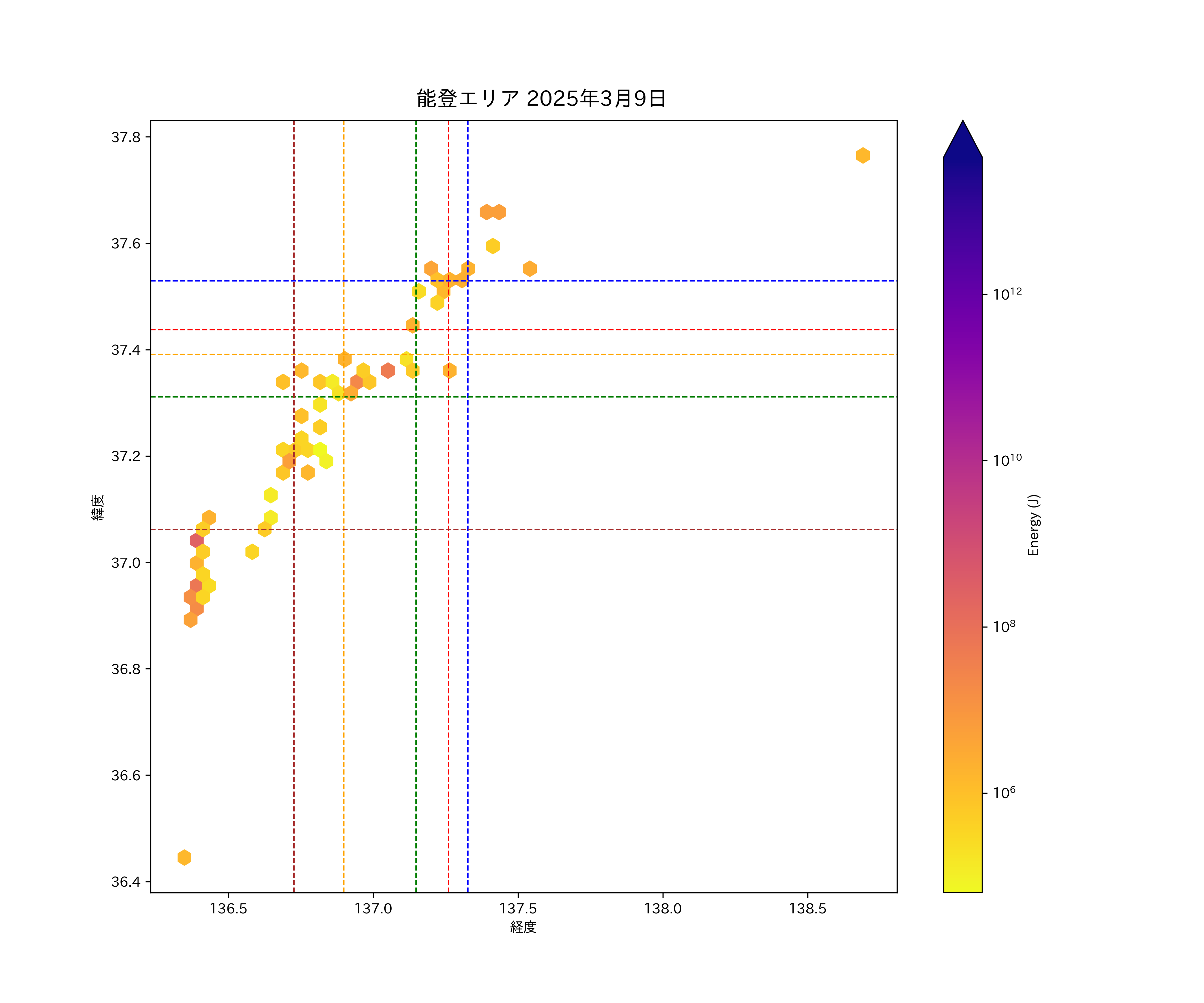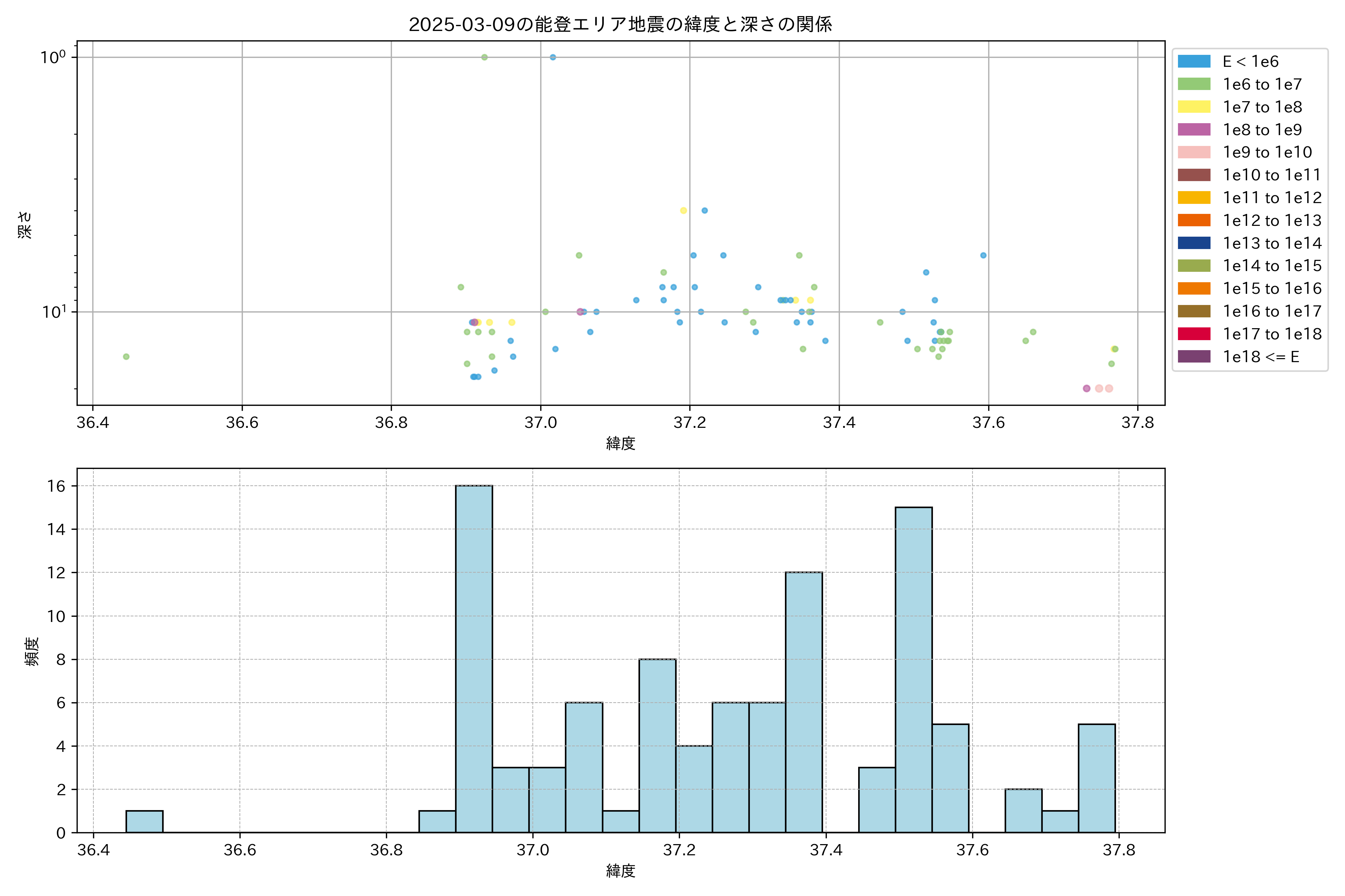 2025年03月09日能登エリア震源マップ