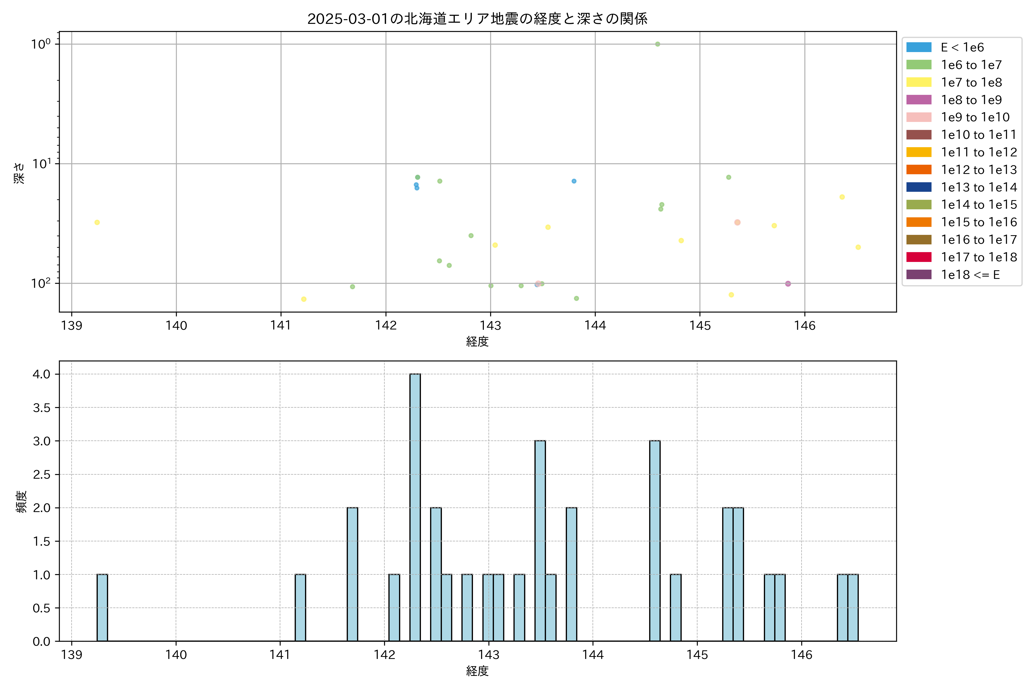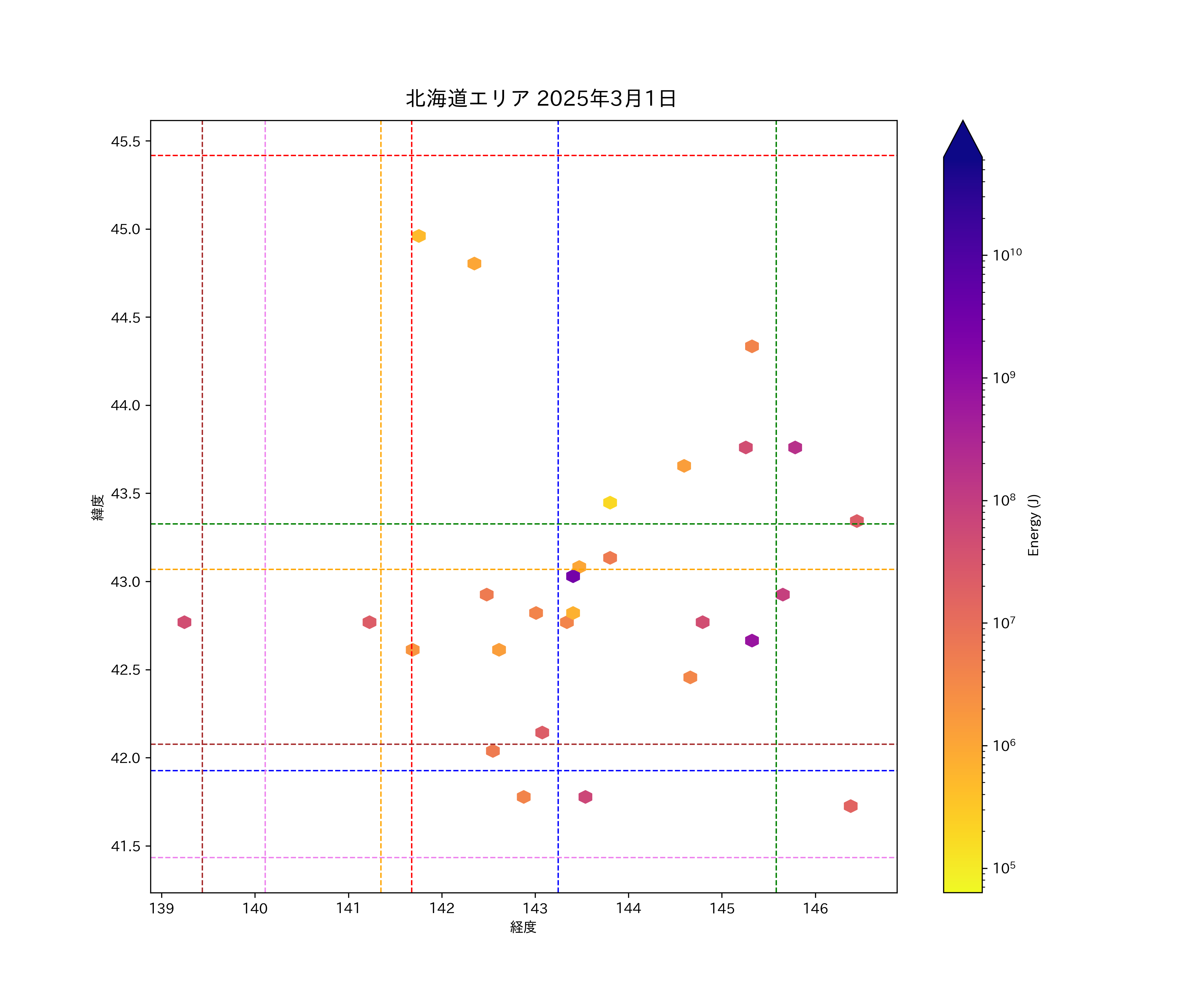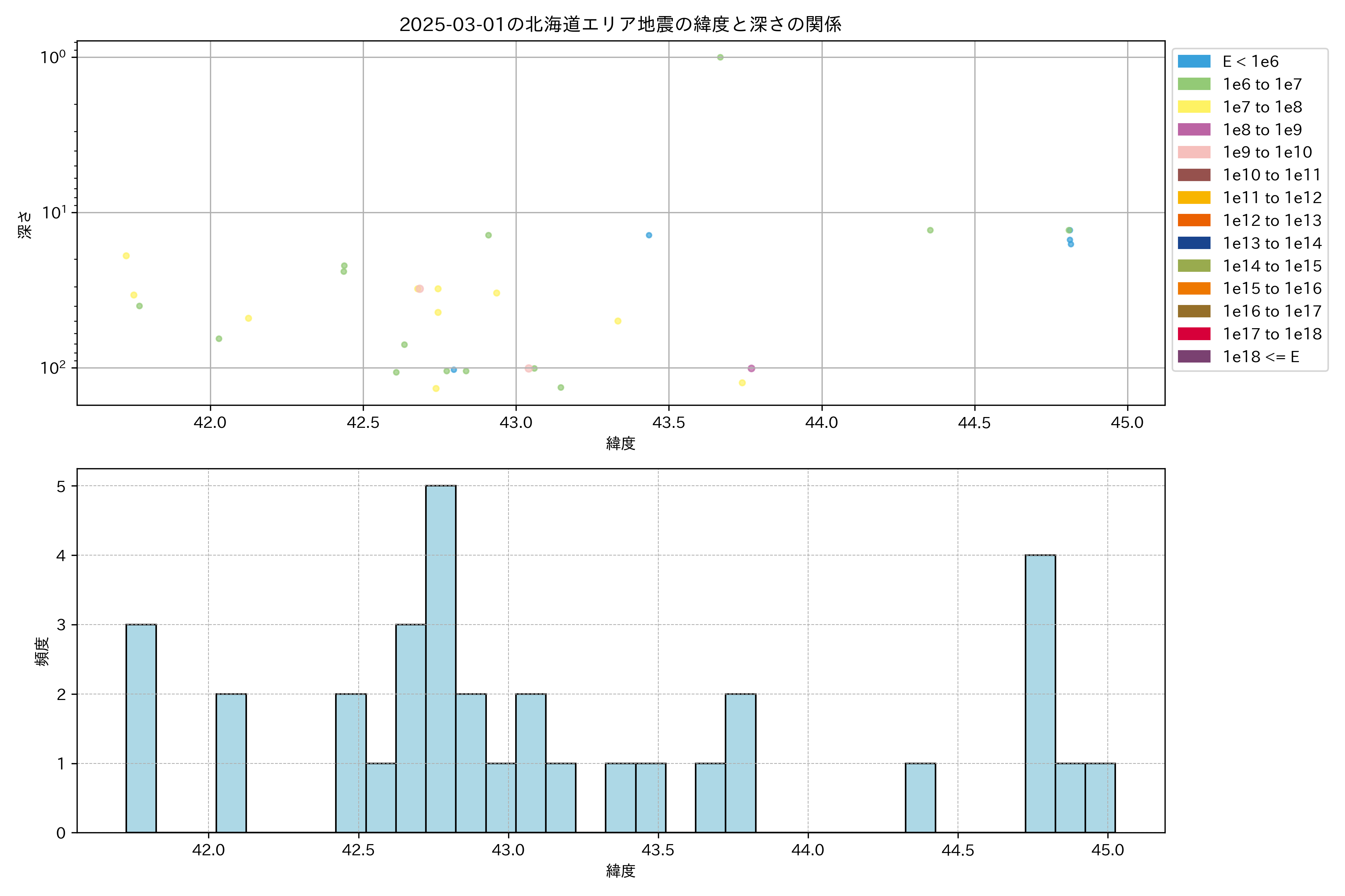2025年03月01日北海道エリア震源マップ