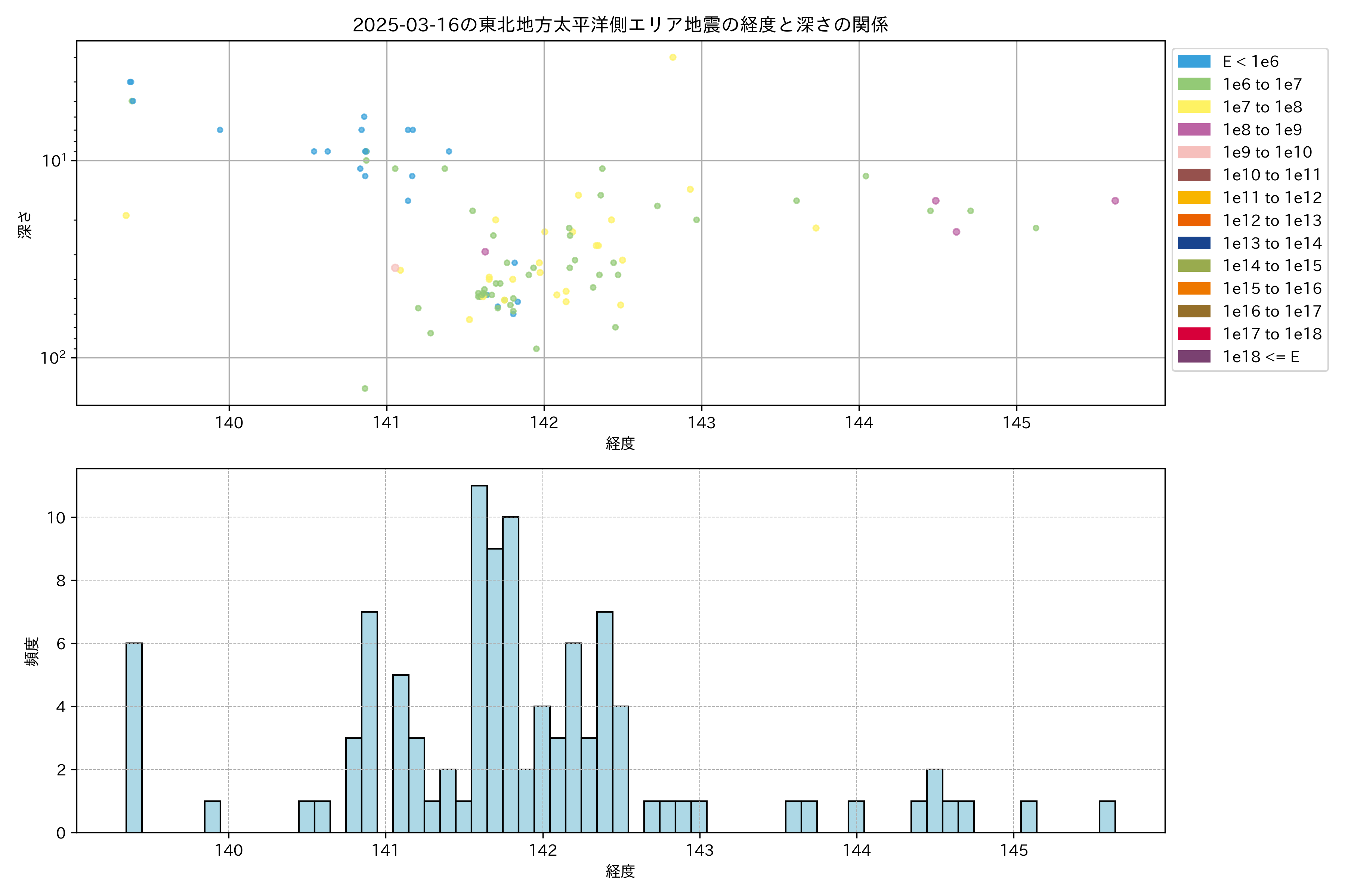 2025年03月16日東北太平洋側エリア震源マップ