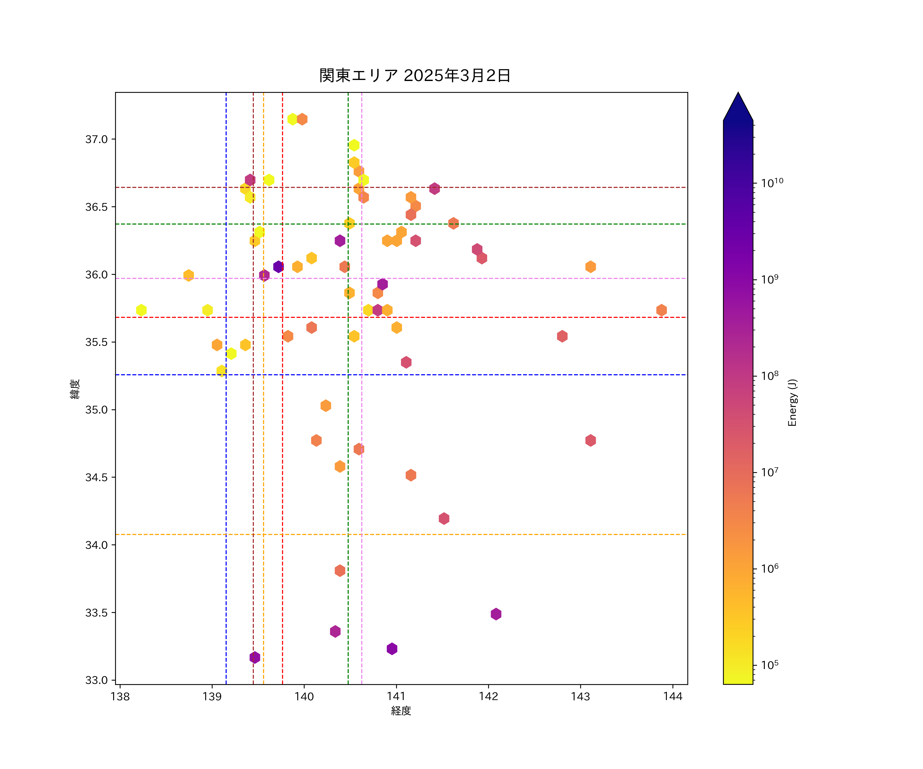 2025年03月02日関東エリア震源マップ