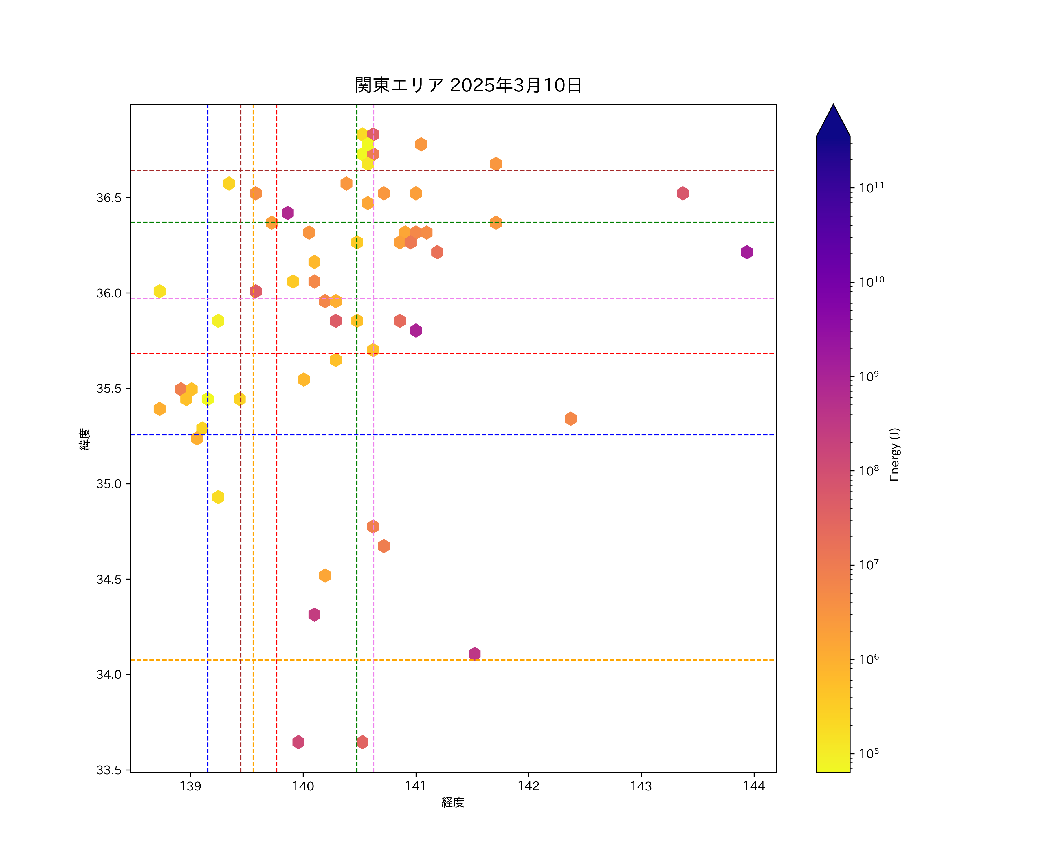 2025年03月10日関東エリア震源マップ