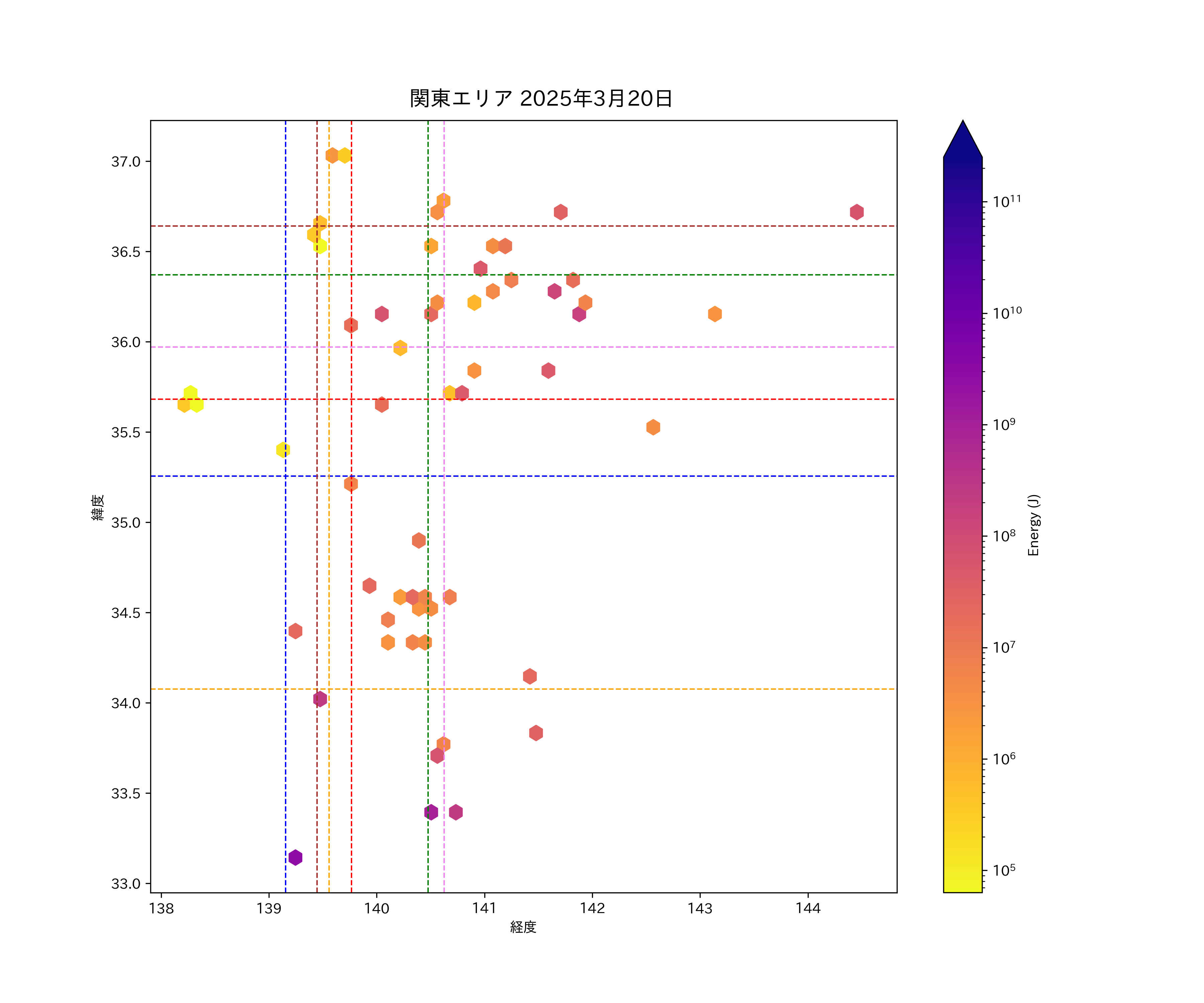 2025年03月20日関東エリア震源マップ