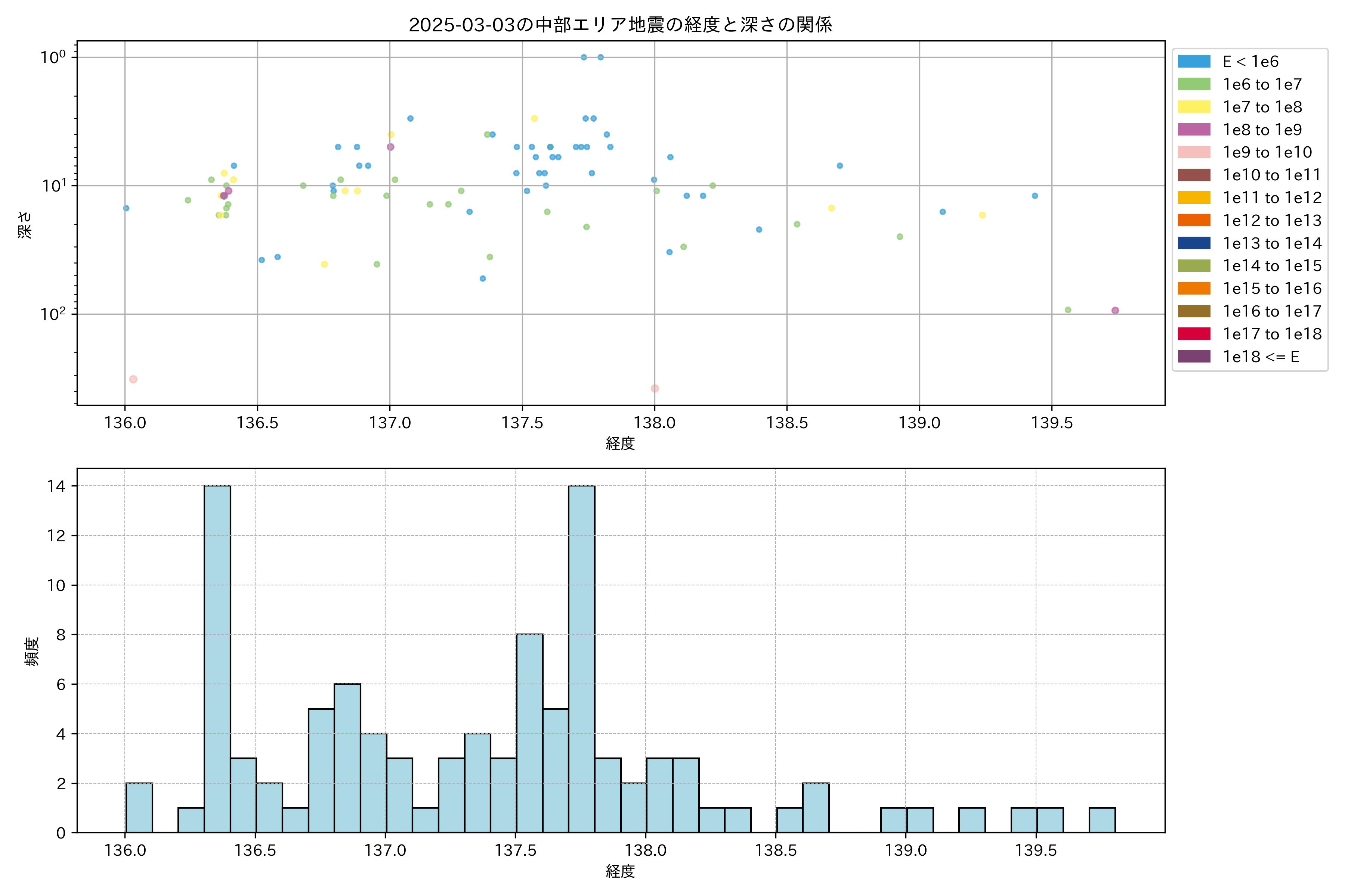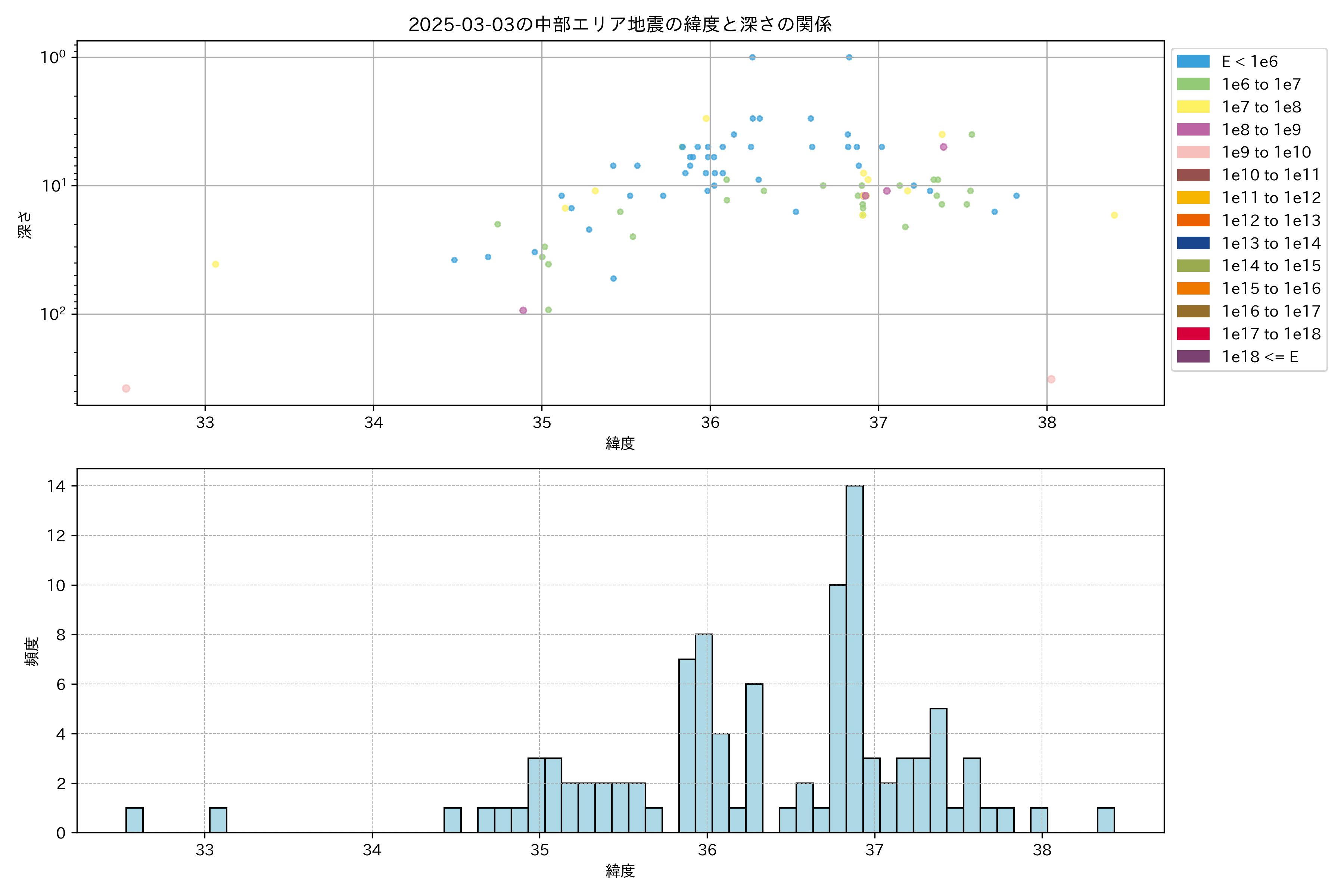 2025年03月03日中部エリア震源マップ