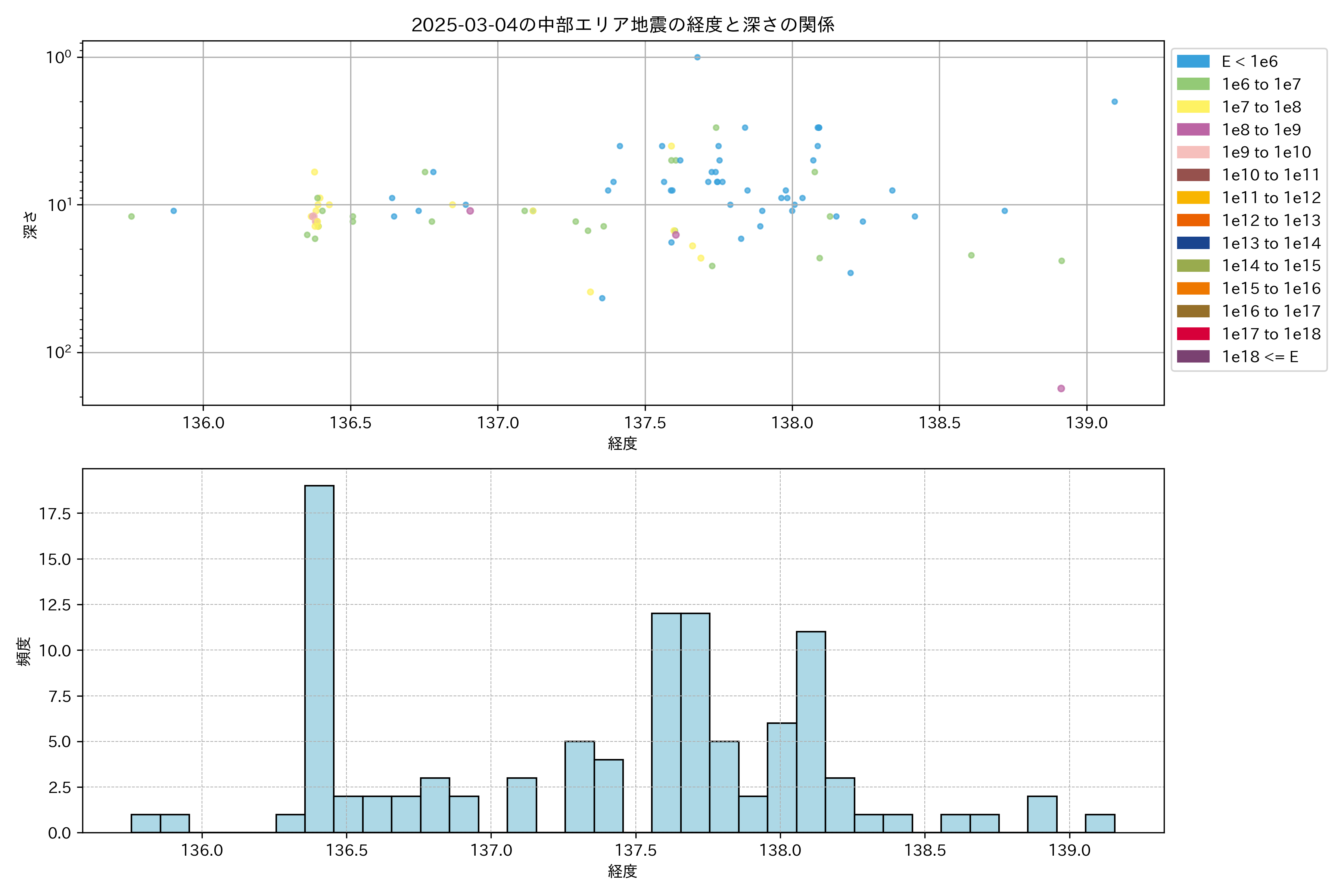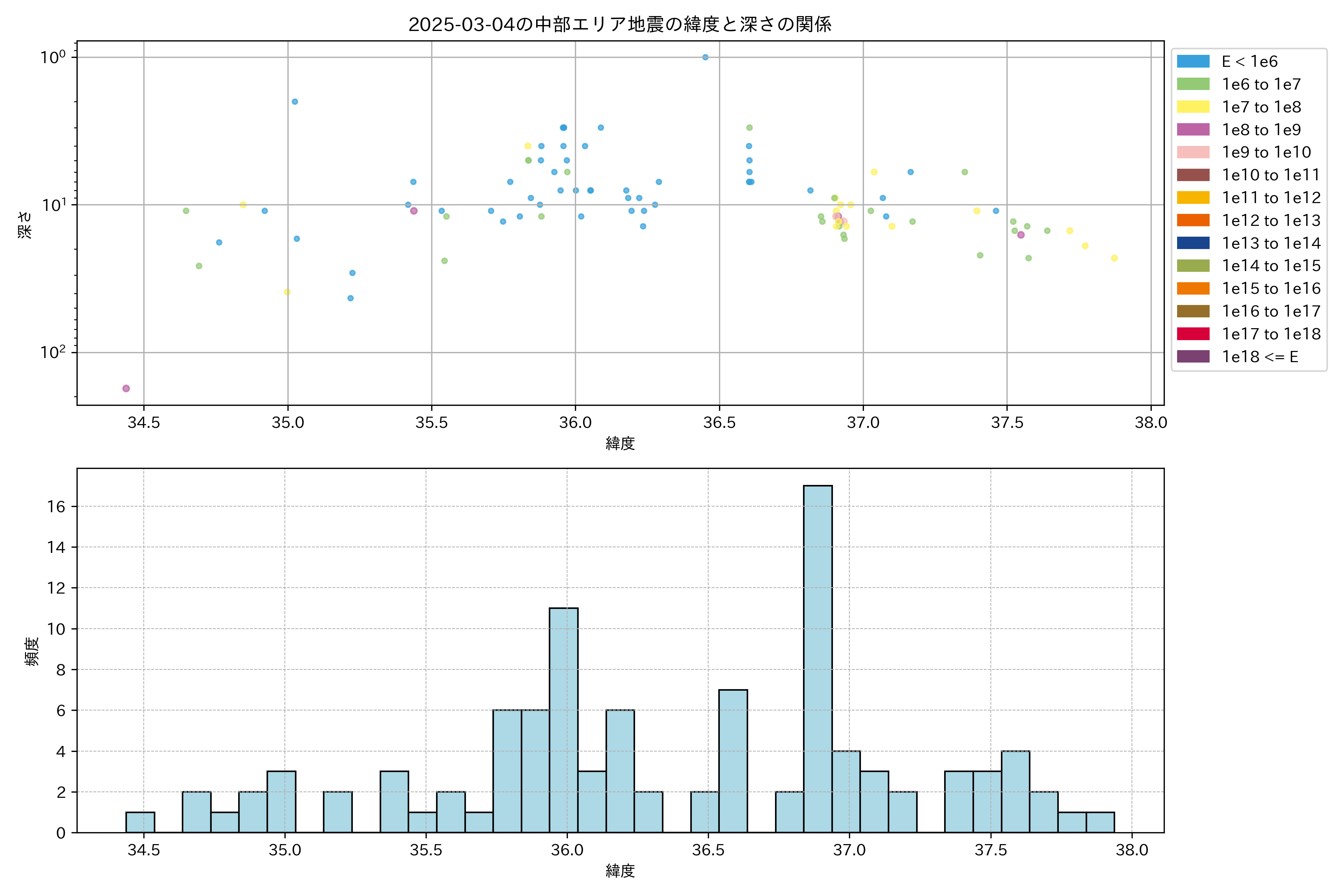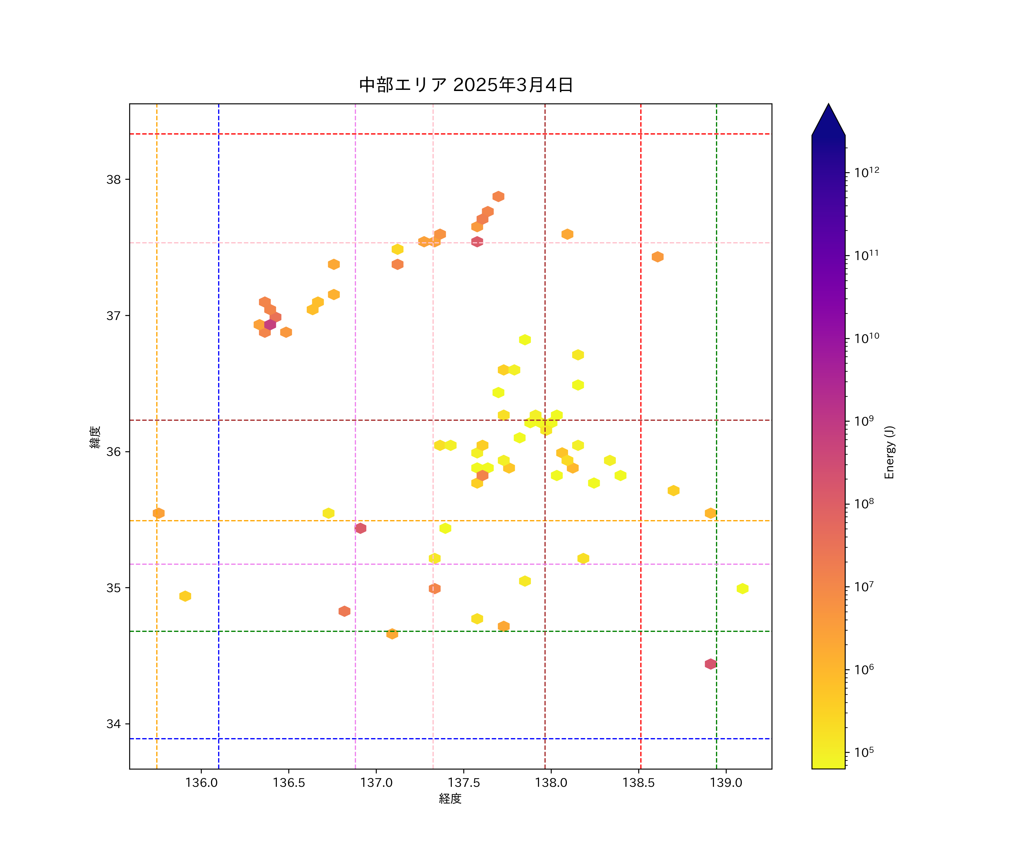 2025年03月04日中部エリア震源マップ