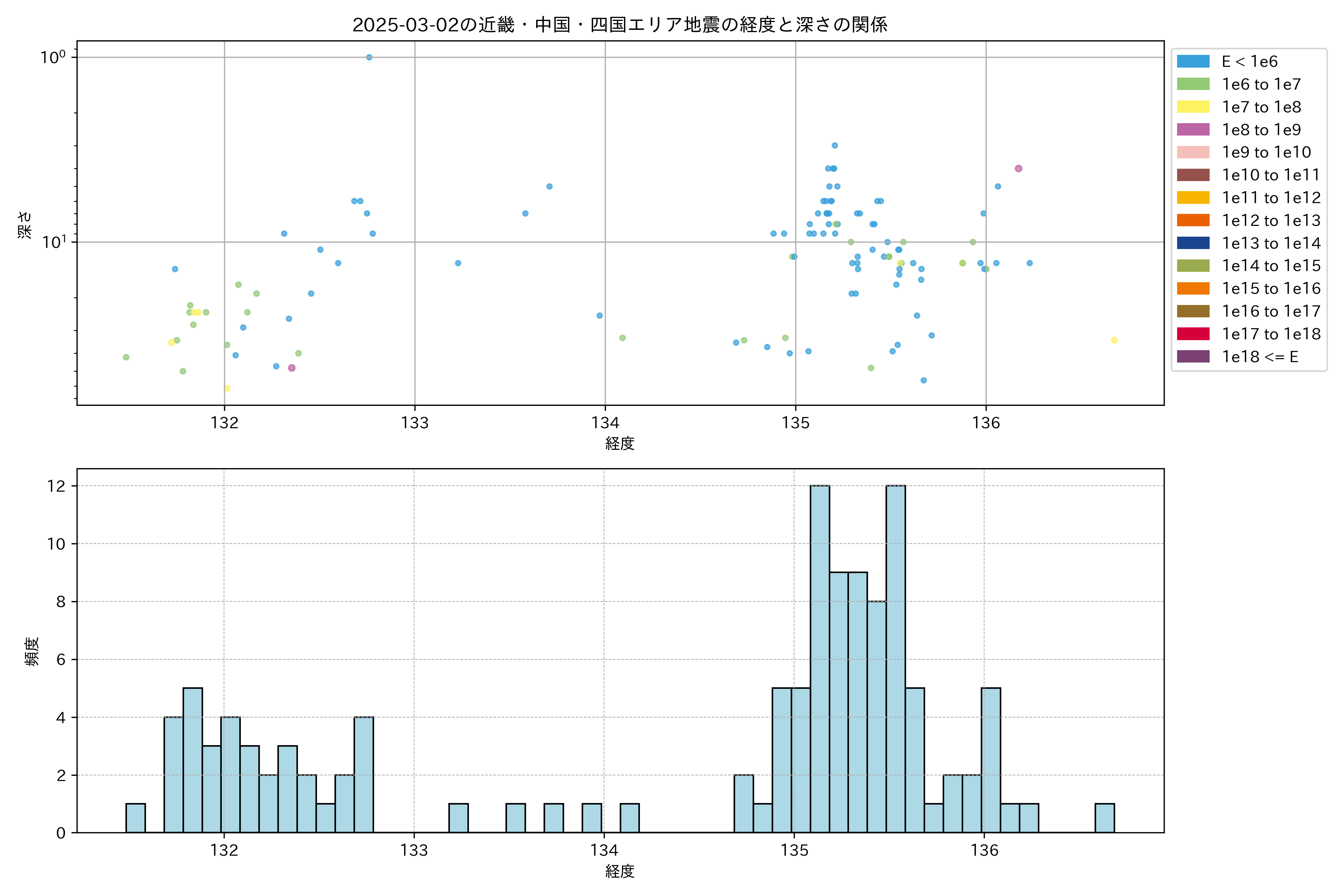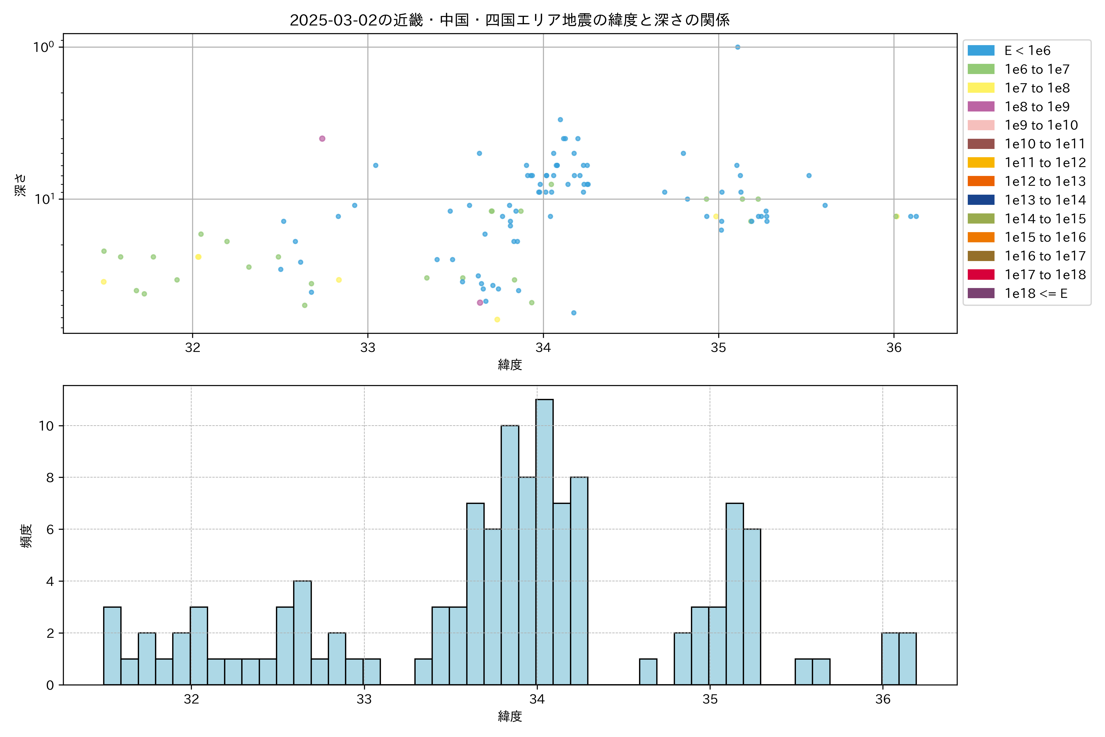2025年03月02日近畿・中国・四国エリア震源マップ