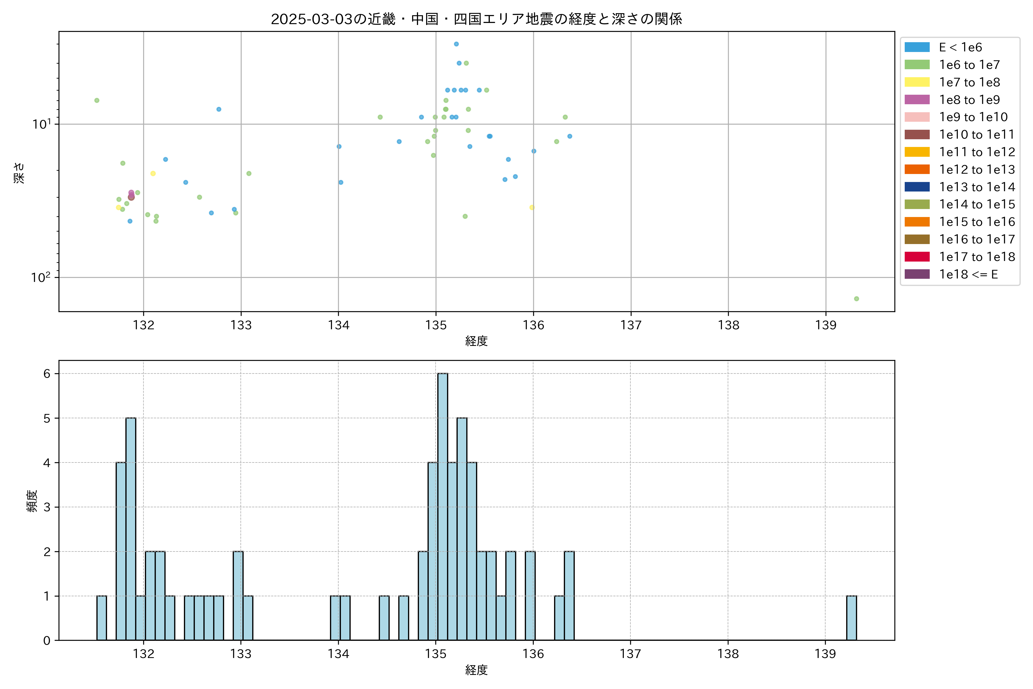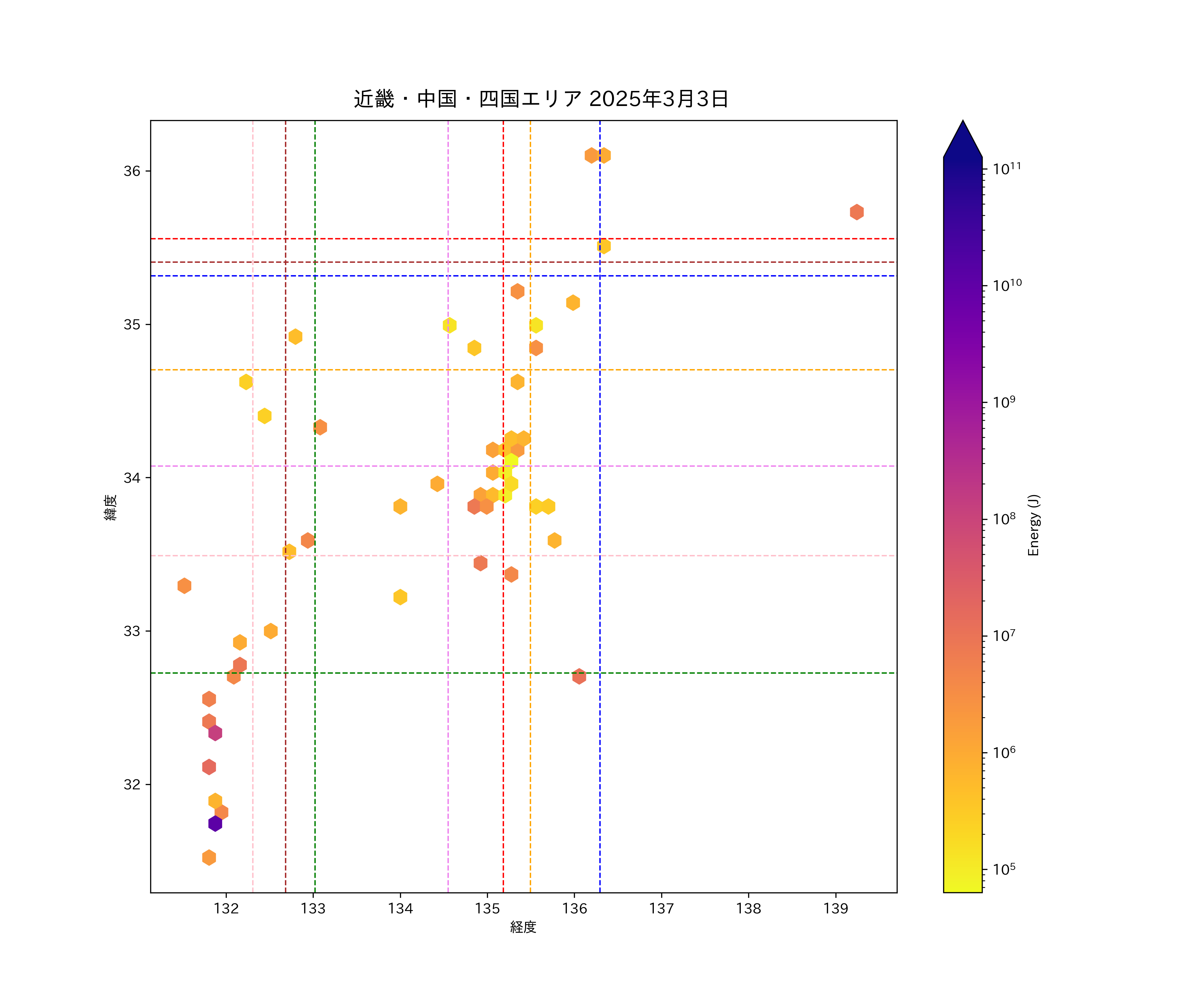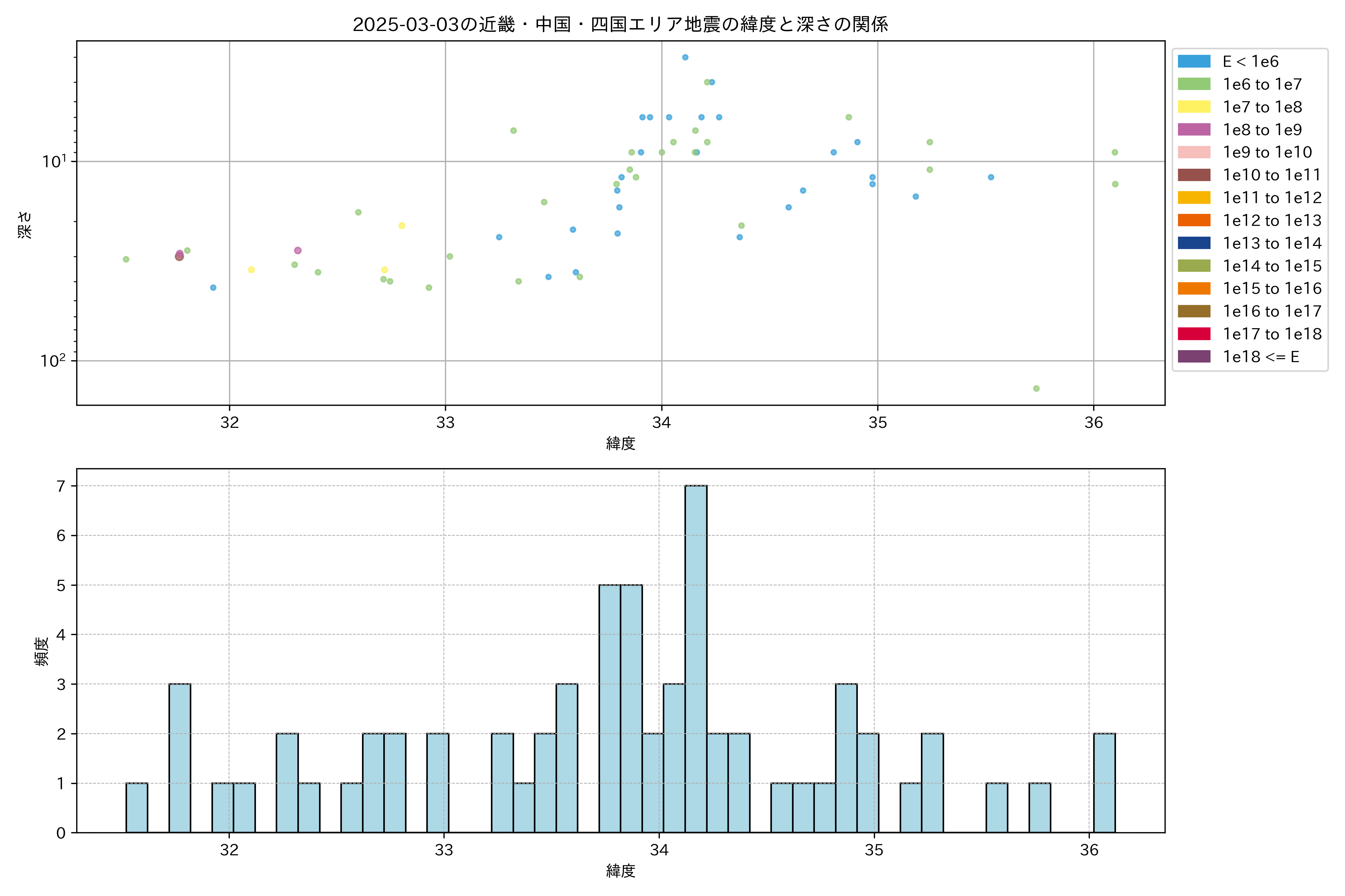 2025年03月03日近畿・中国・四国エリア震源マップ