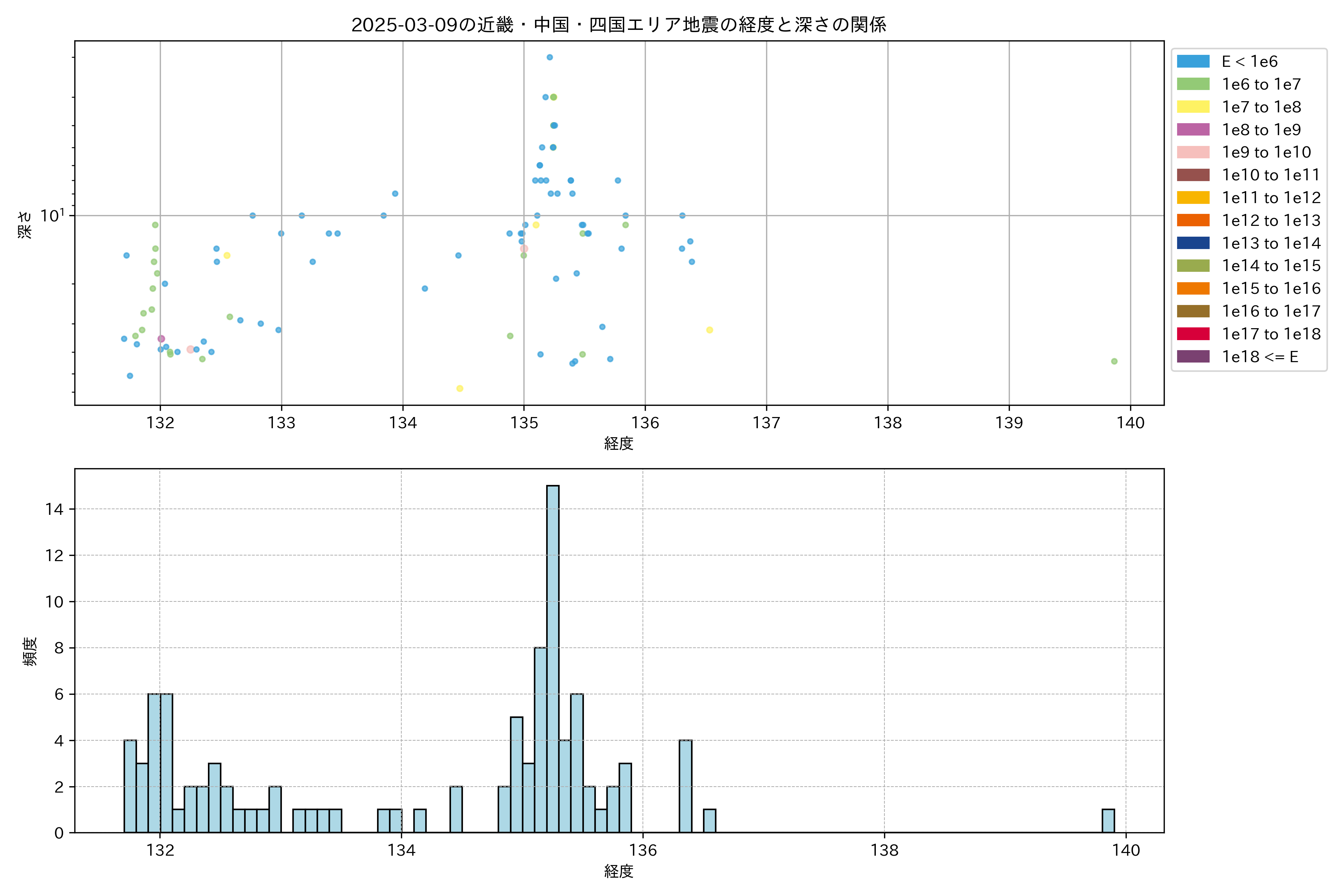 2025年03月09日近畿・中国・四国エリア震源マップ