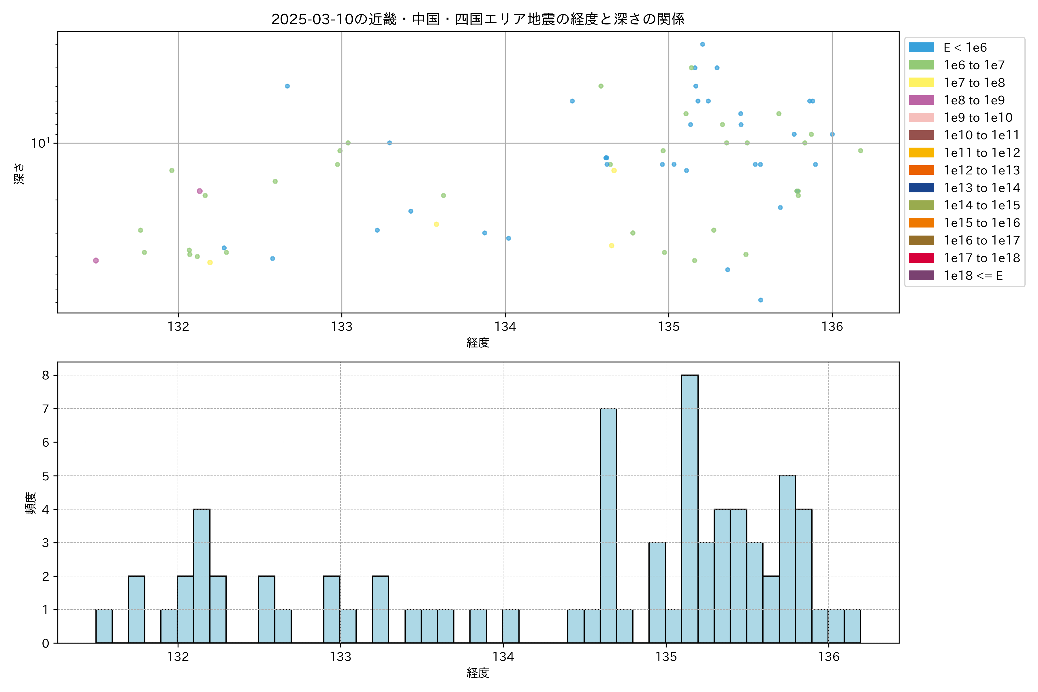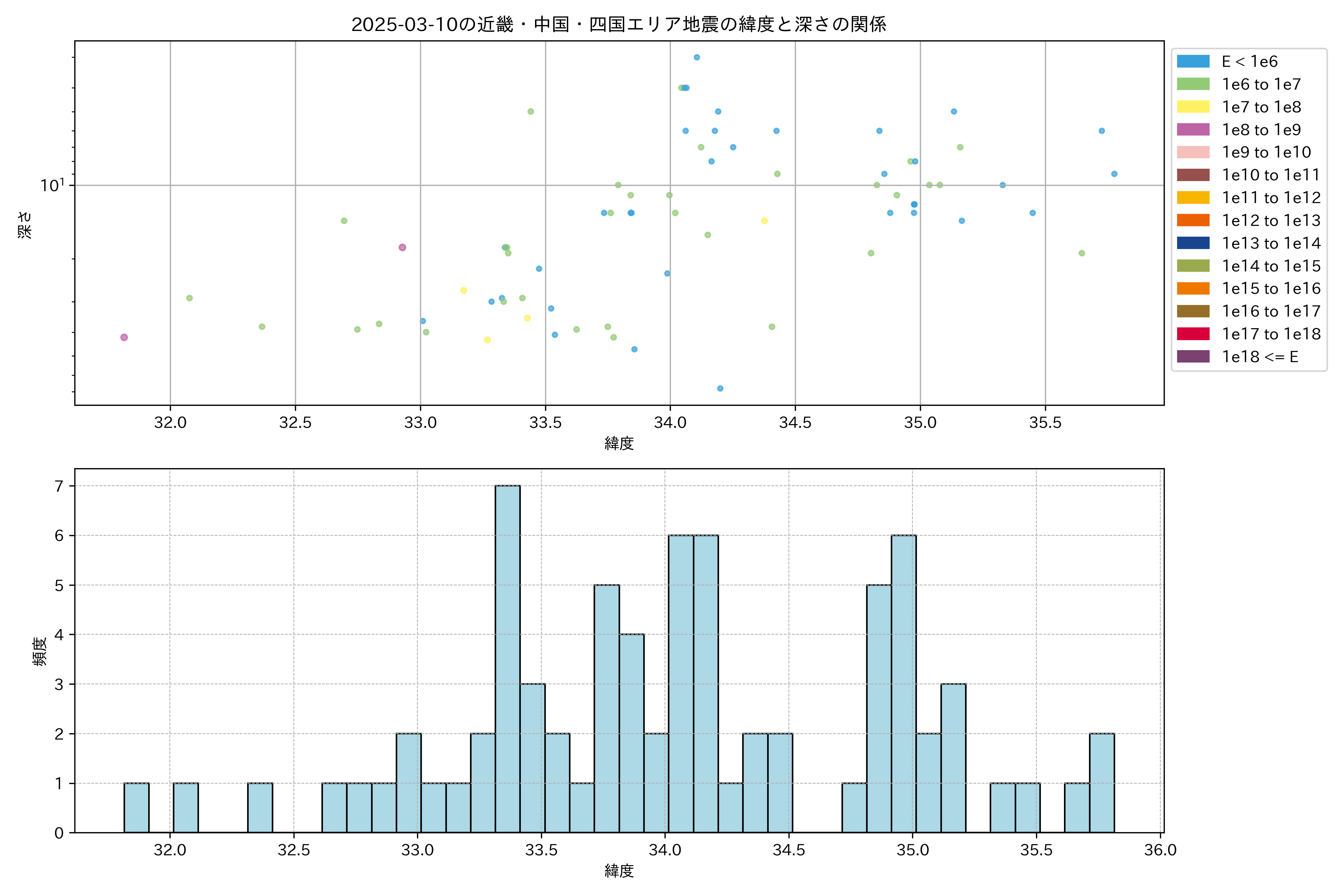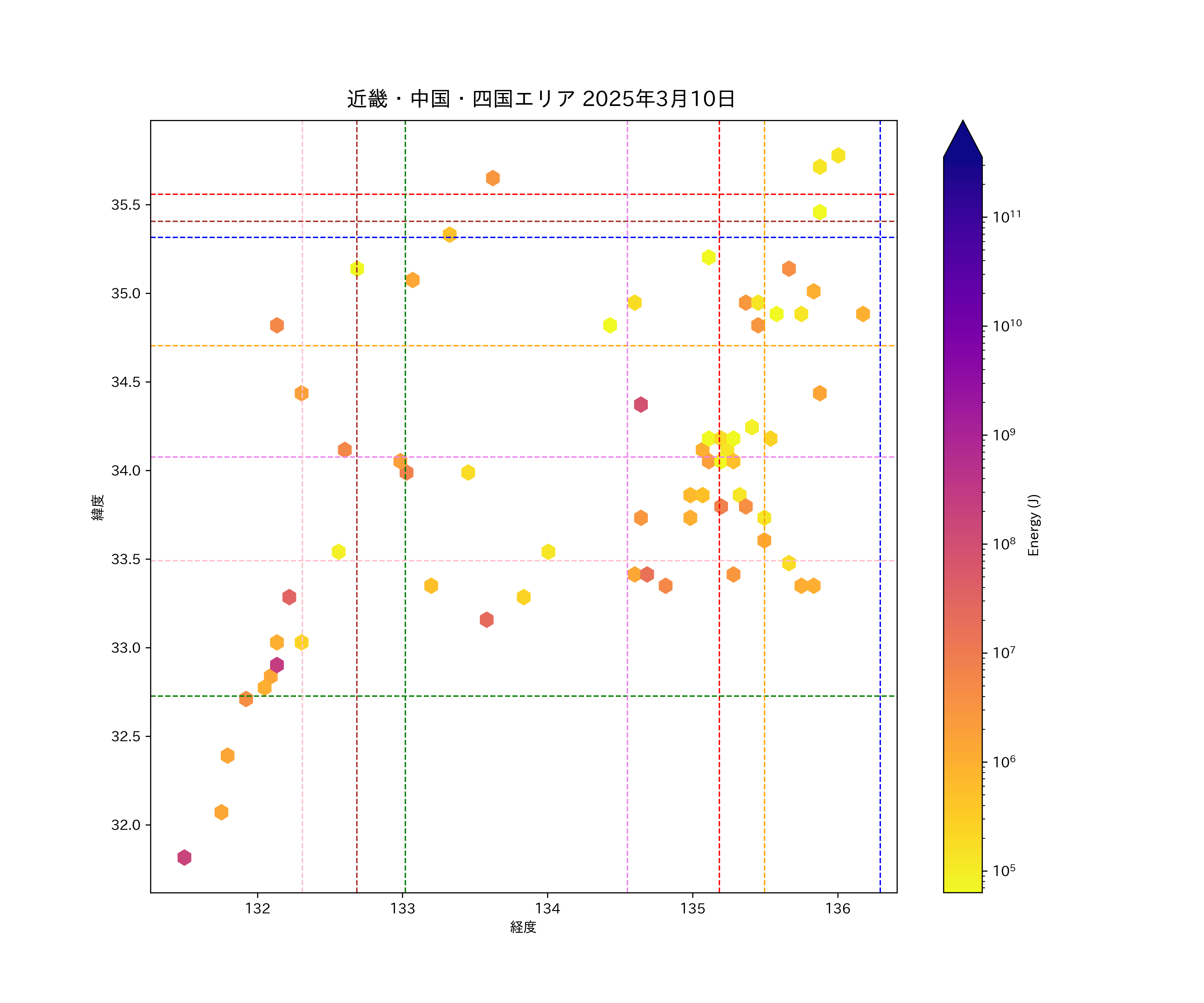 2025年03月10日近畿・中国・四国エリア震源マップ