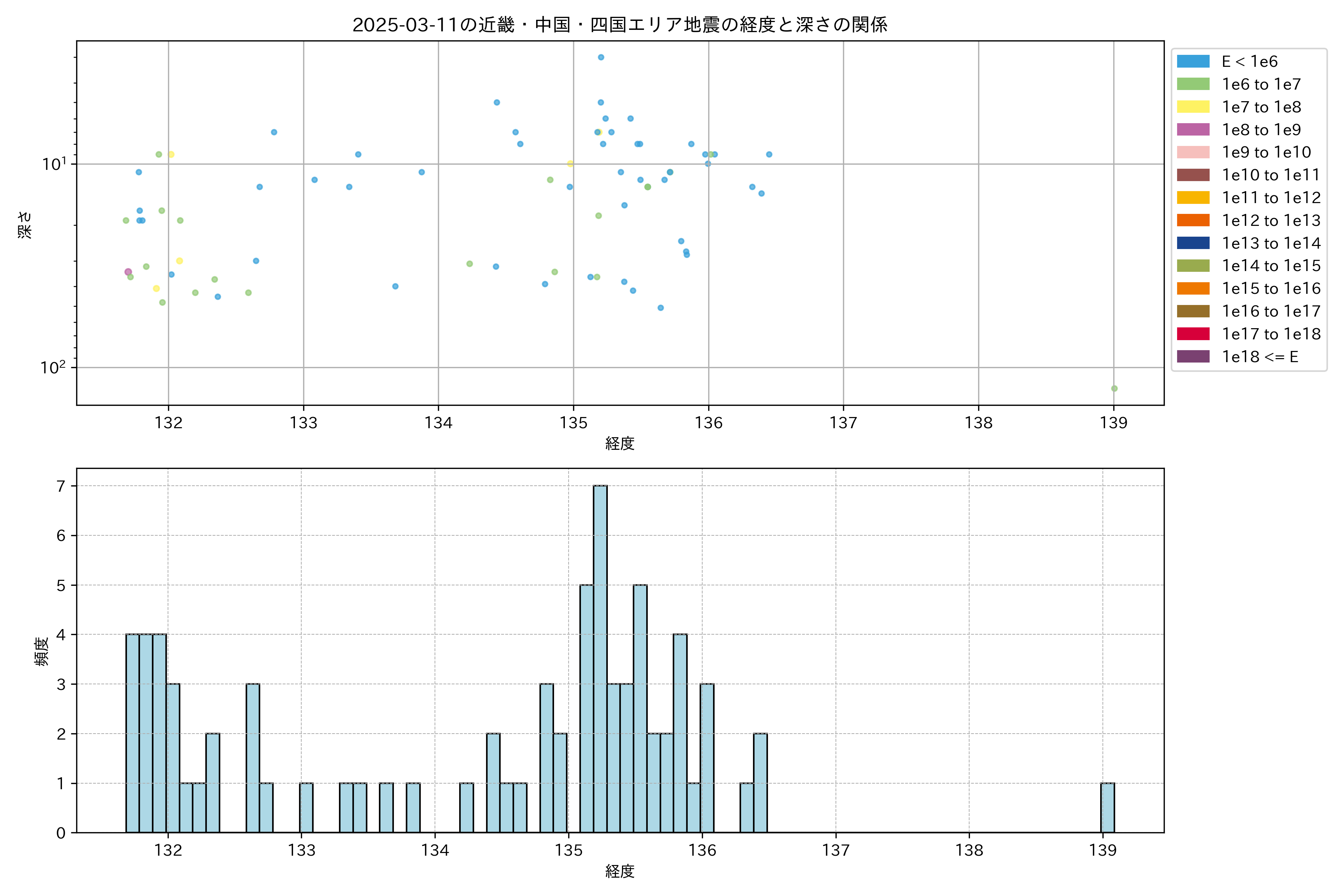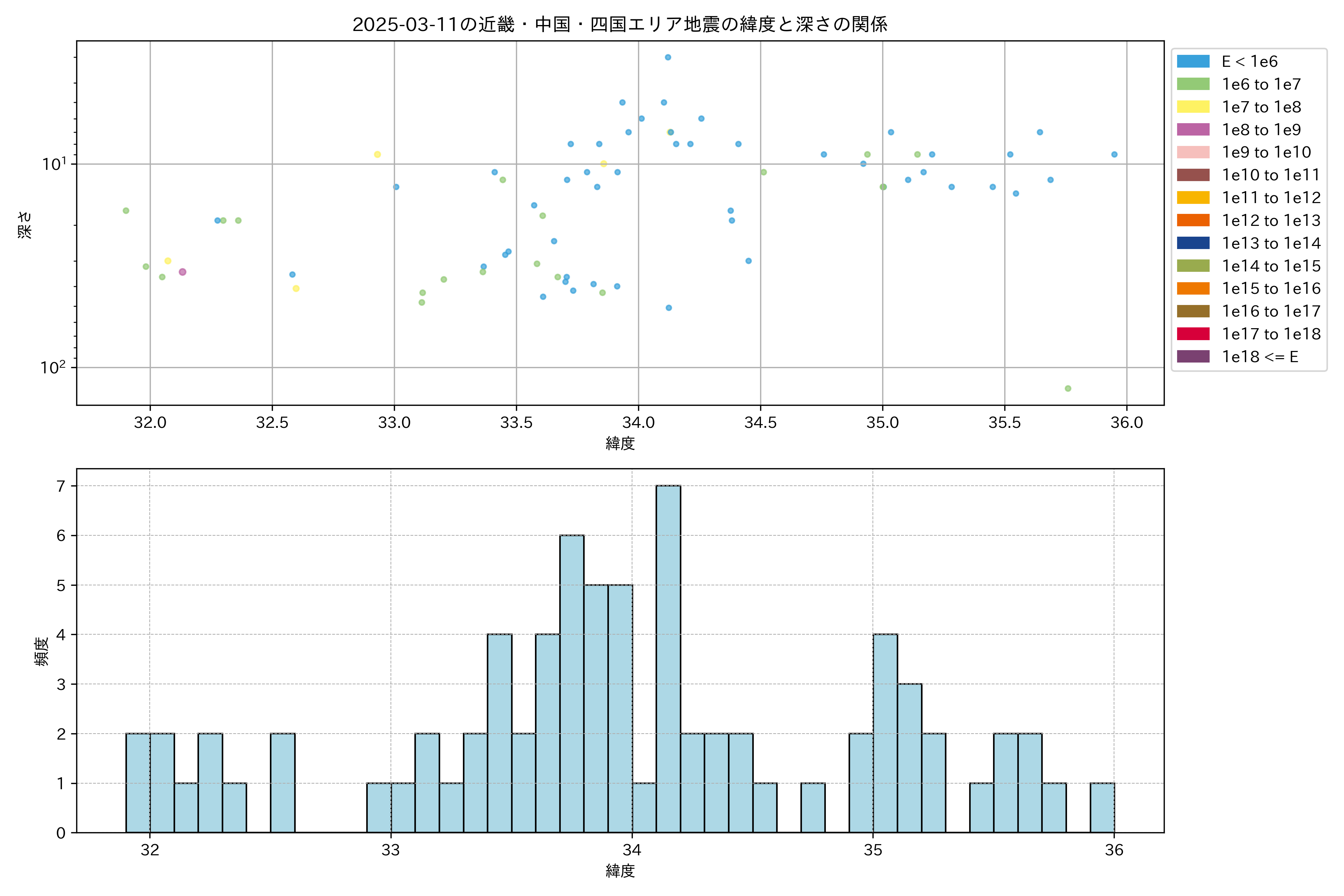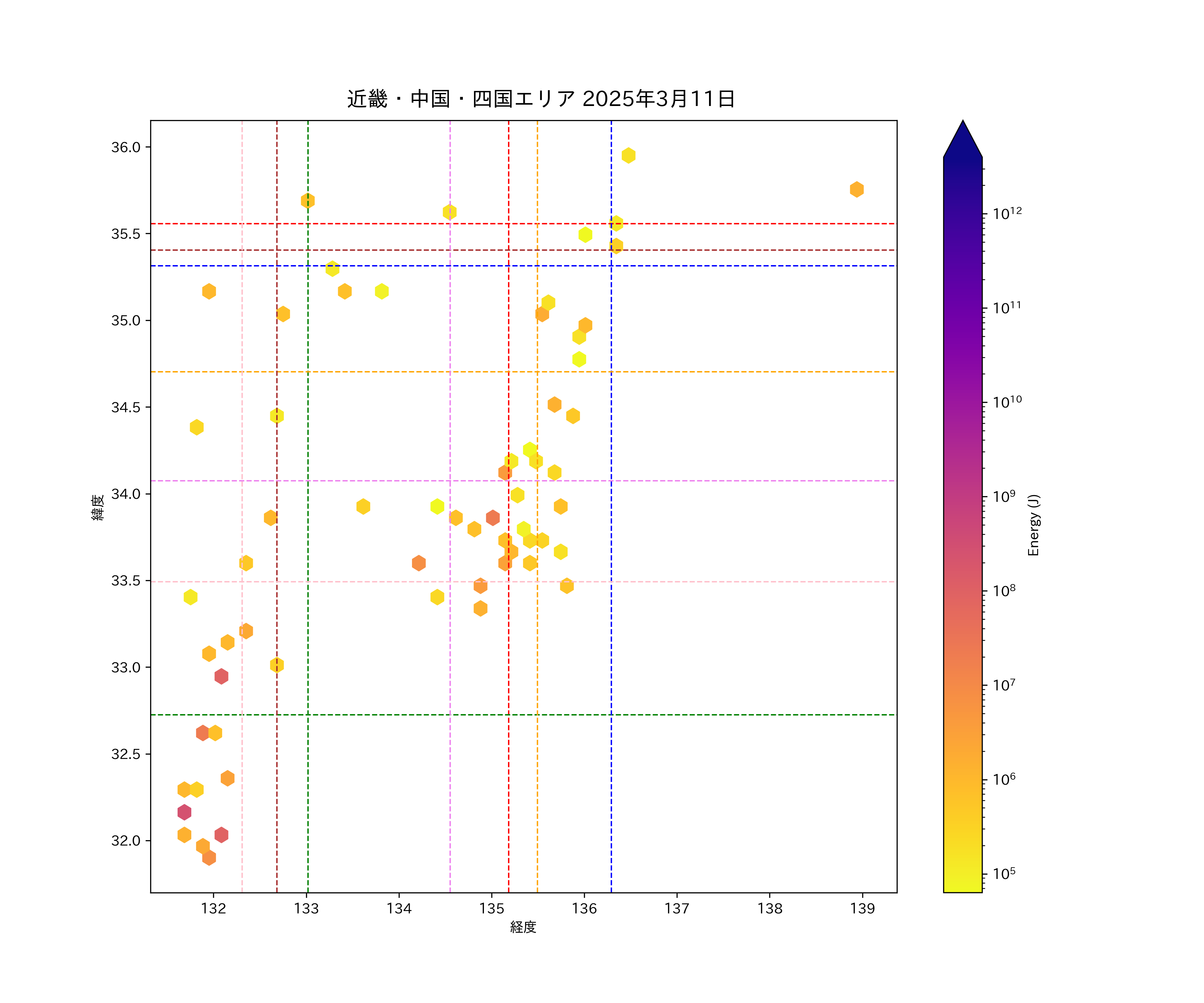 2025年03月11日近畿・中国・四国エリア震源マップ