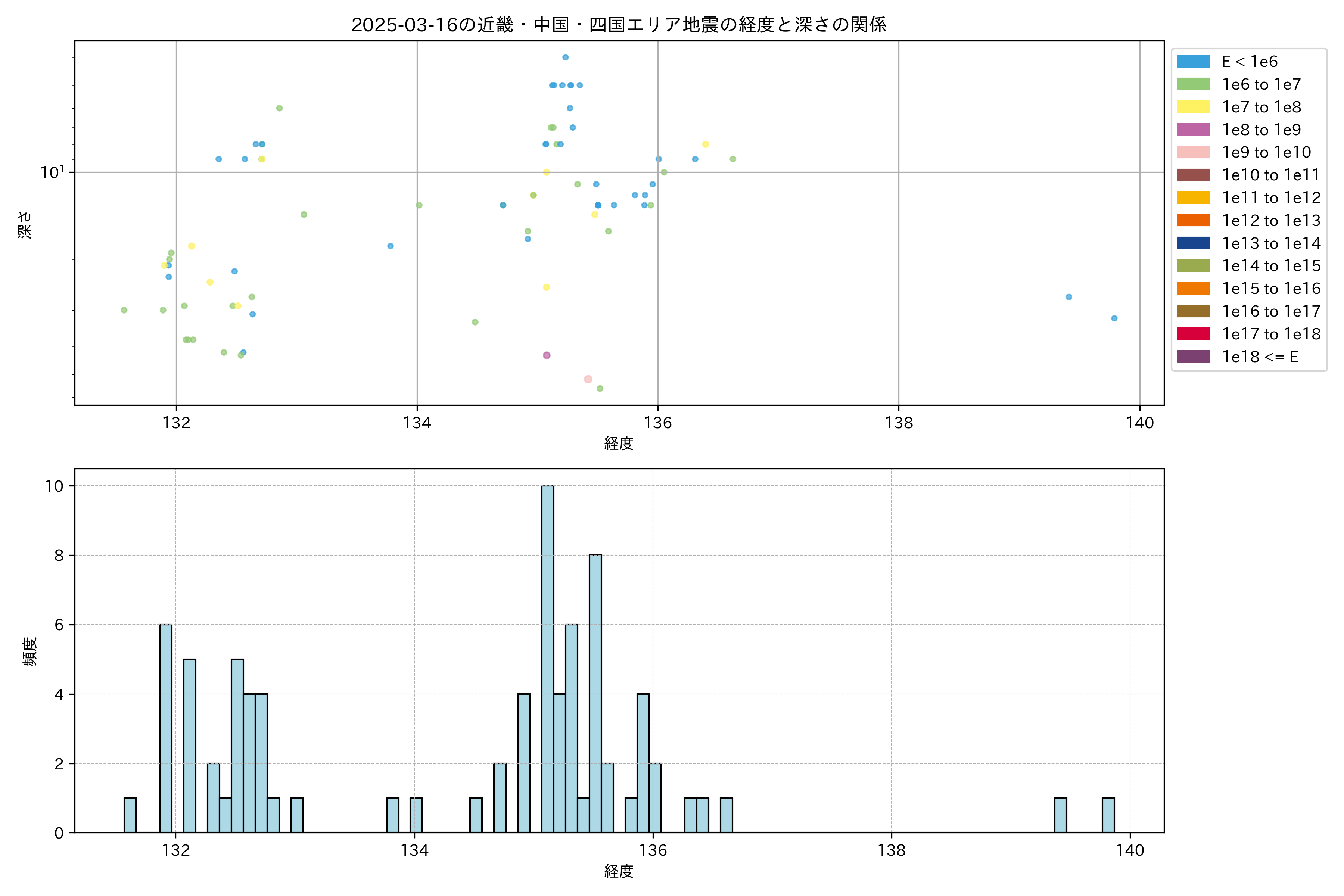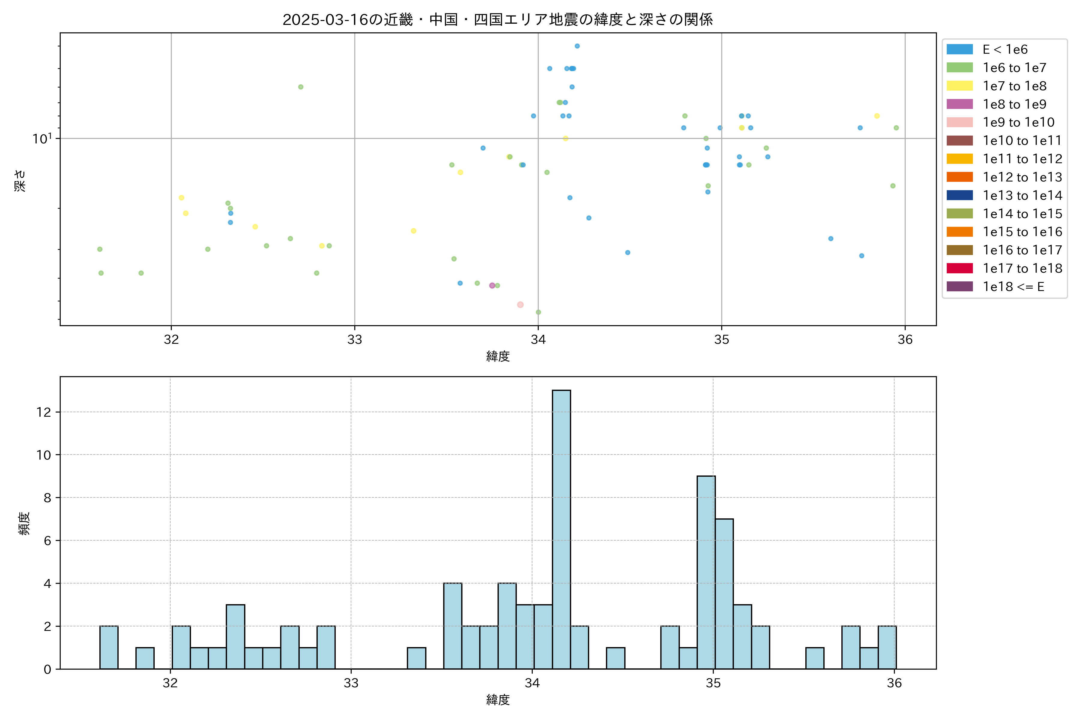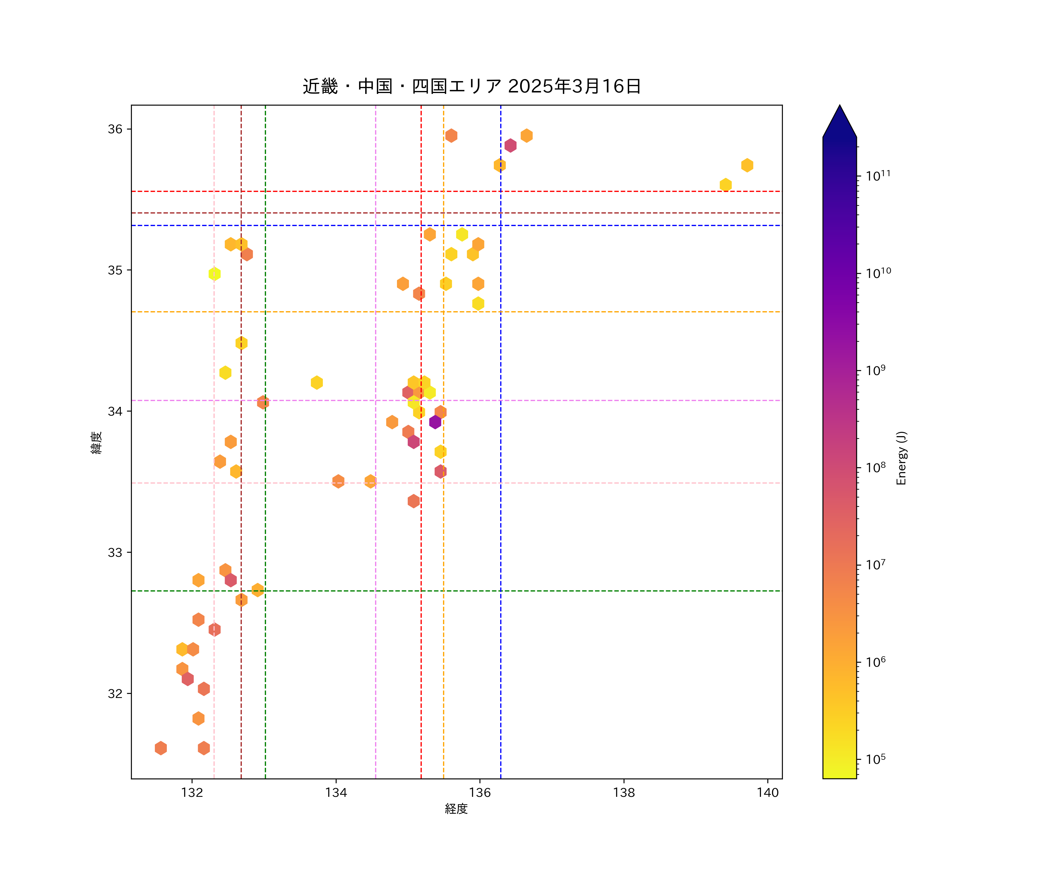 2025年03月16日近畿・中国・四国エリア震源マップ