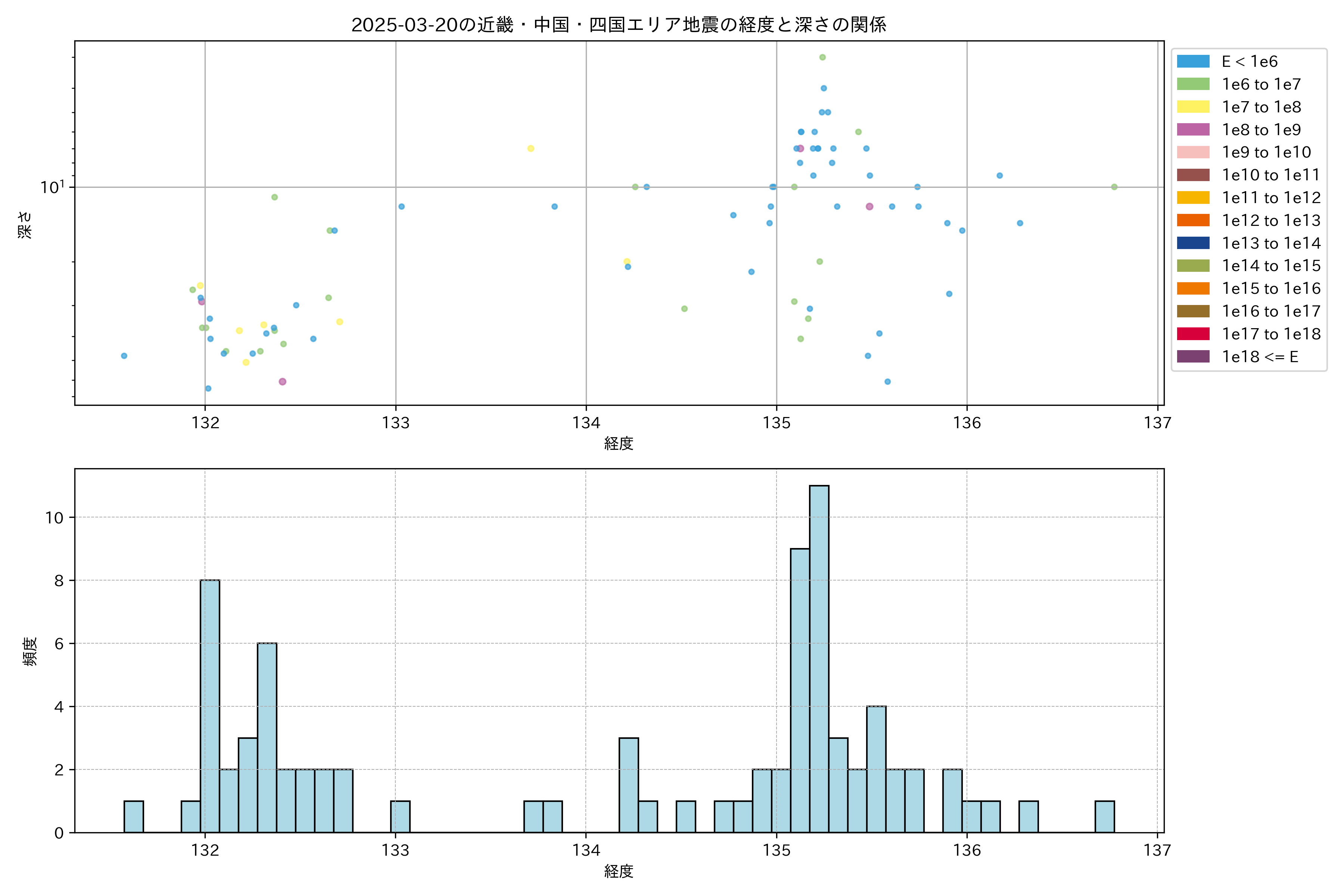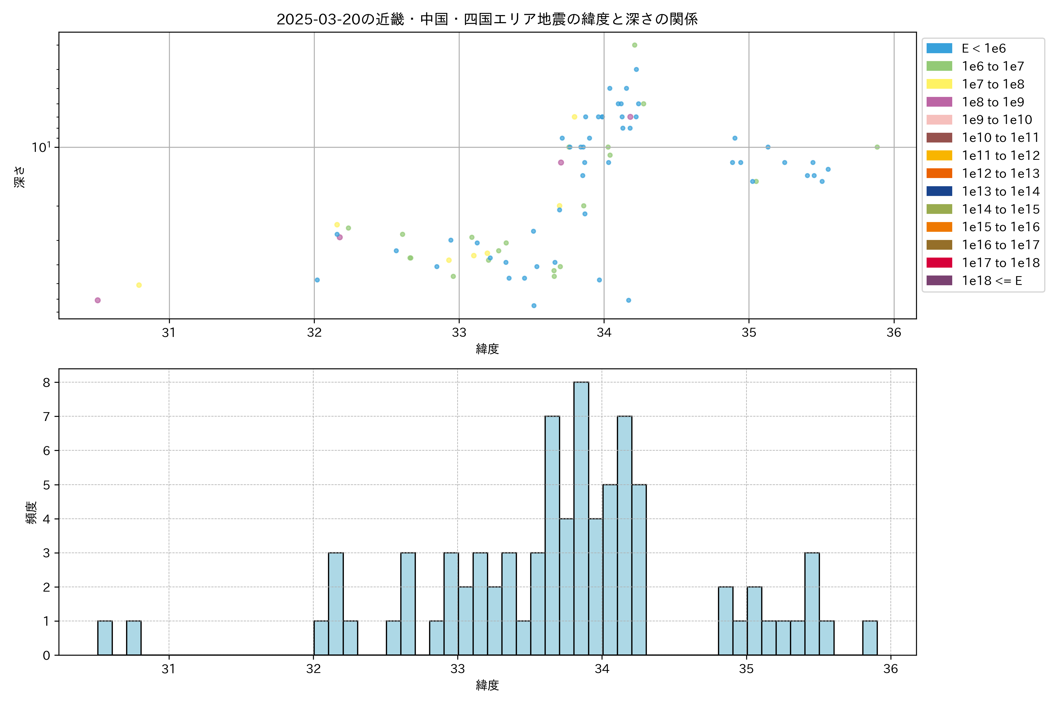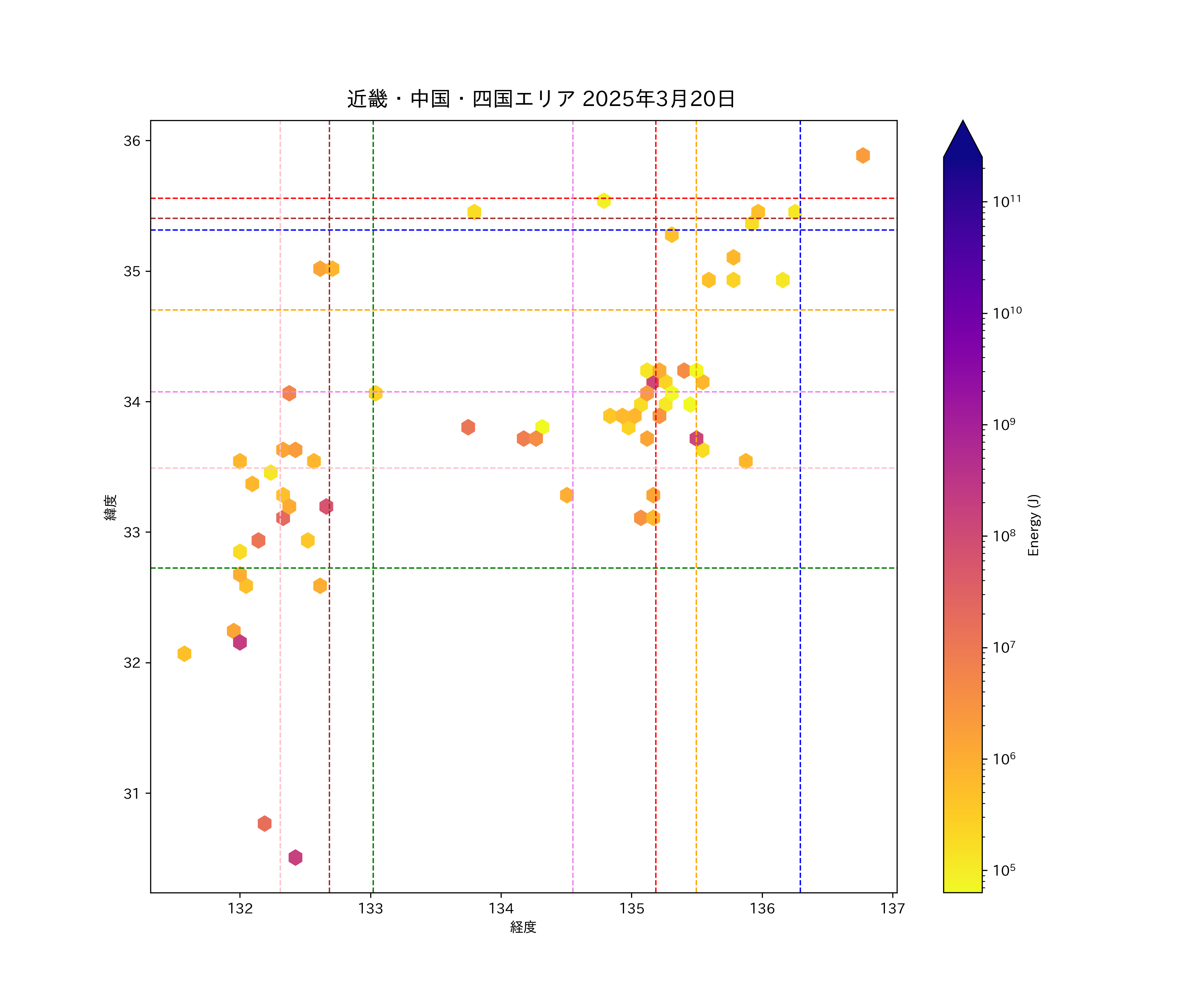 2025年03月20日近畿・中国・四国エリア震源マップ
