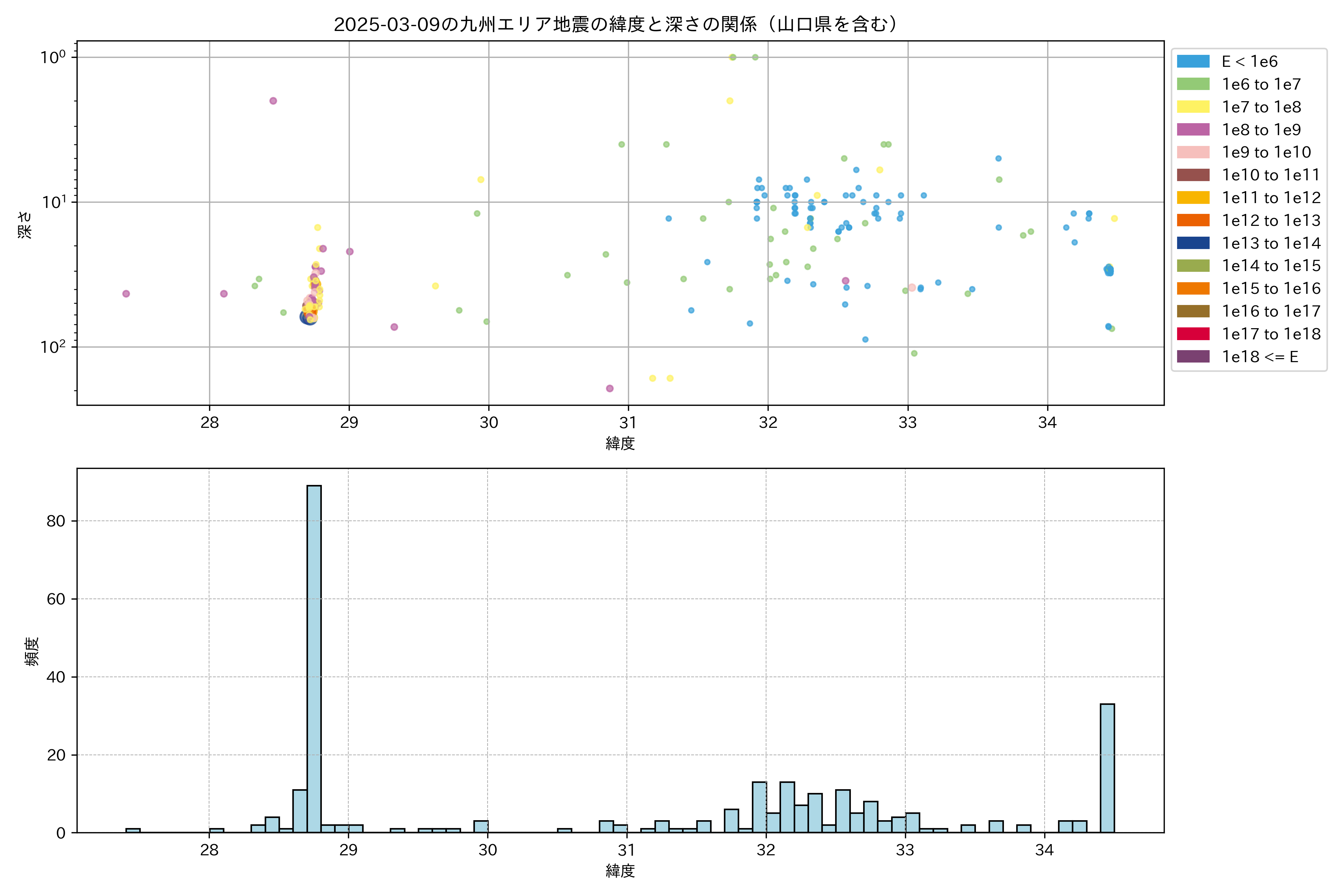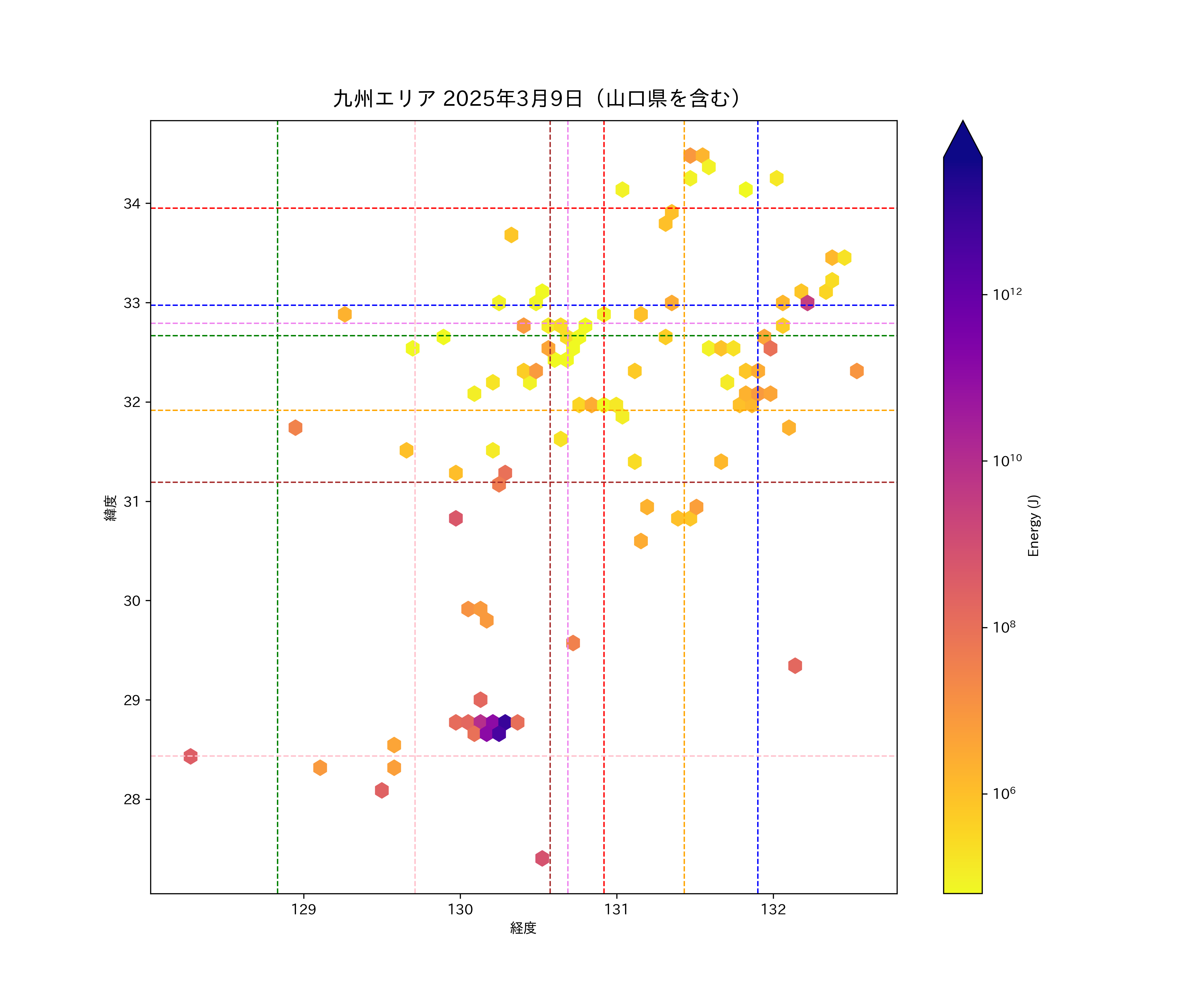 2025年03月09日九州エリア震源マップ
