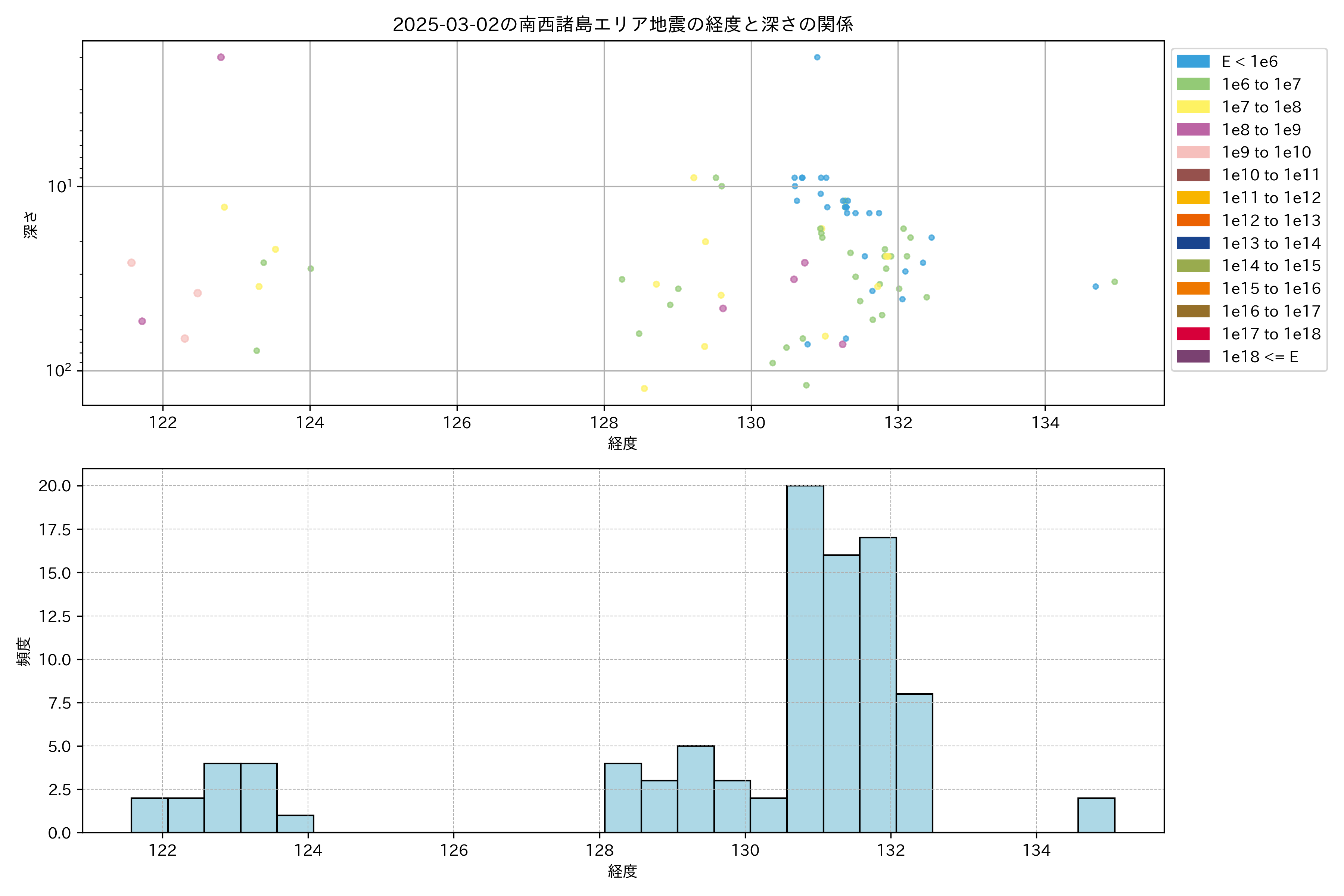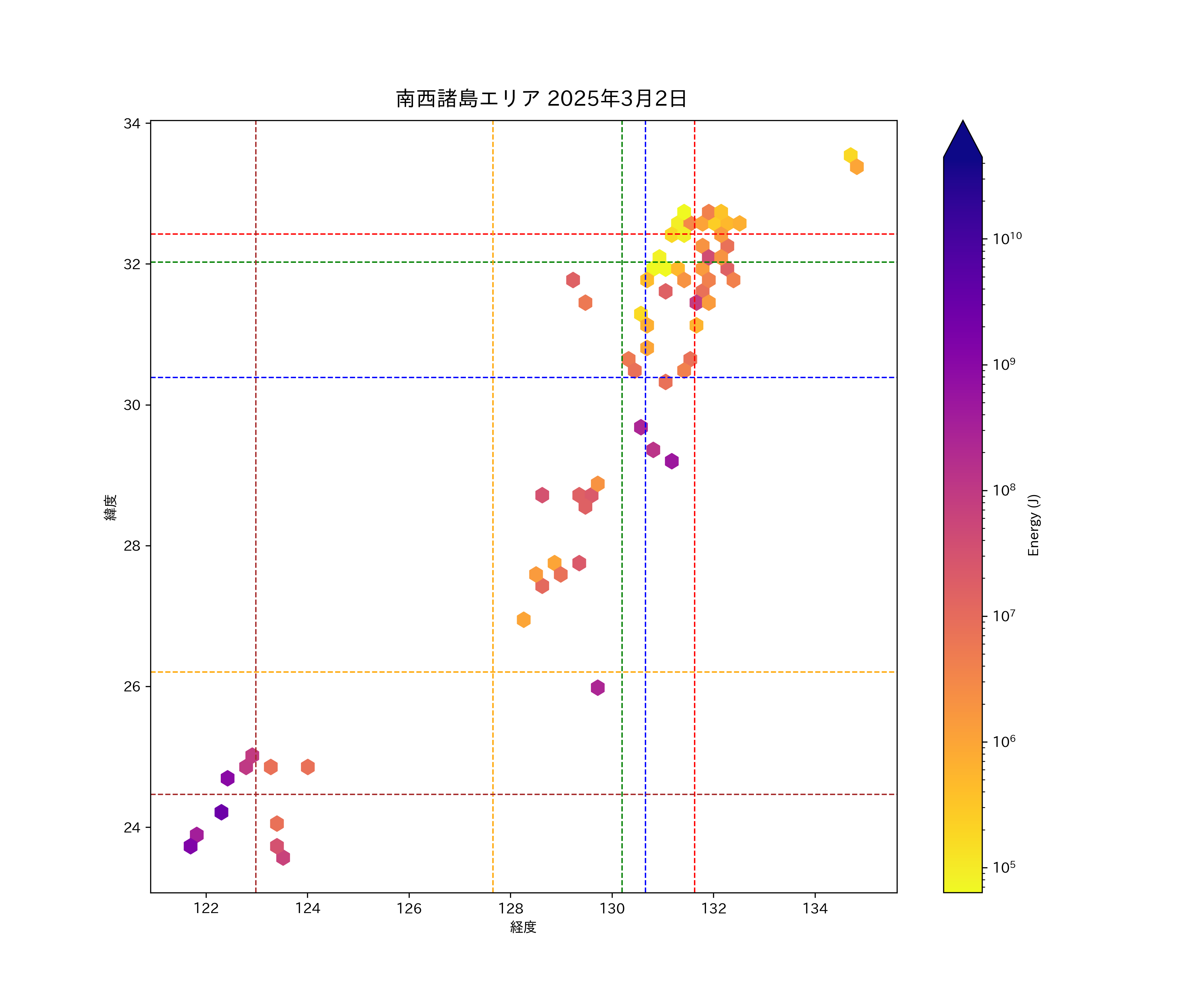 2025年03月02日南西諸島エリア震源マップ