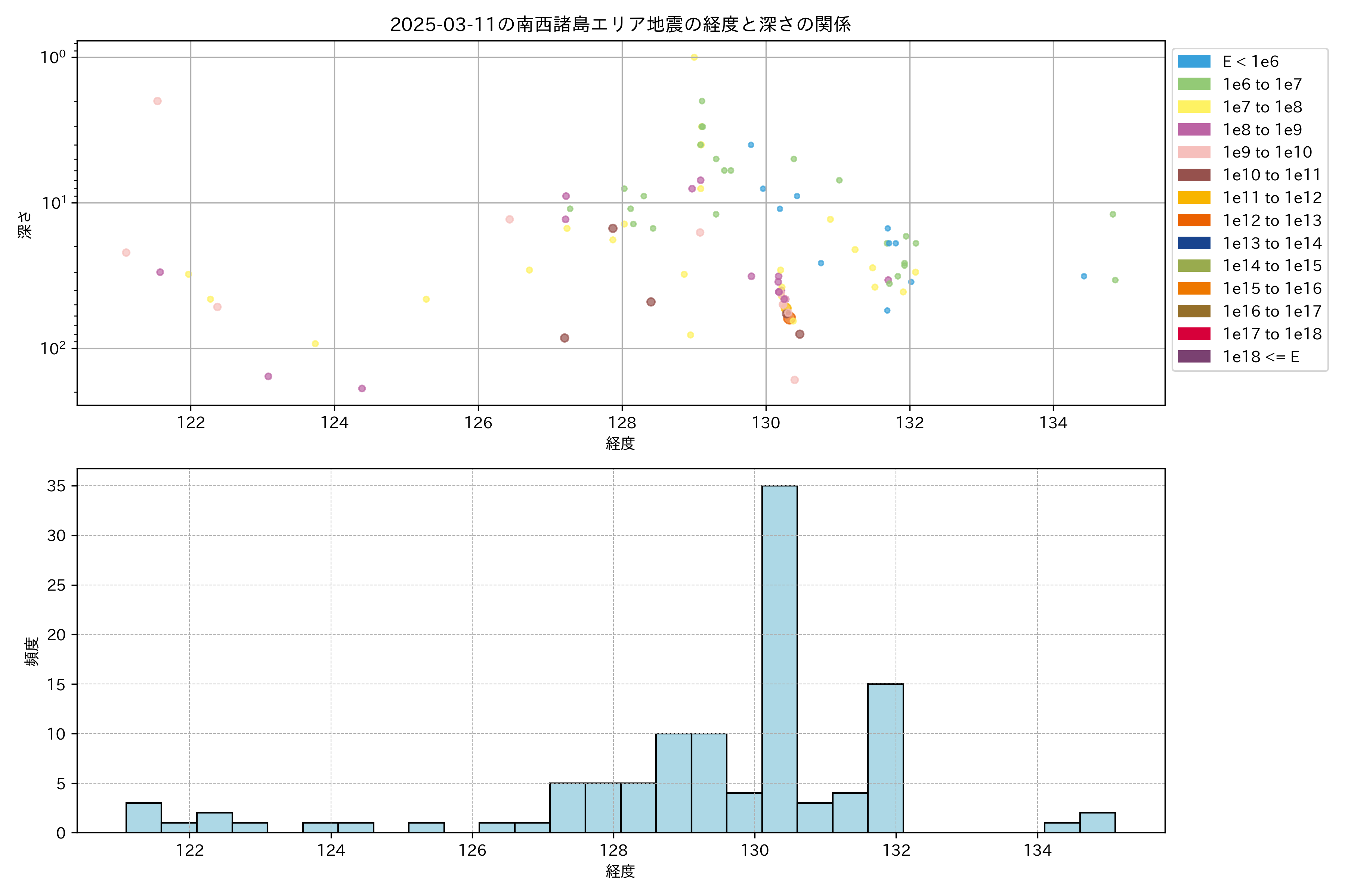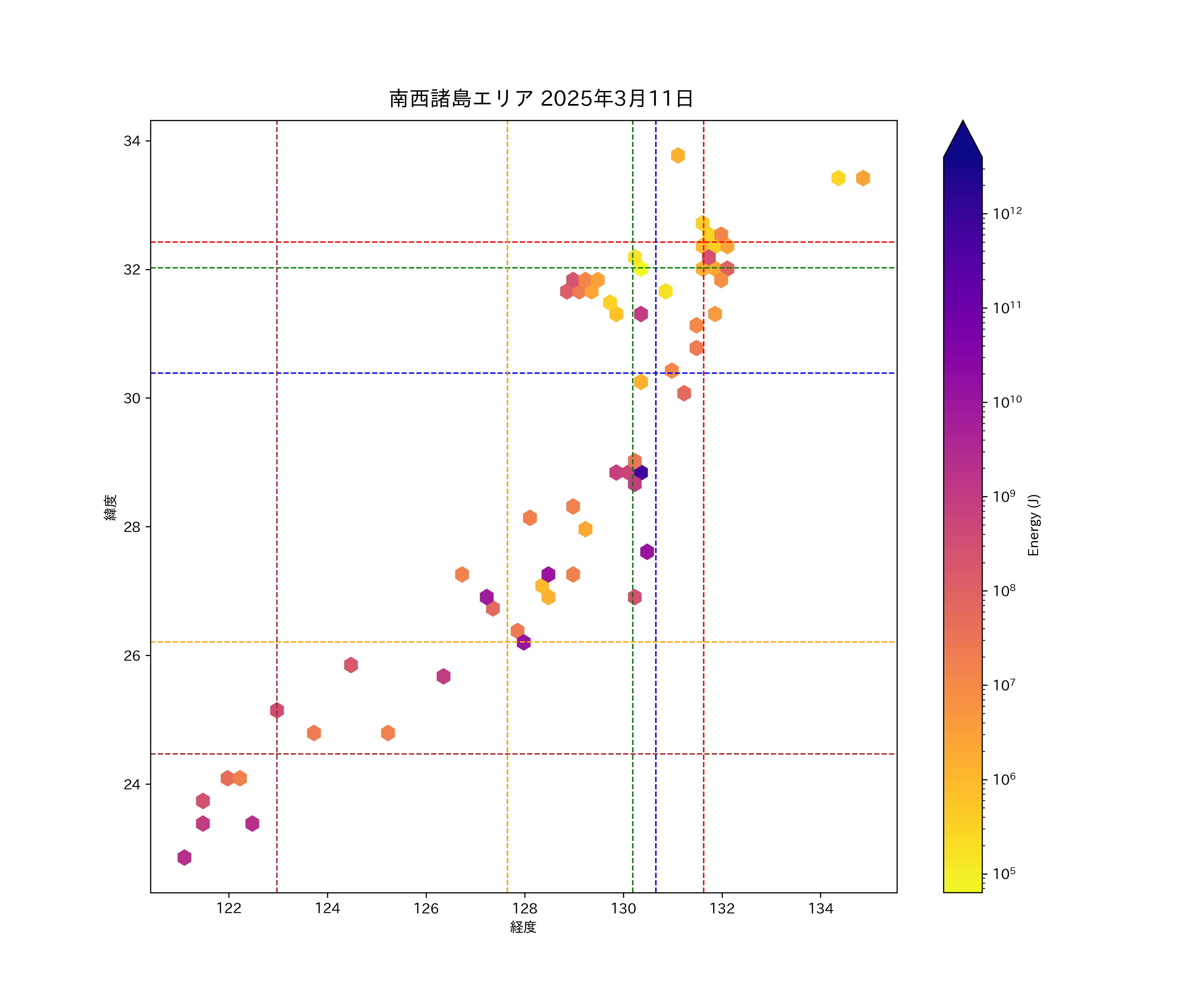 2025年03月11日南西諸島エリア震源マップ