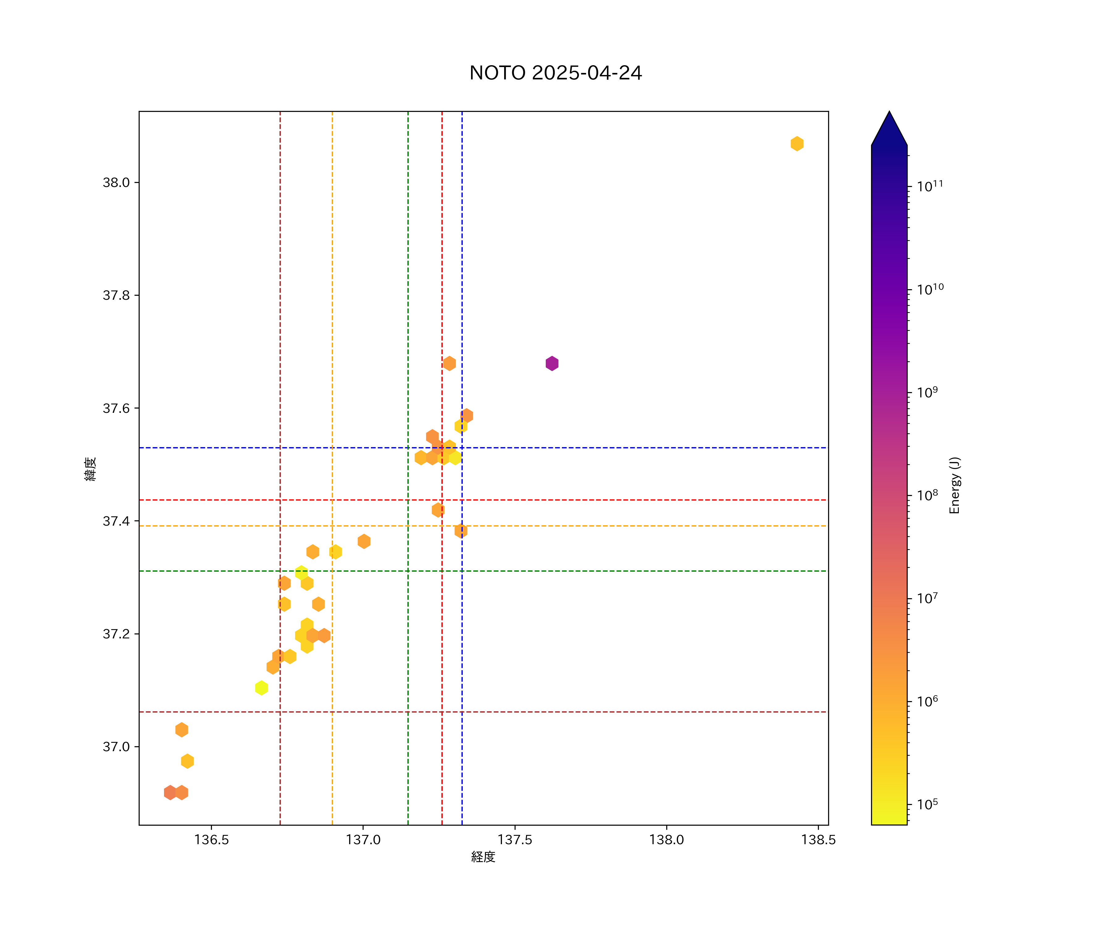 2025年04月24日能登エリア震源マップ