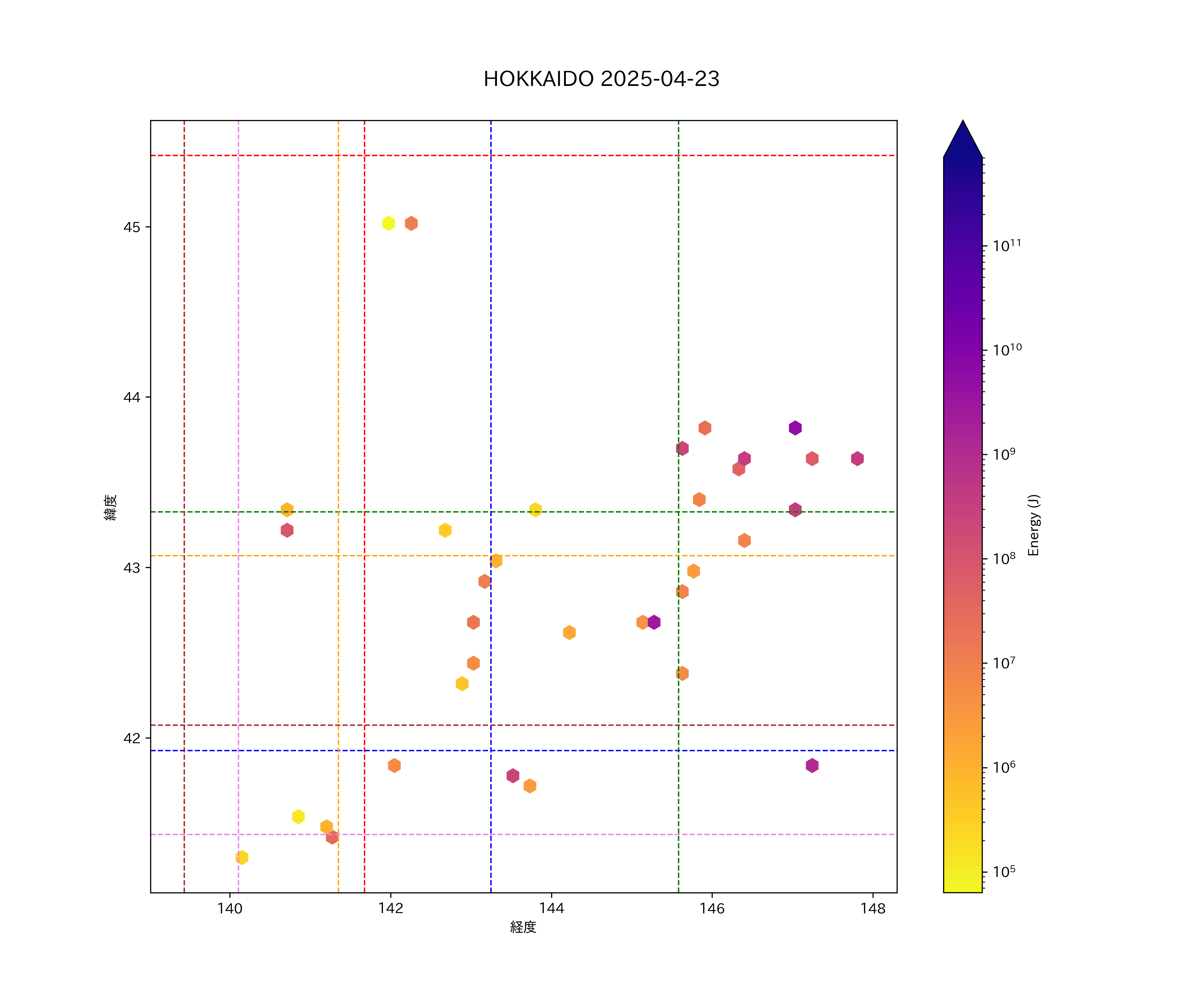 2025年04月23日北海道エリア震源マップ
