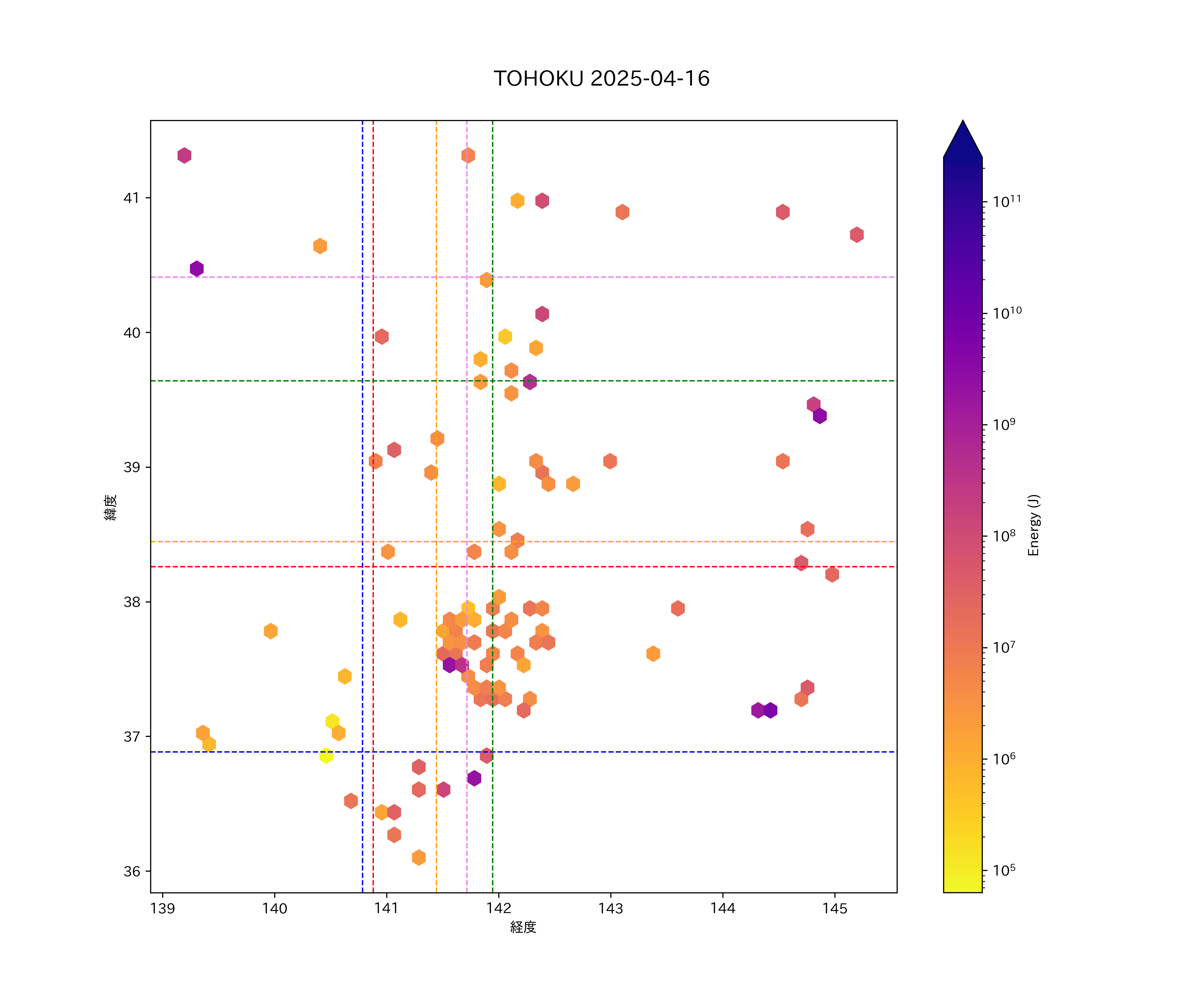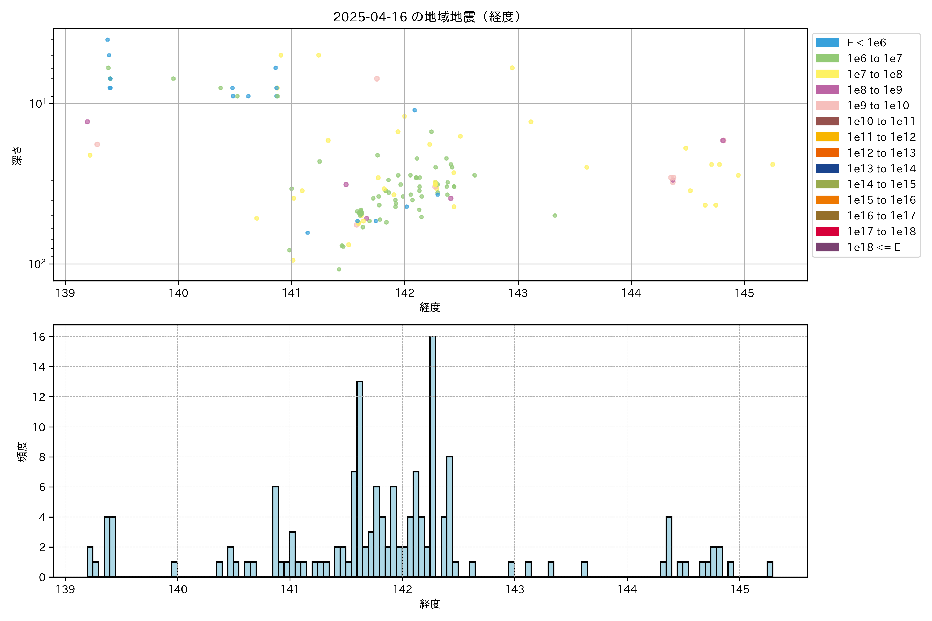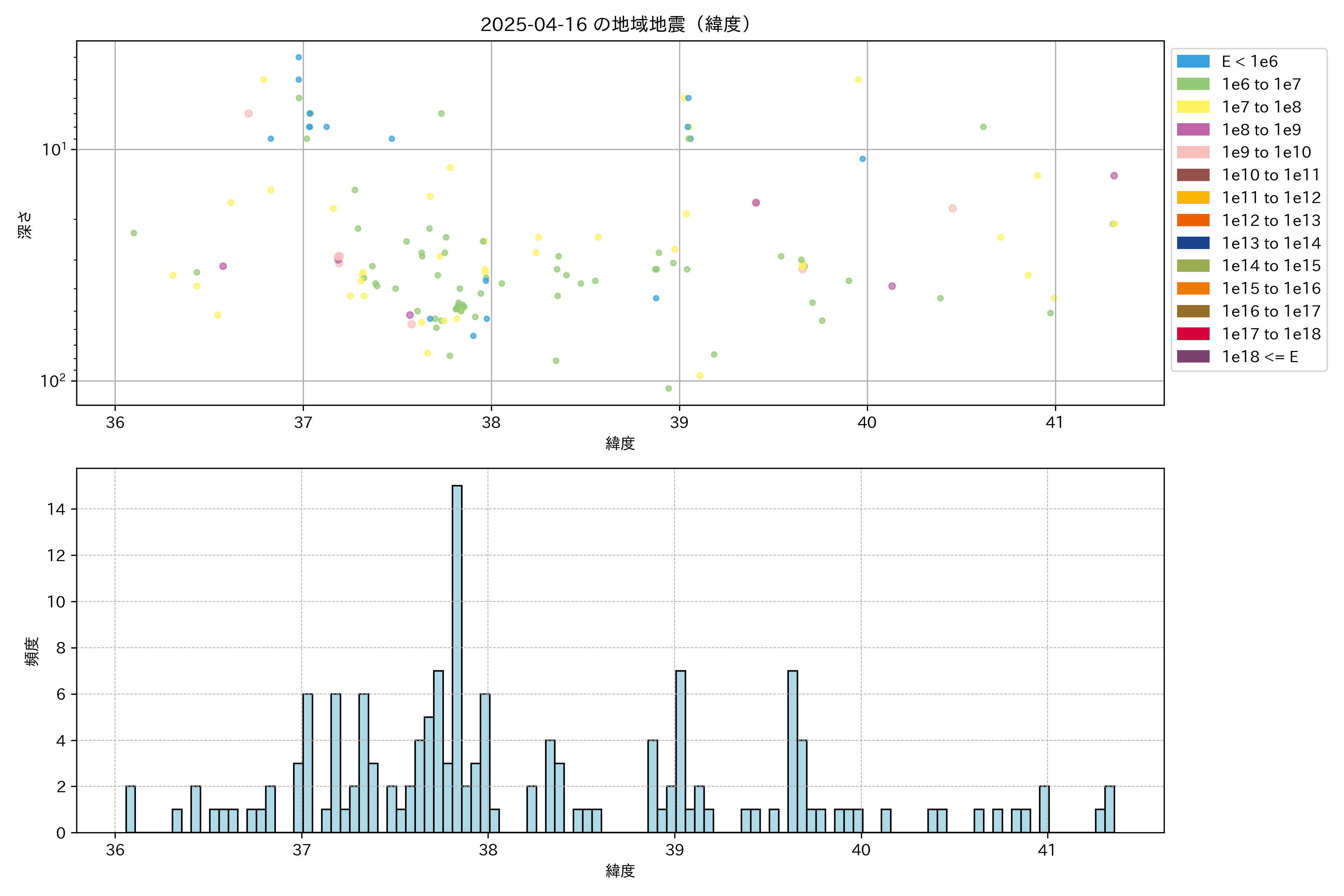 2025年04月16日東北太平洋側エリア震源マップ