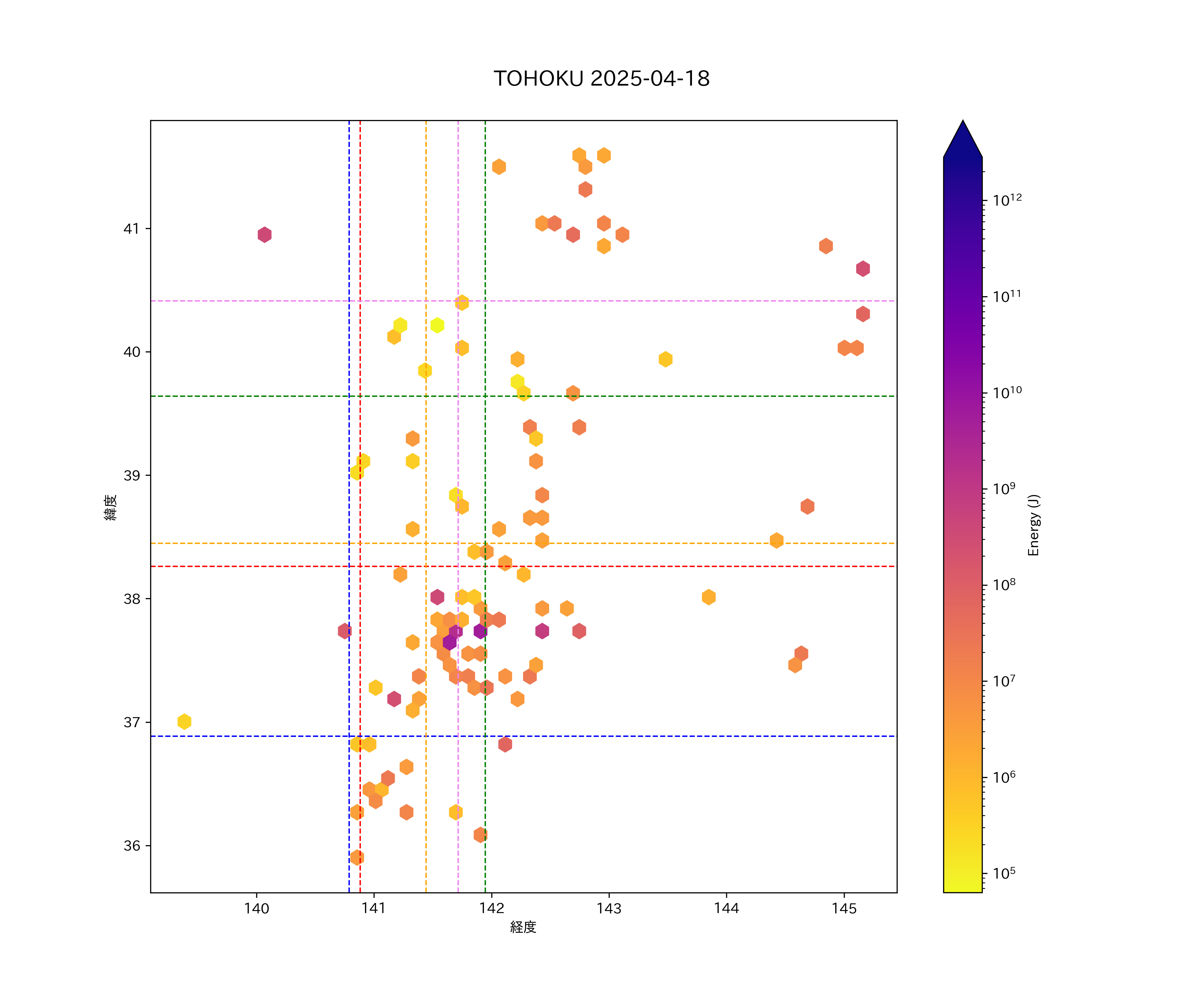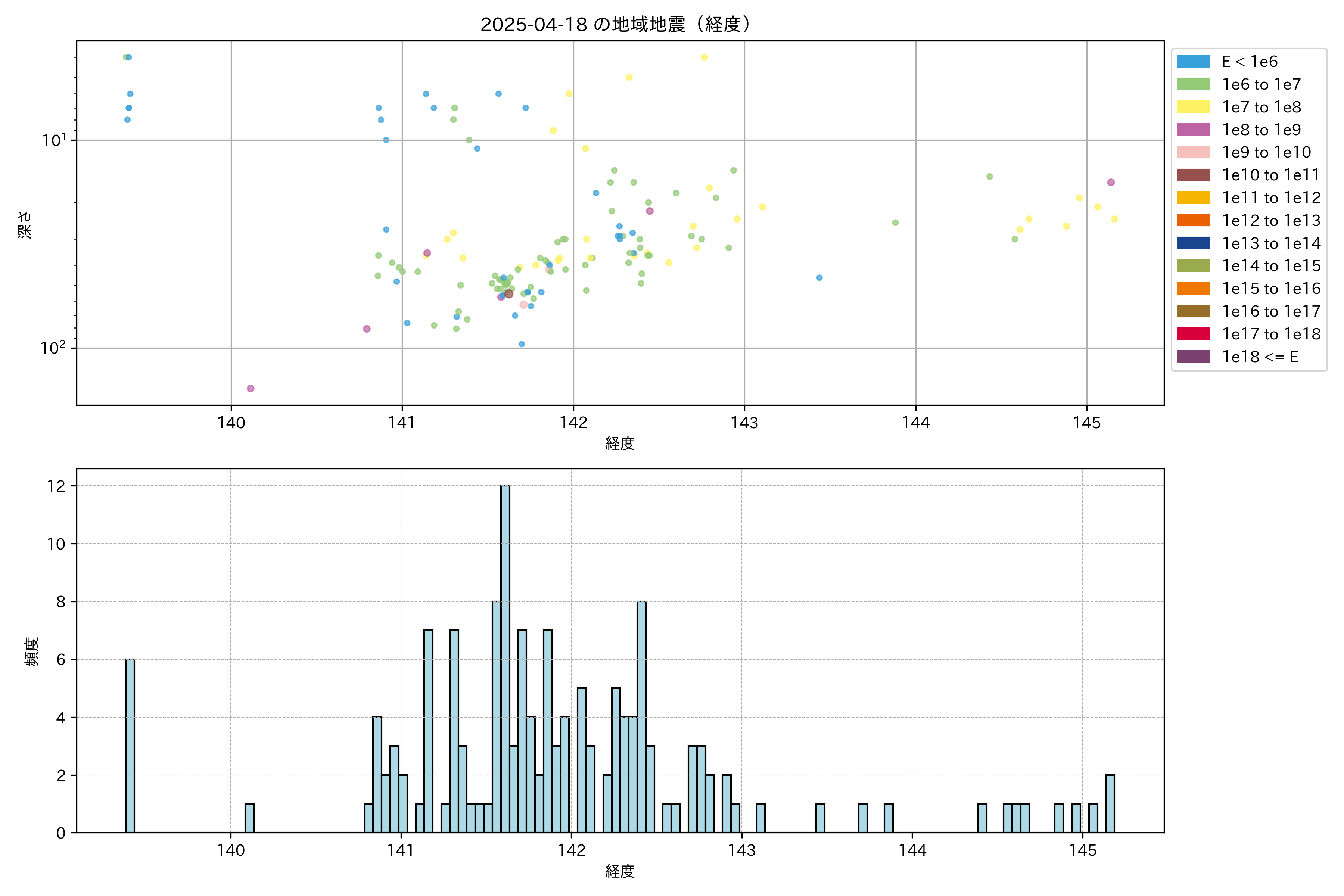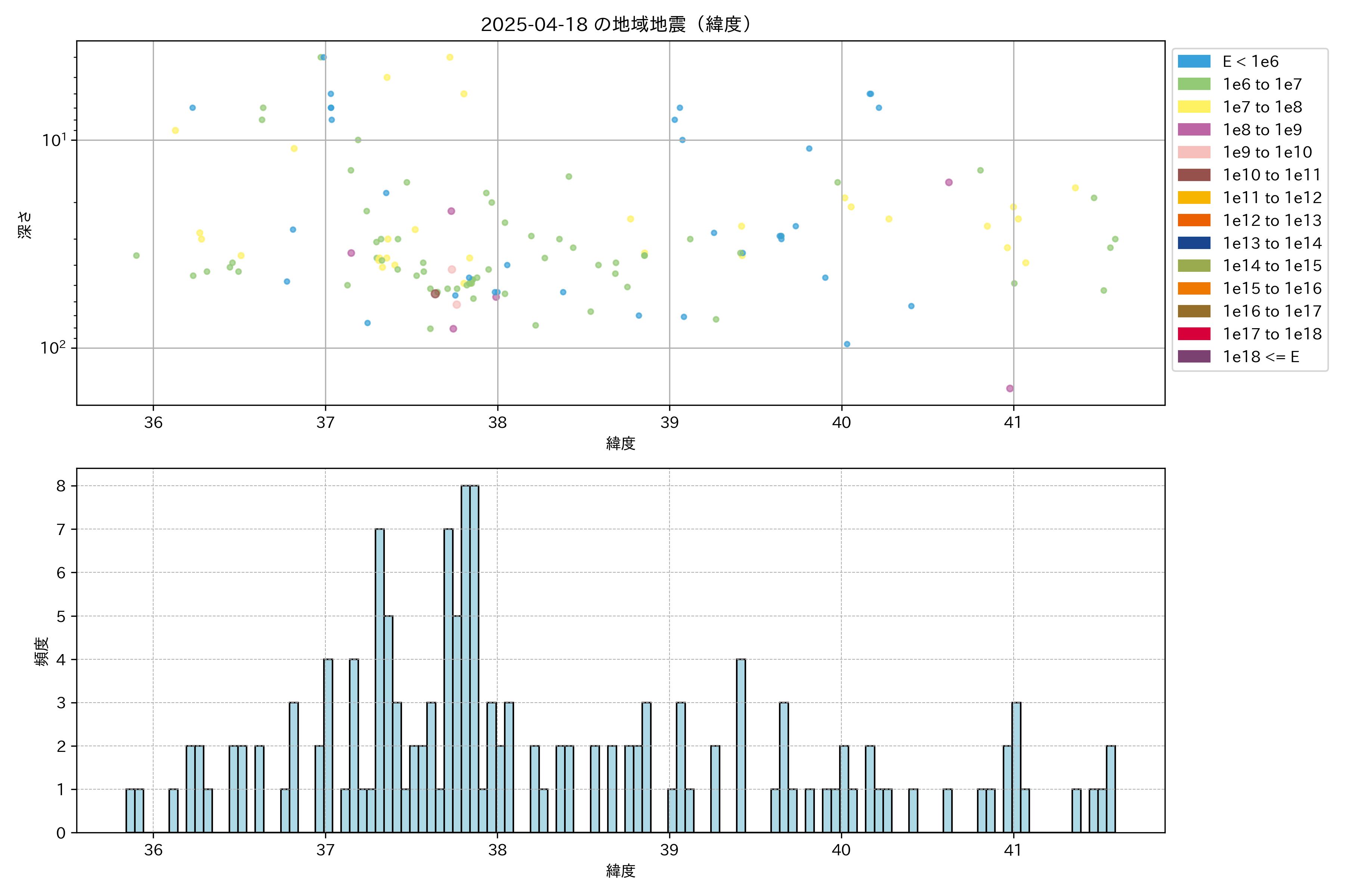 2025年04月18日東北太平洋側エリア震源マップ