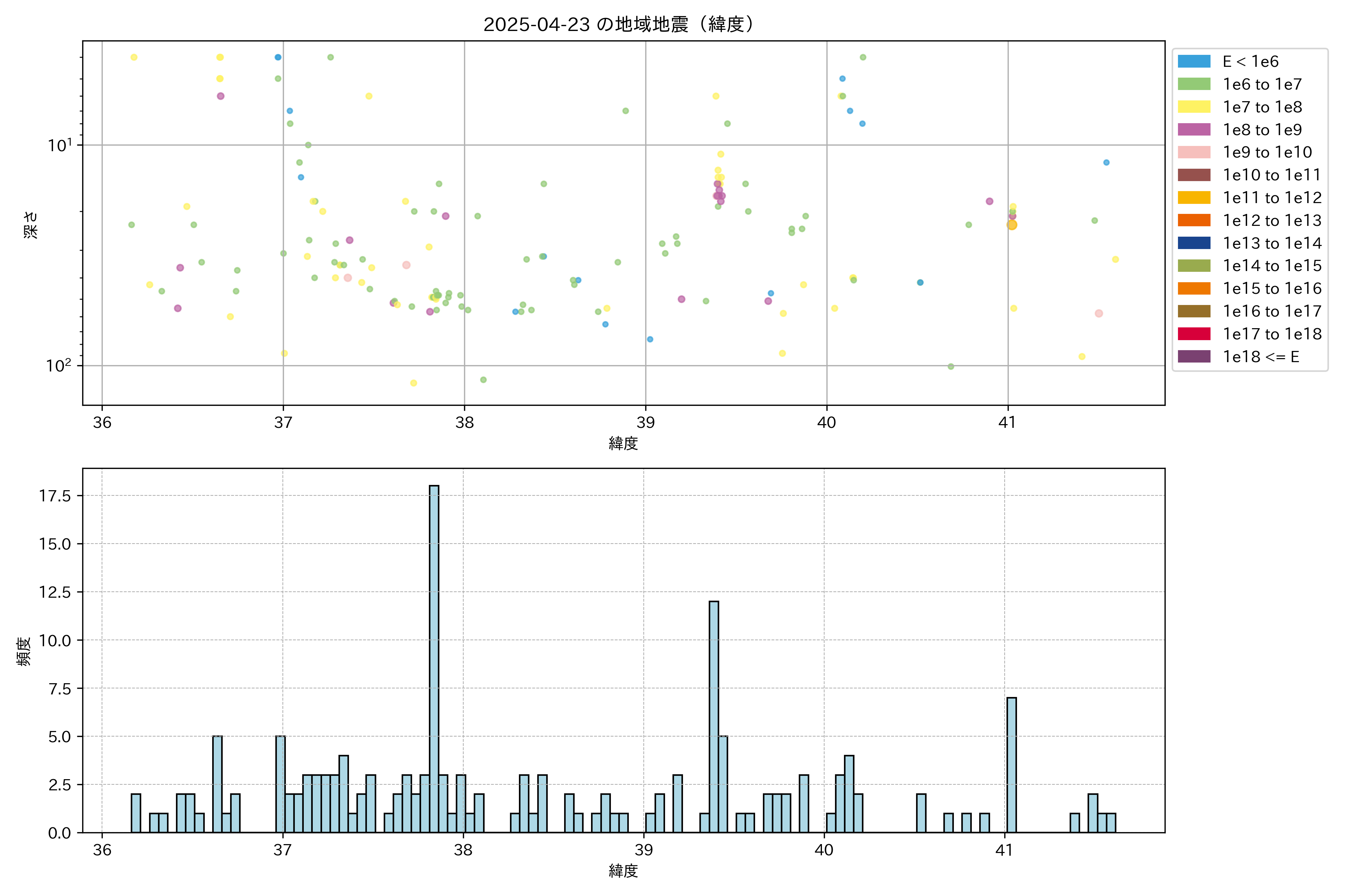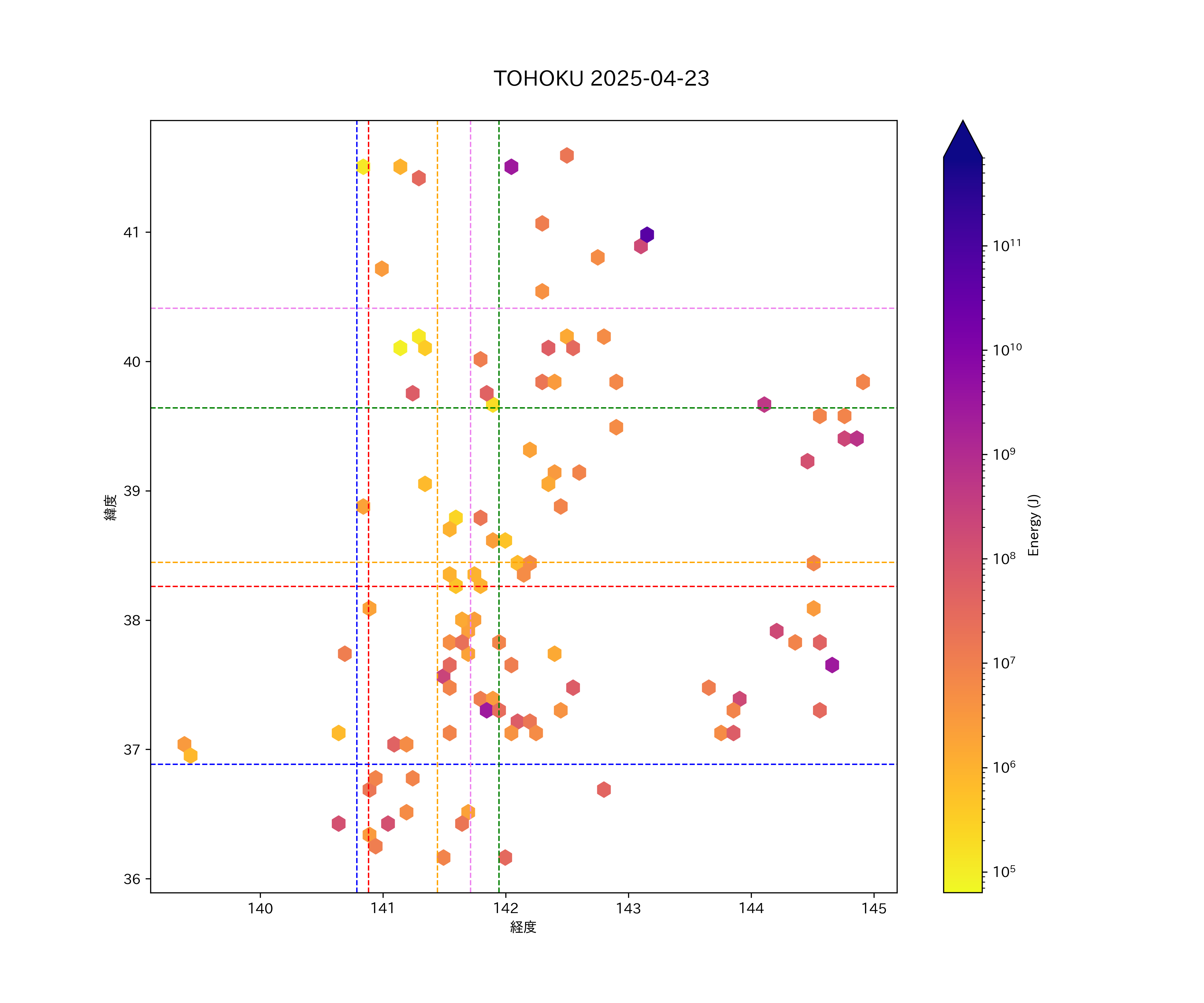 2025年04月23日東北太平洋側エリア震源マップ