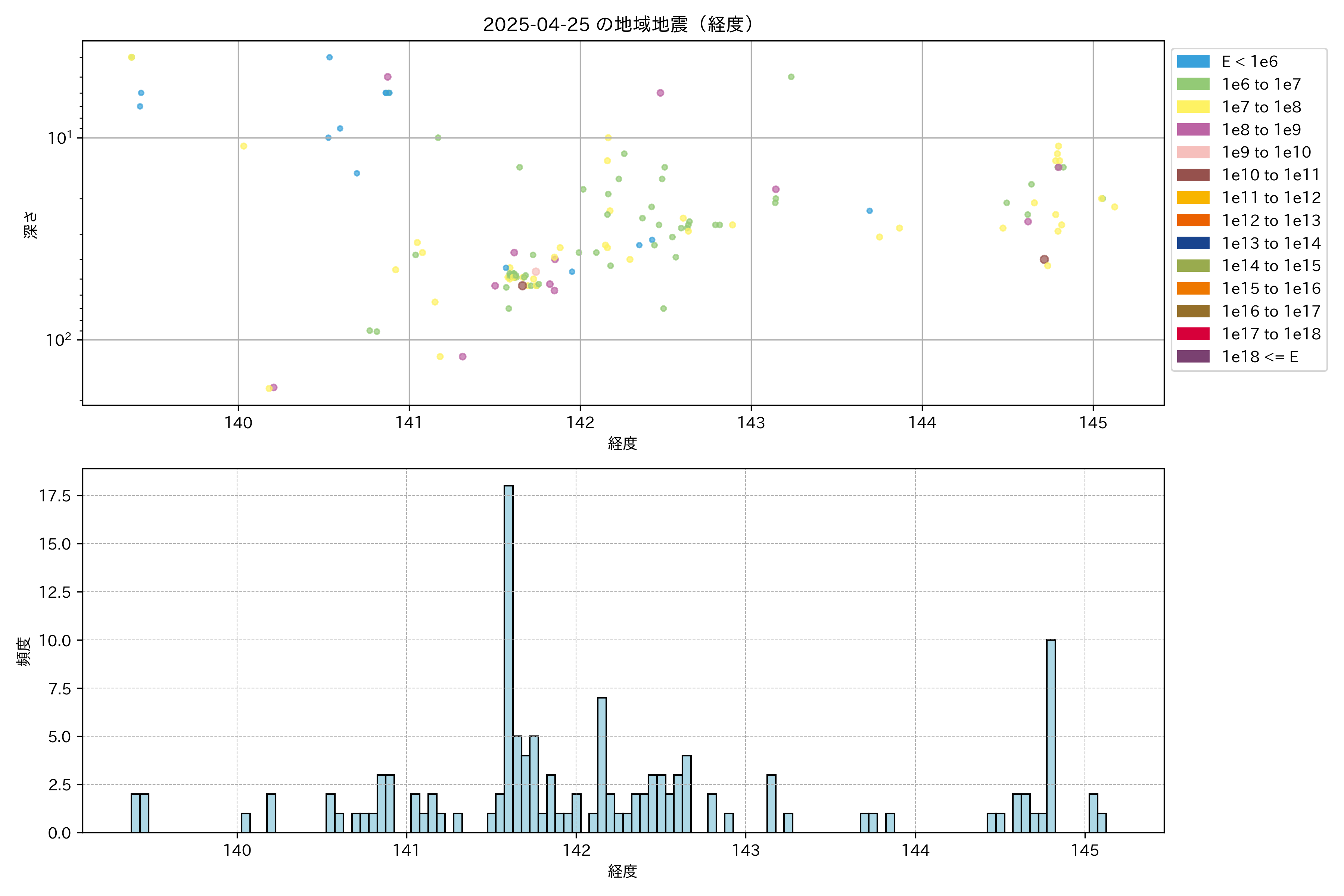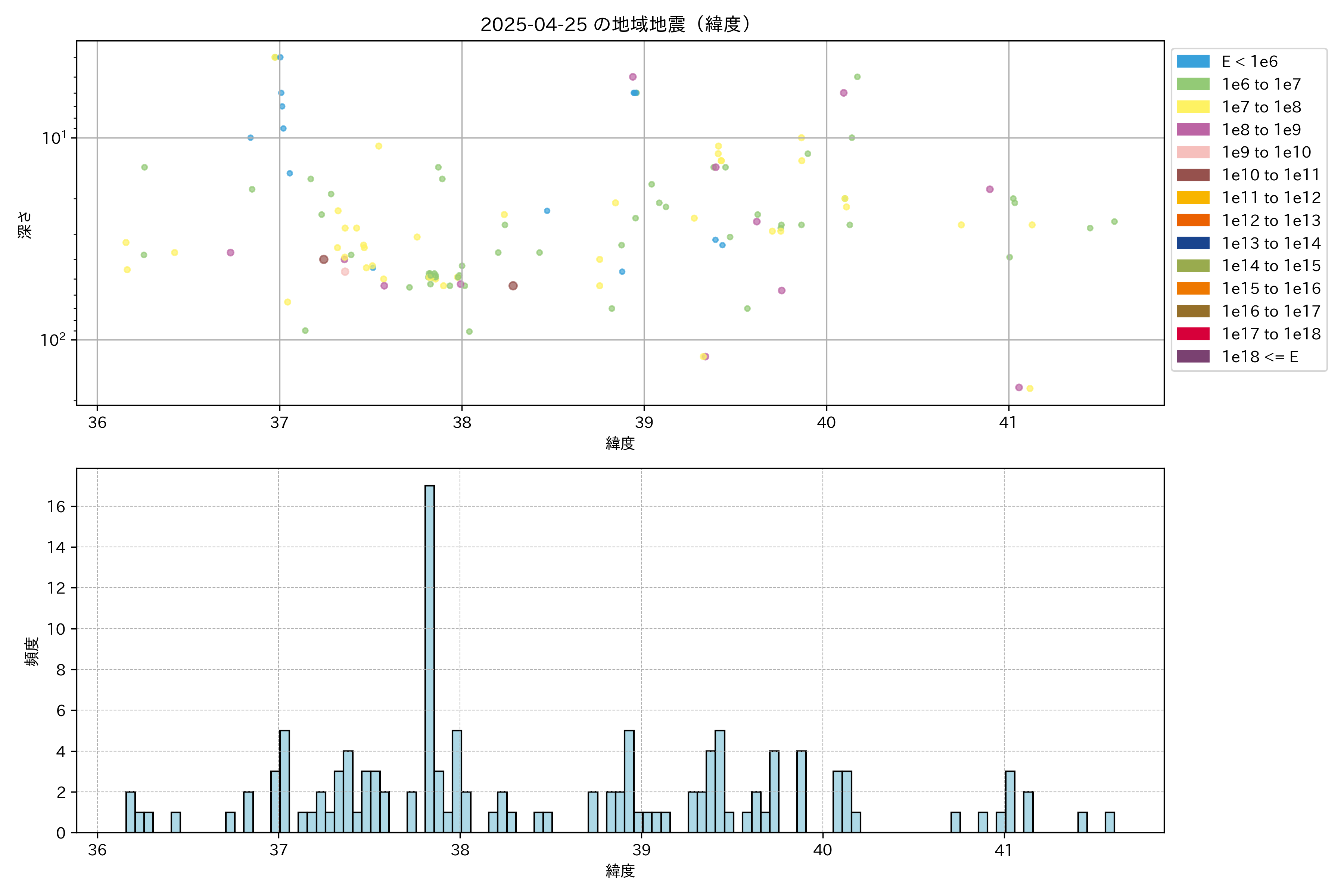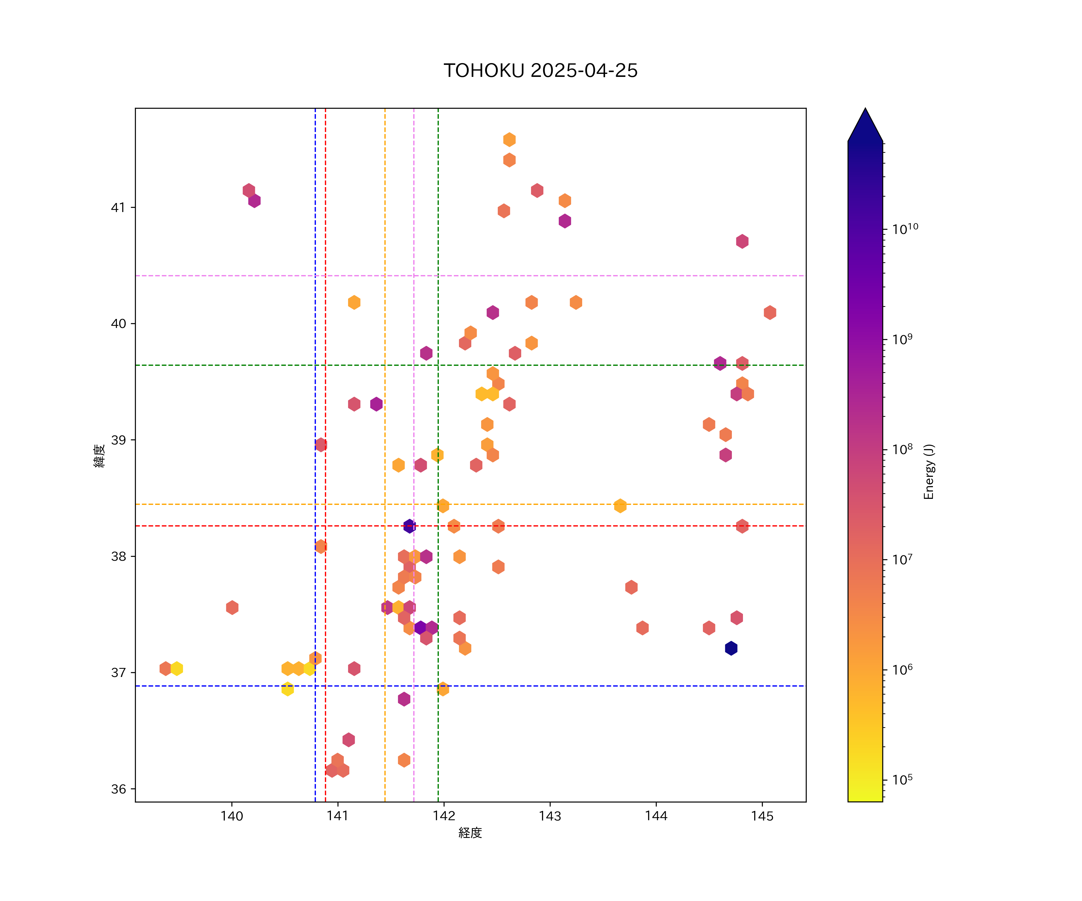 2025年04月25日東北太平洋側エリア震源マップ