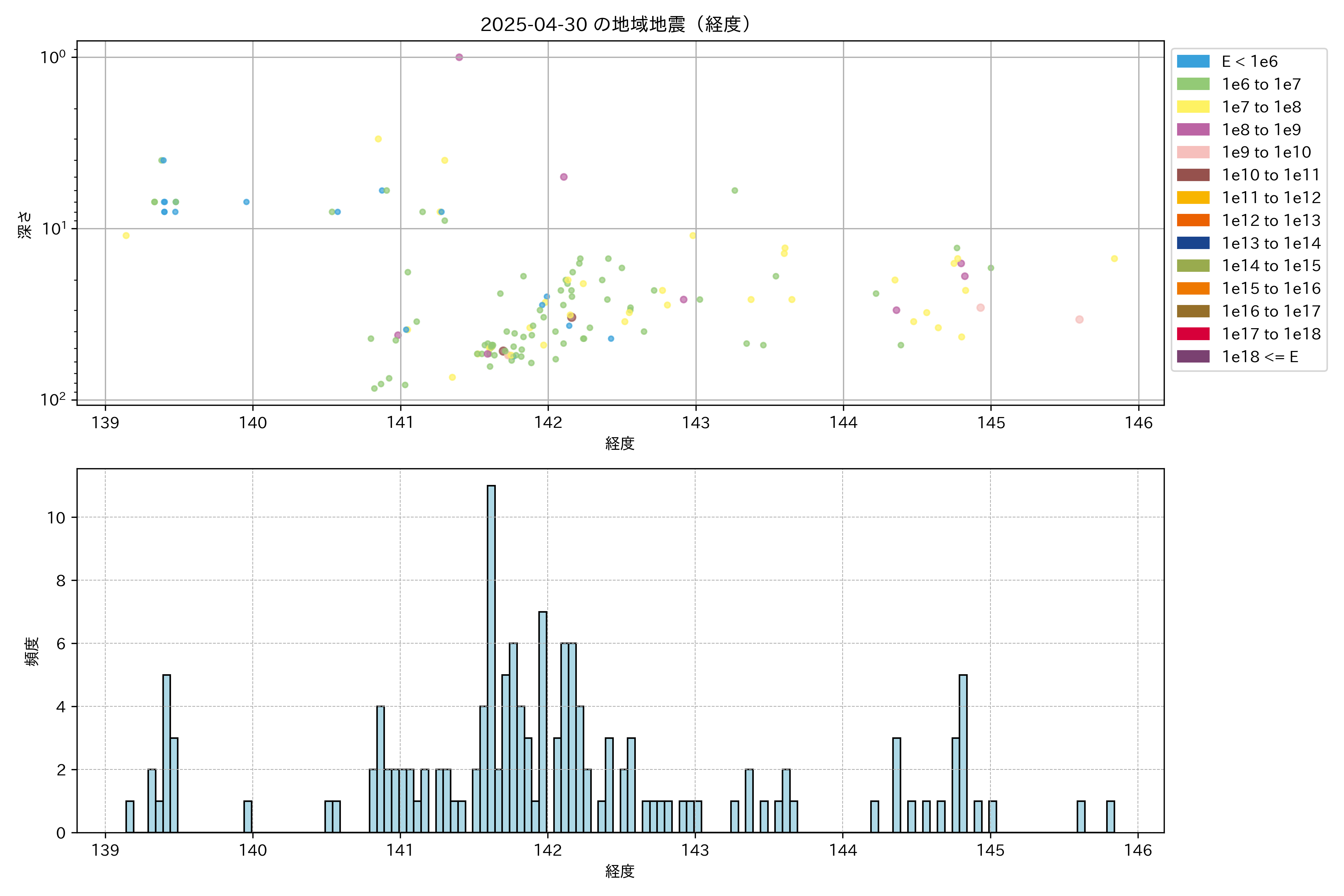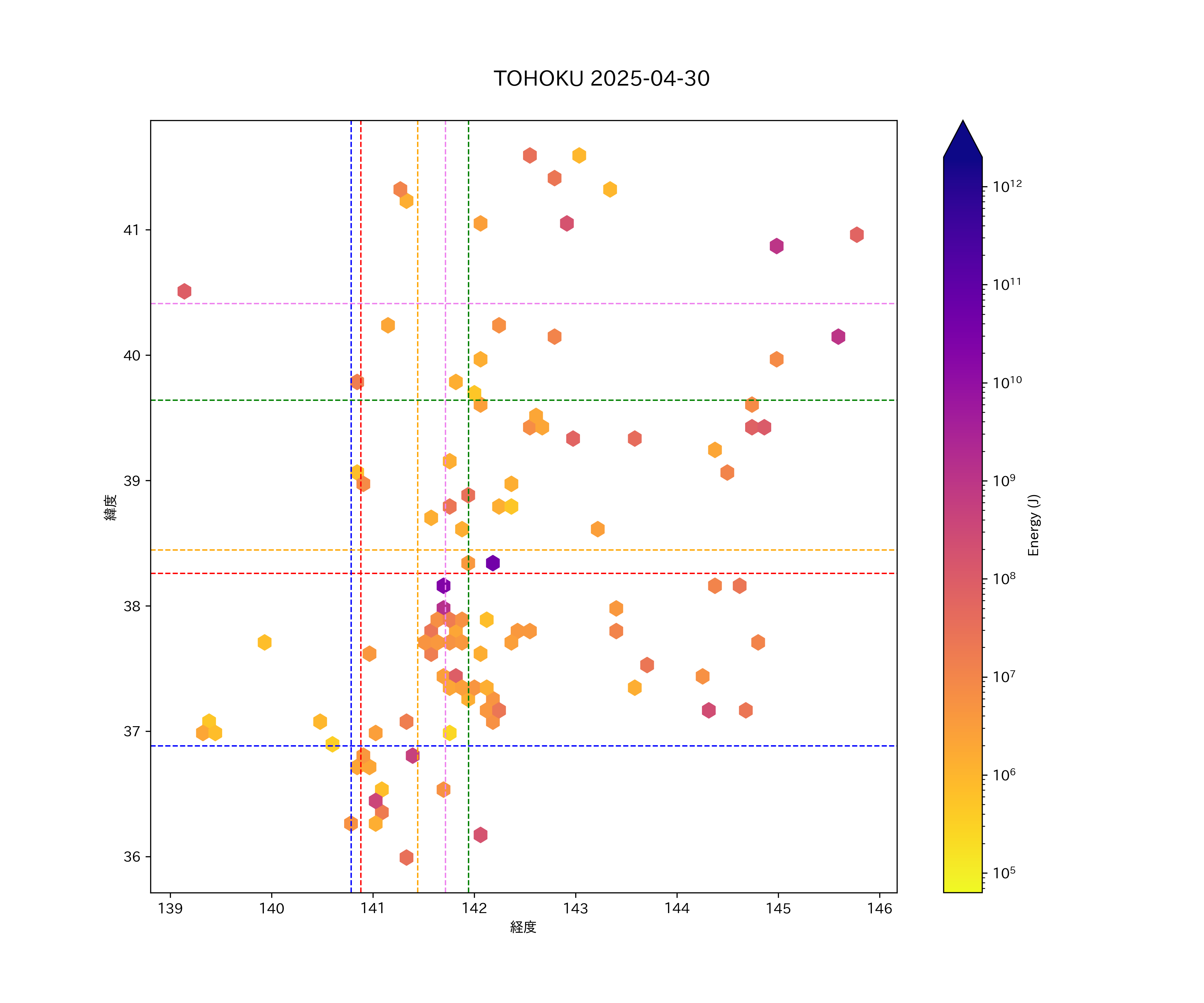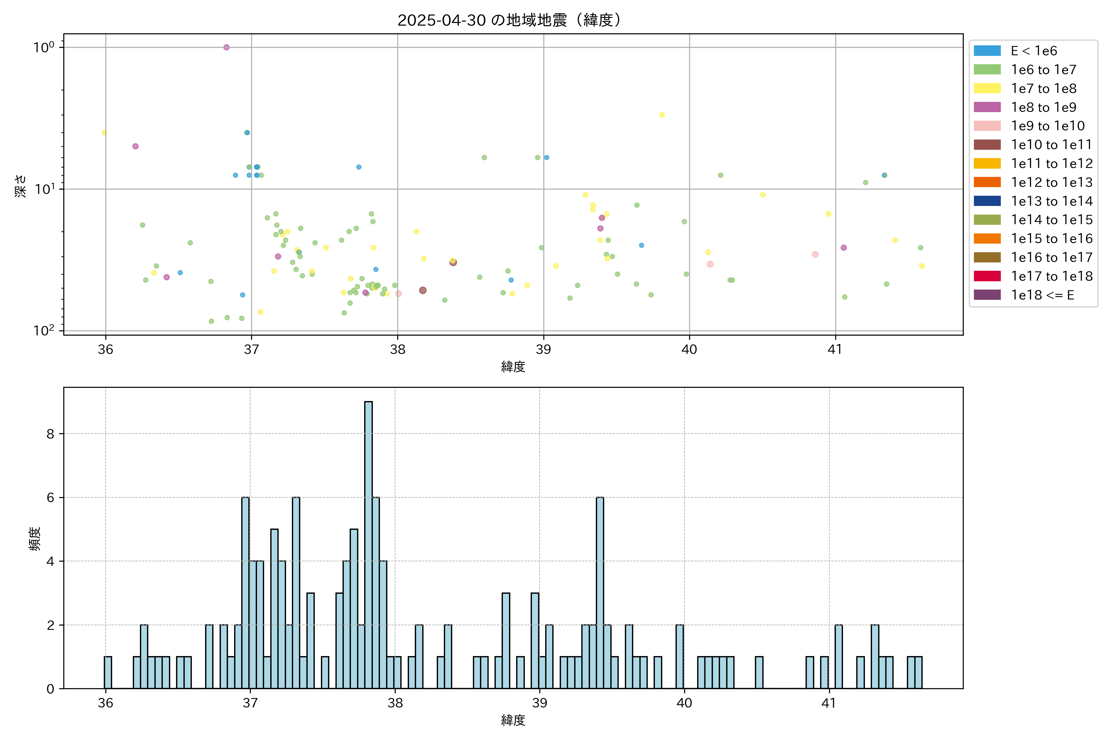 2025年04月30日東北太平洋側エリア震源マップ