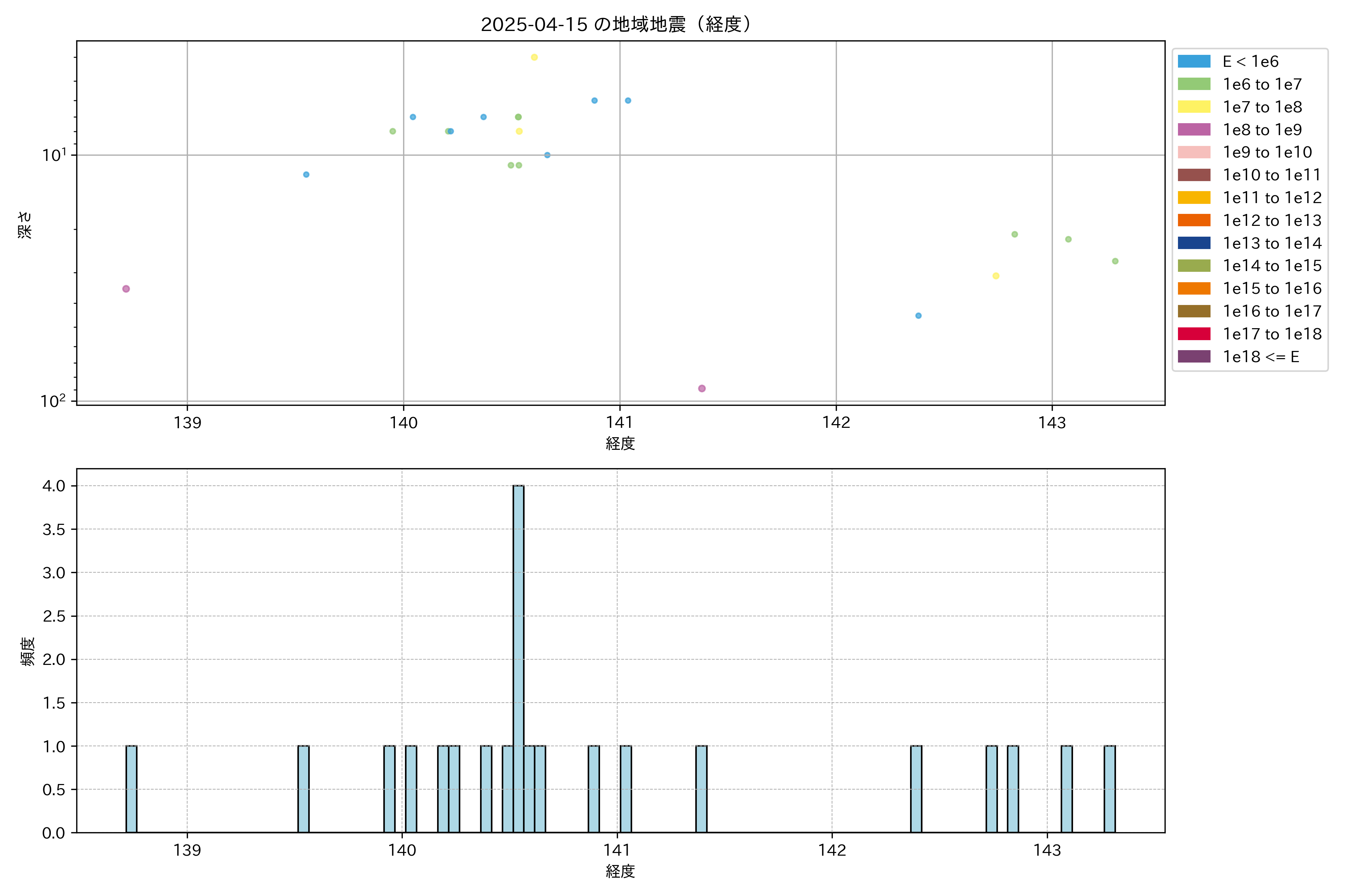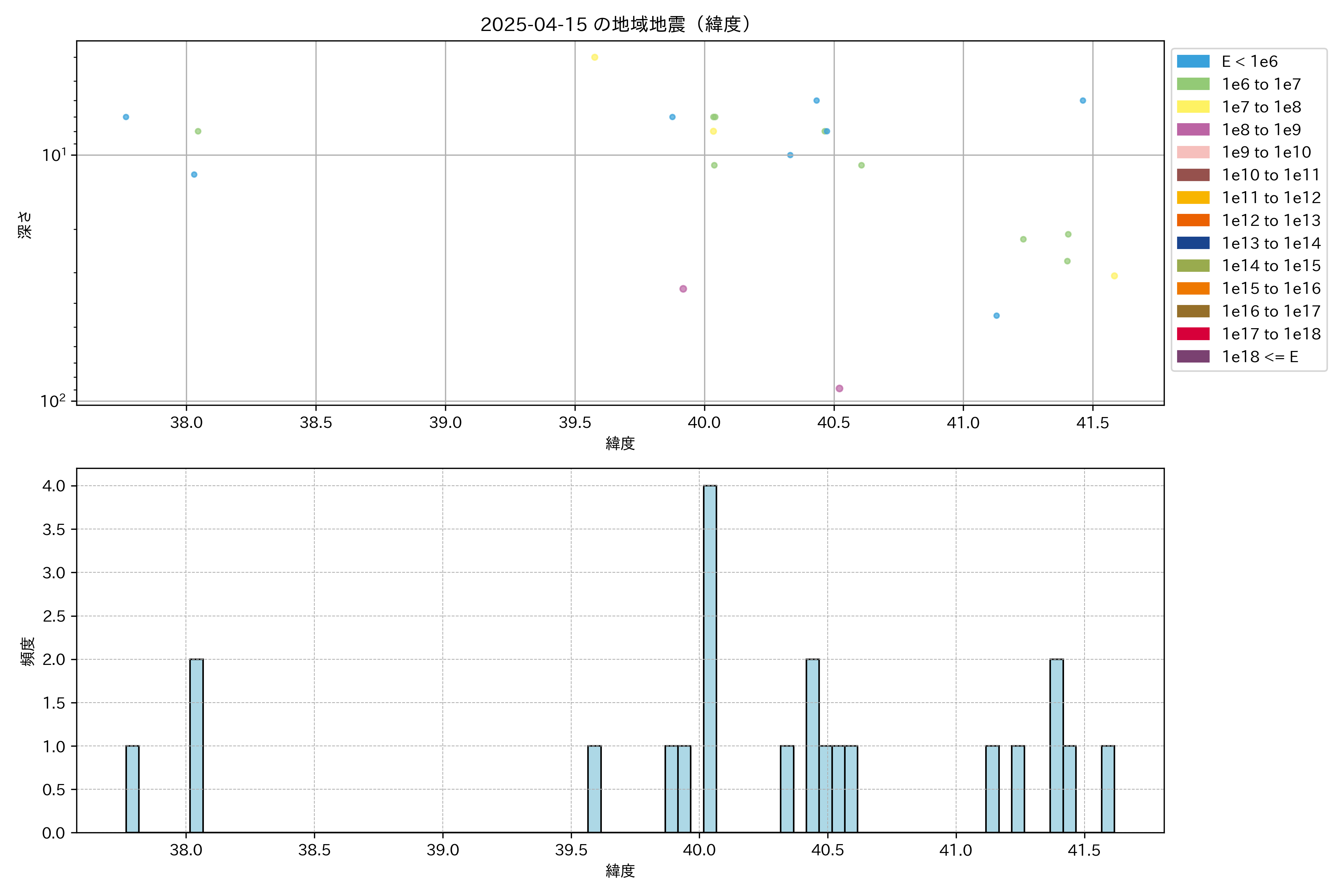 2025年04月15日東北日本海側エリア震源マップ