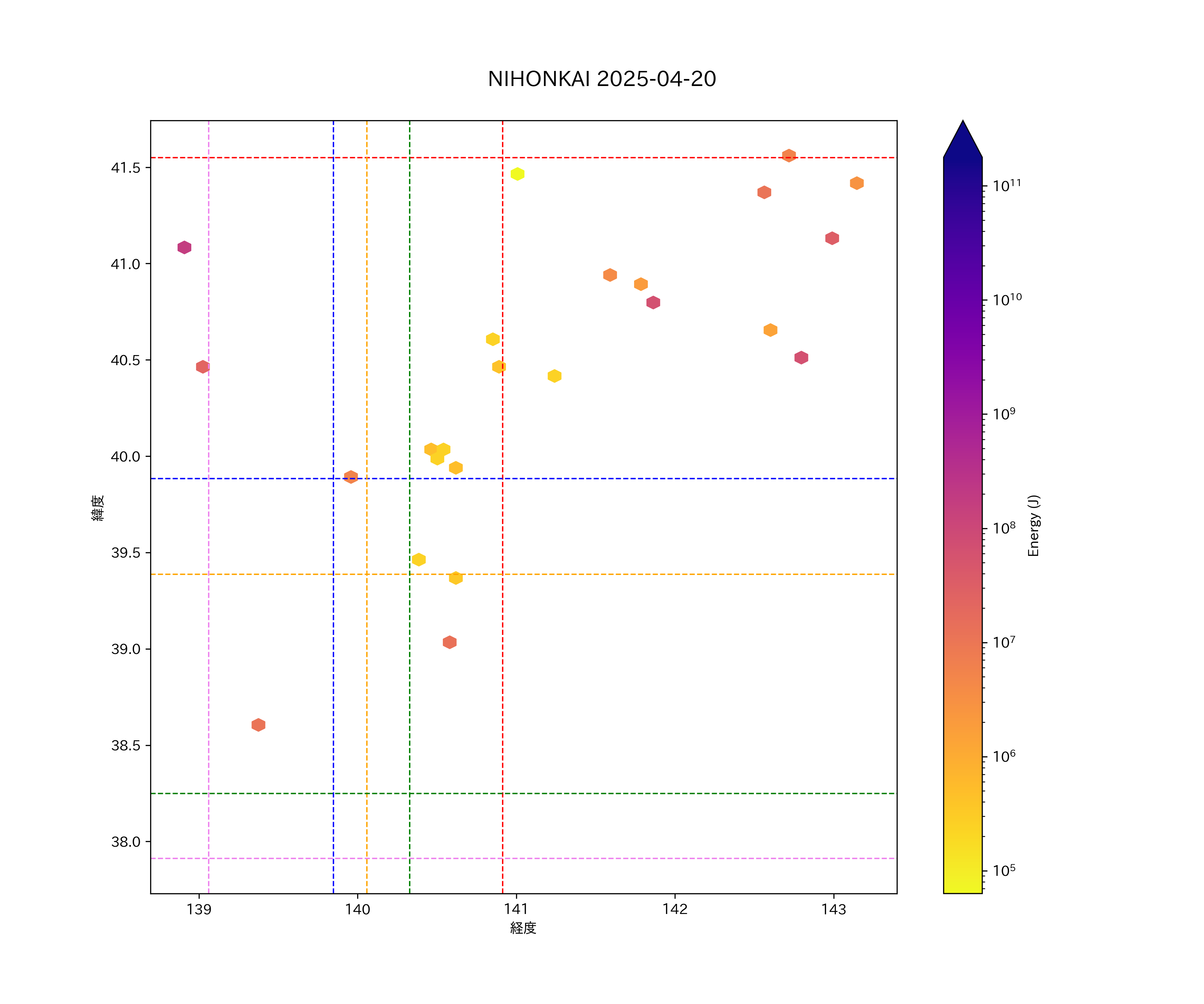 2025年04月20日東北日本海側エリア震源マップ