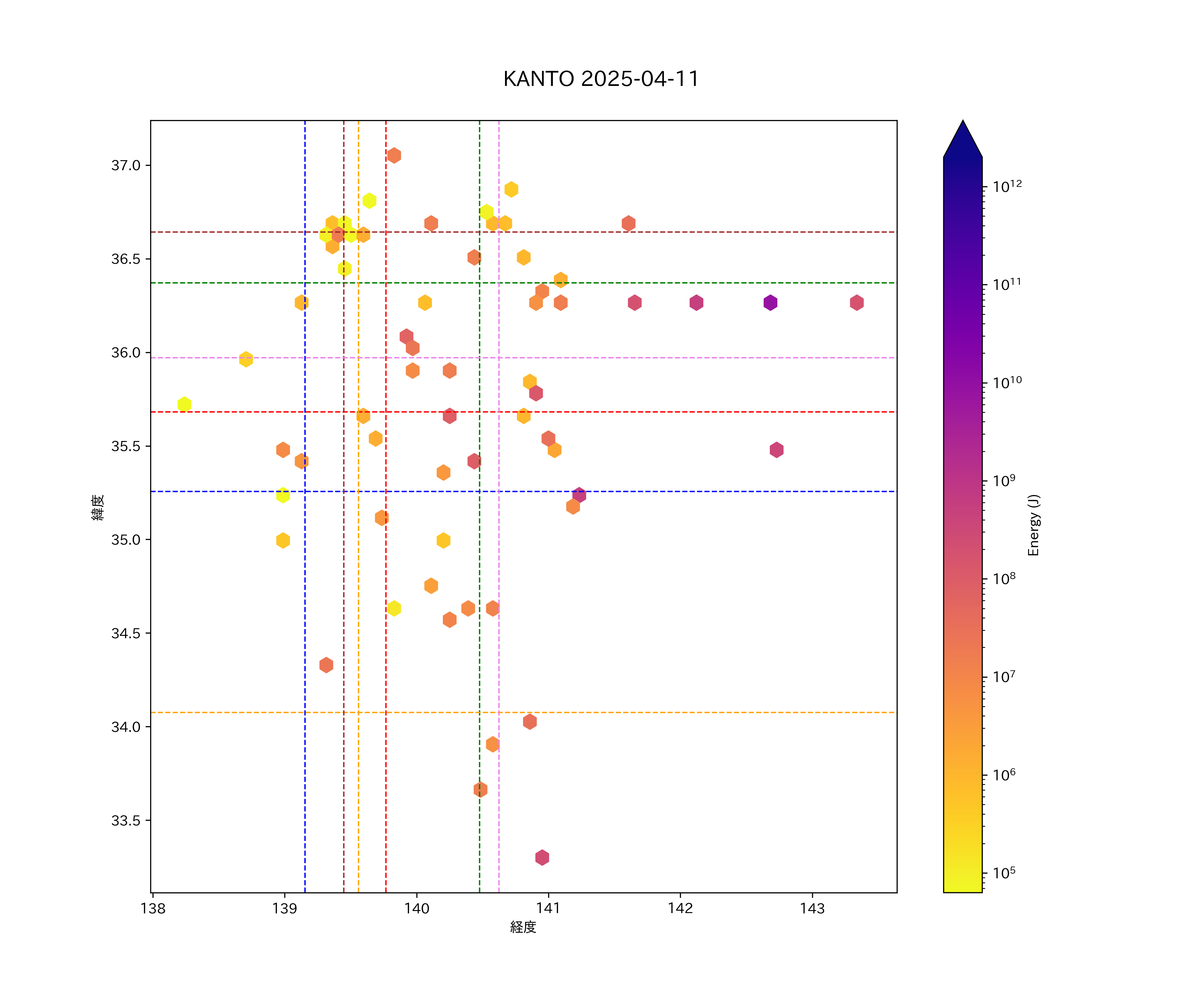 2025年04月11日関東エリア震源マップ