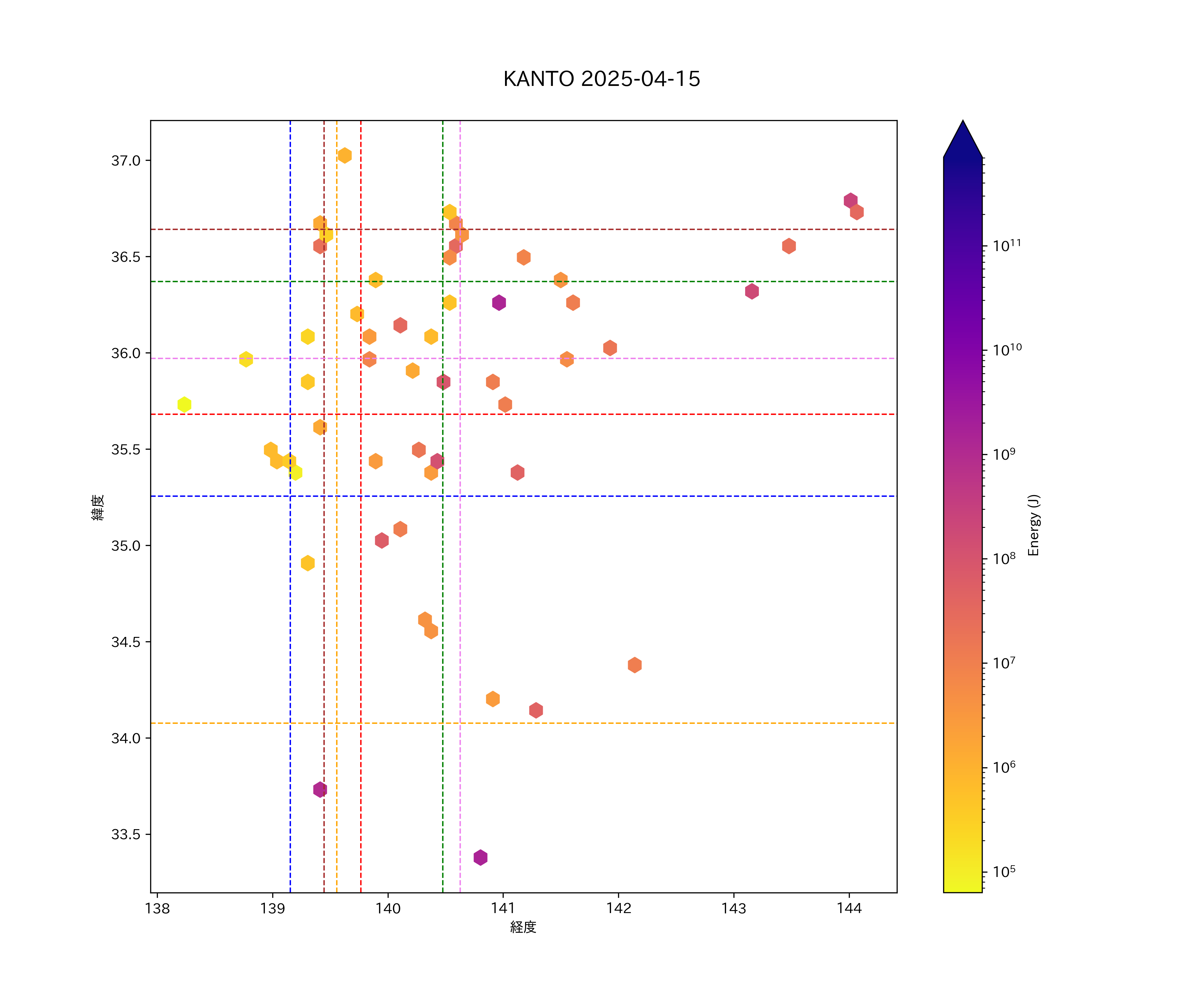 2025年04月15日関東エリア震源マップ