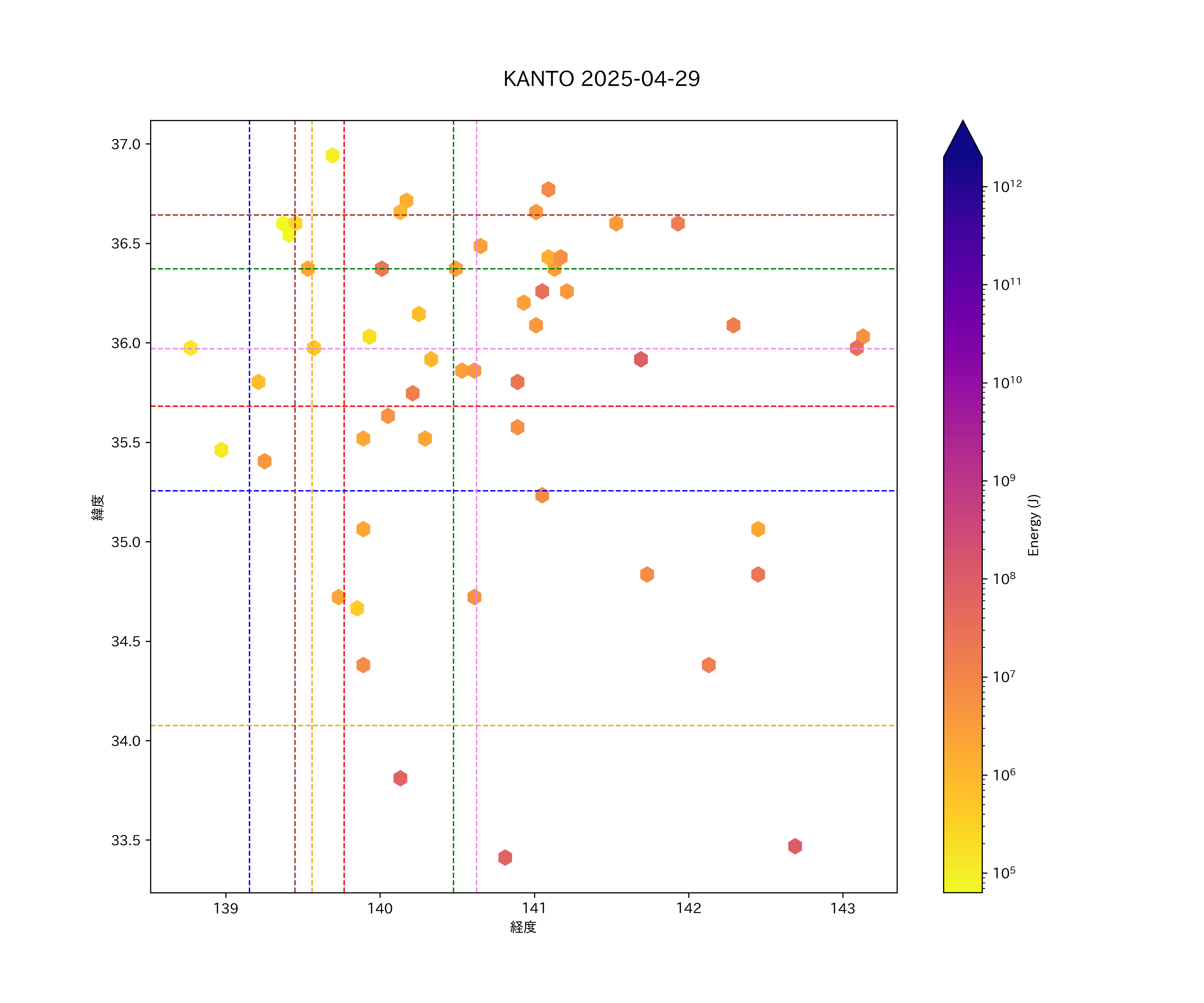 2025年04月29日関東エリア震源マップ