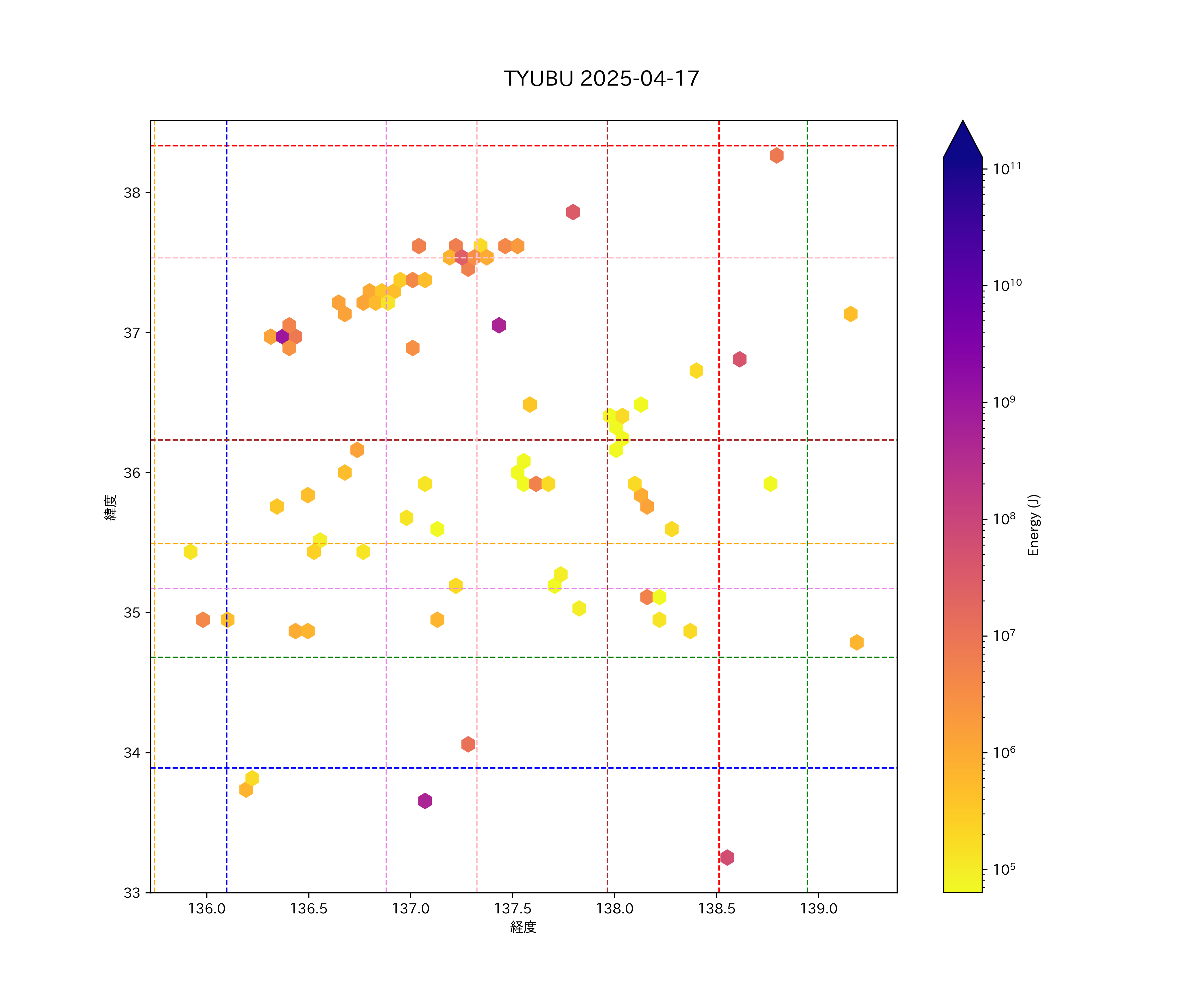 2025年04月17日中部エリア震源マップ