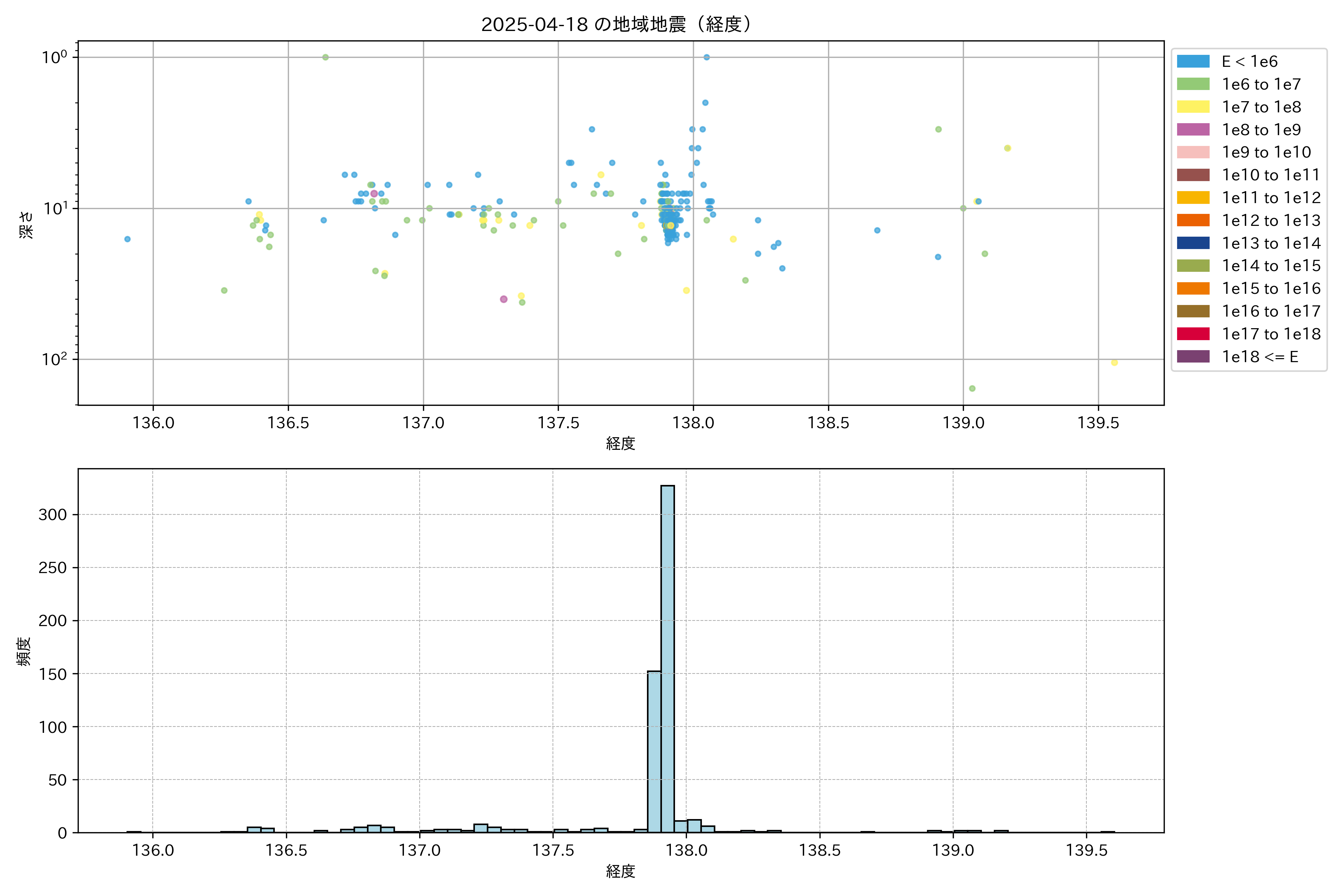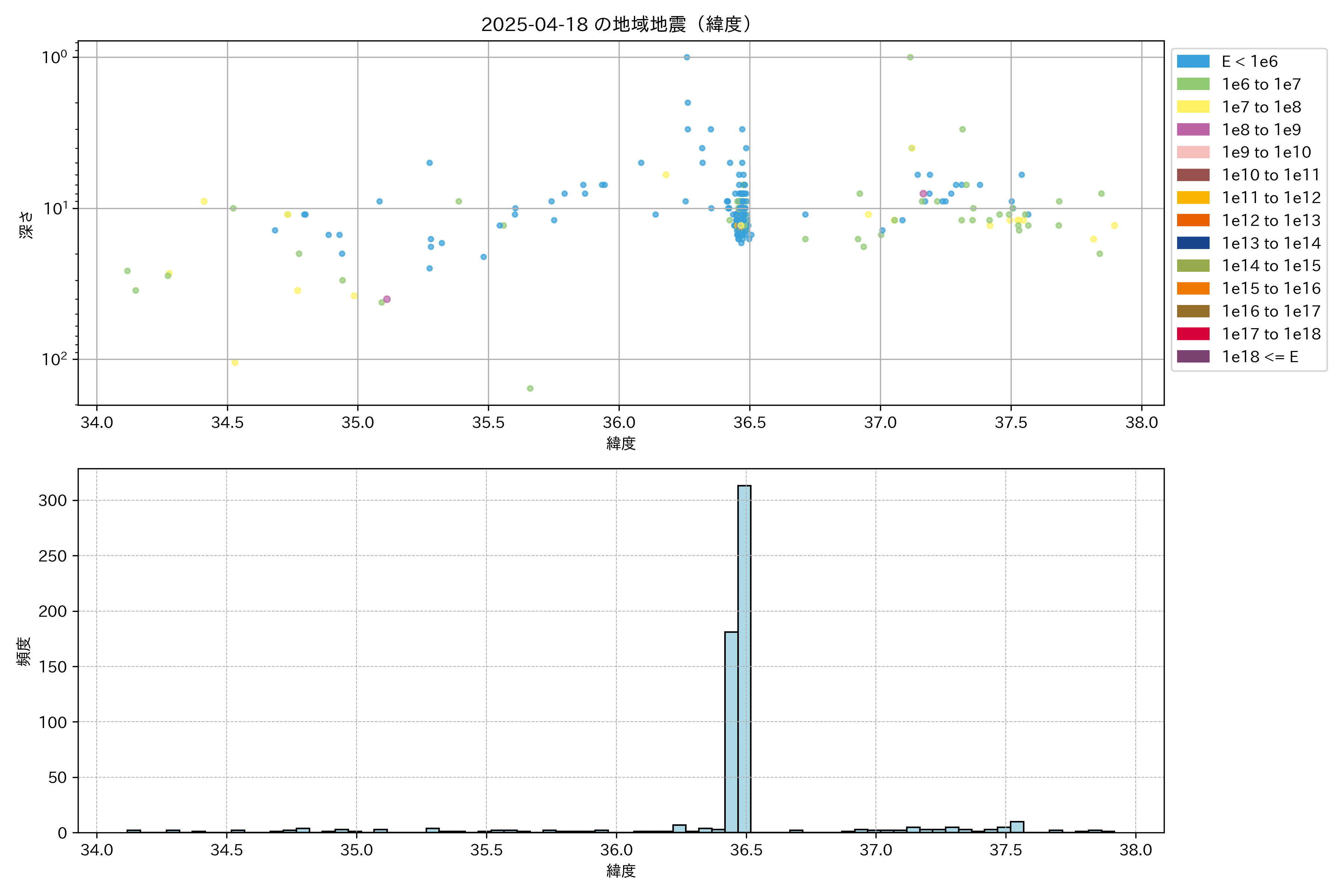 2025年04月18日中部エリア震源マップ