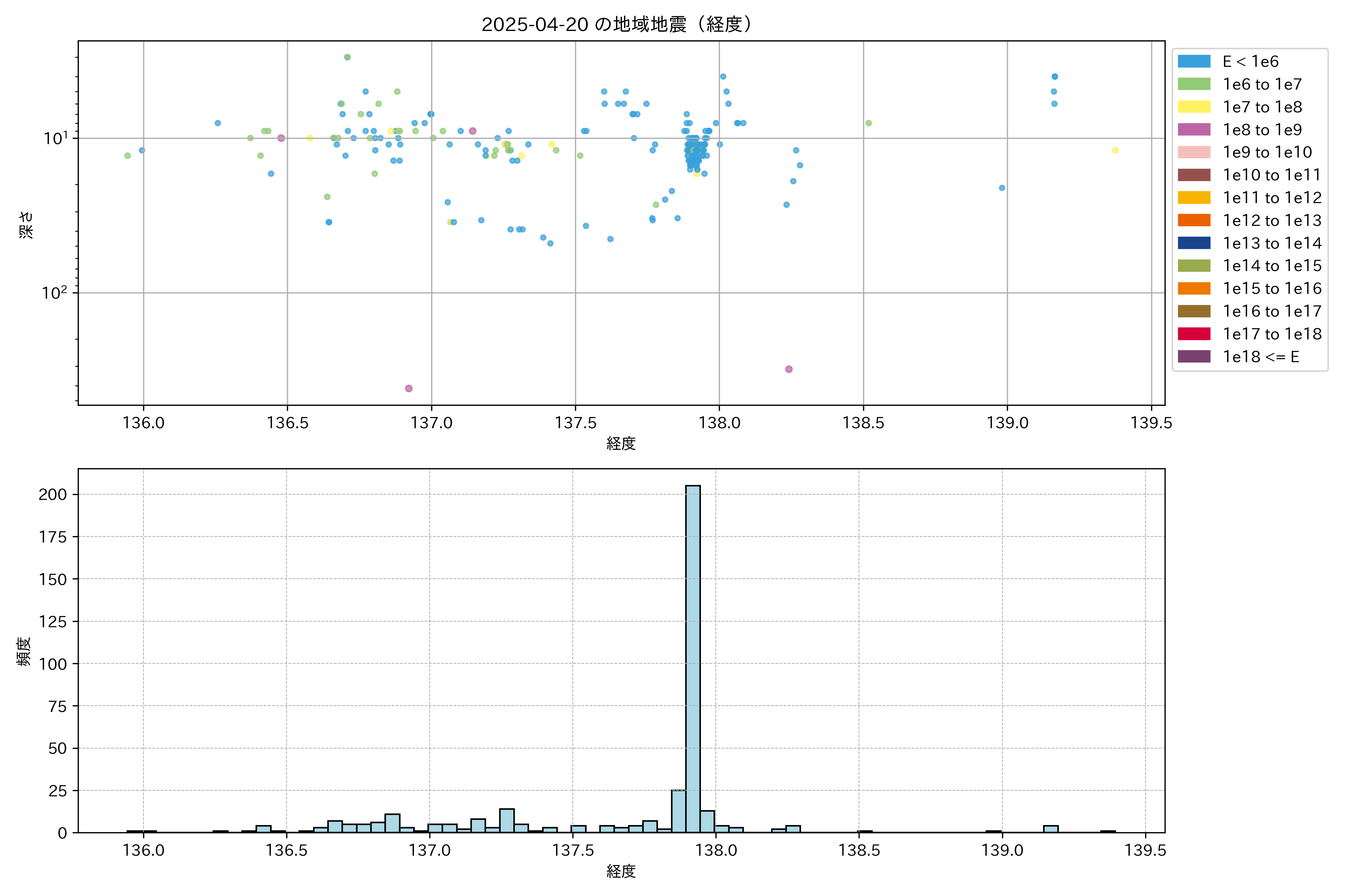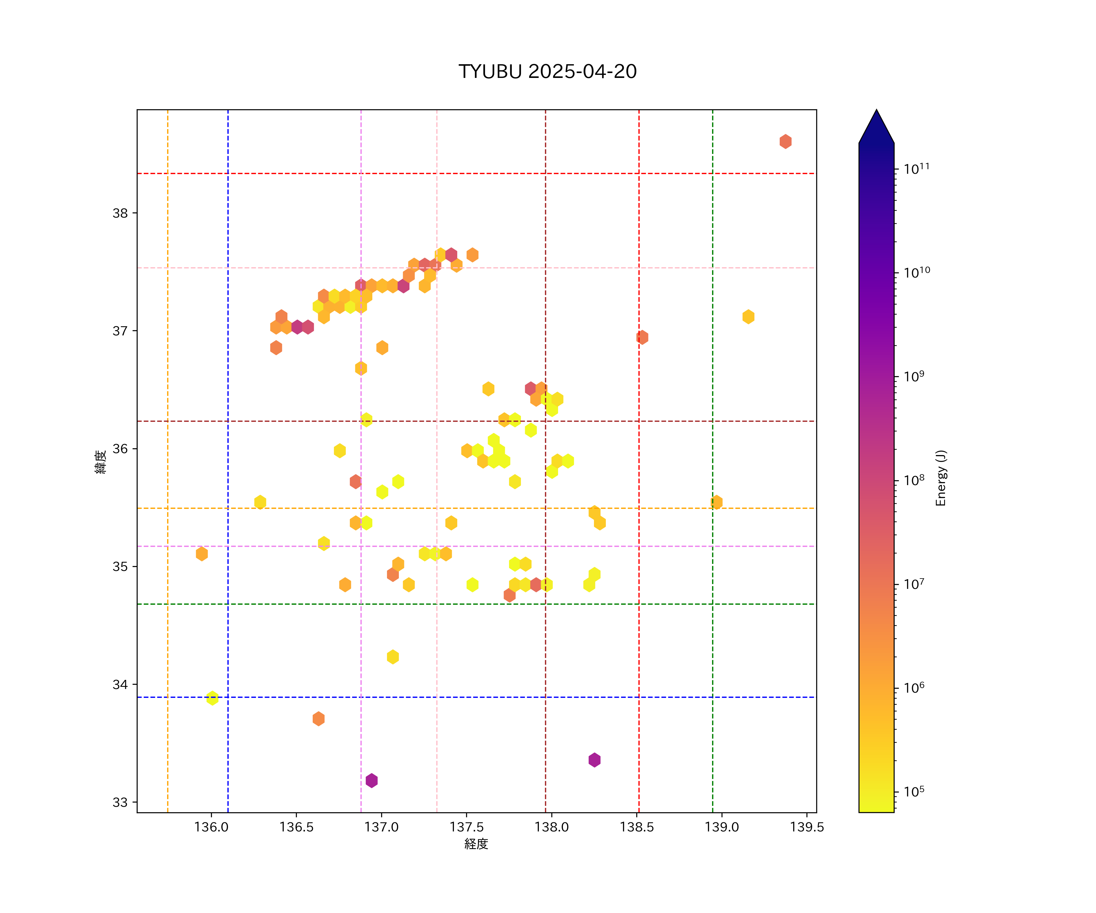 2025年04月20日中部エリア震源マップ