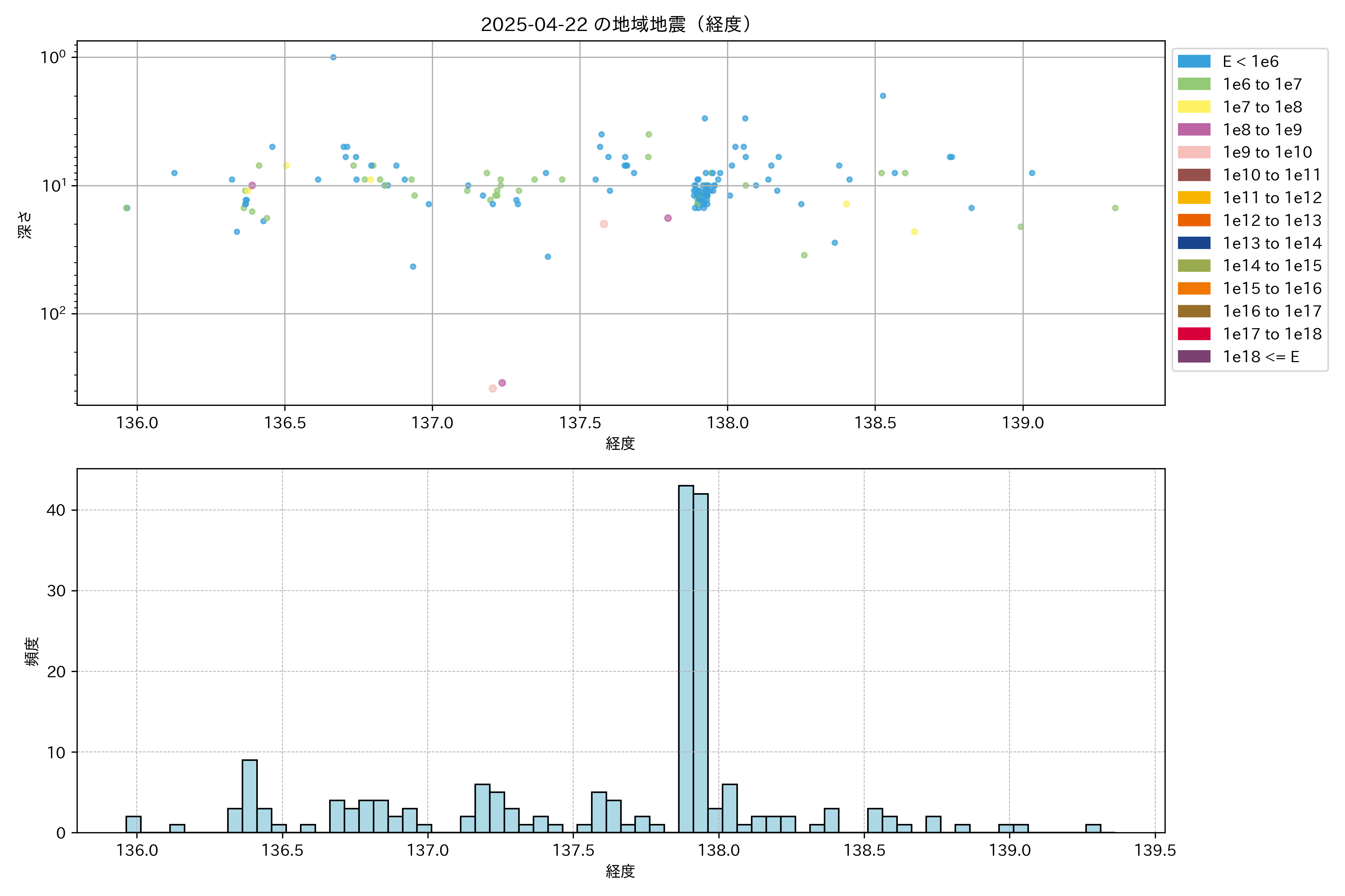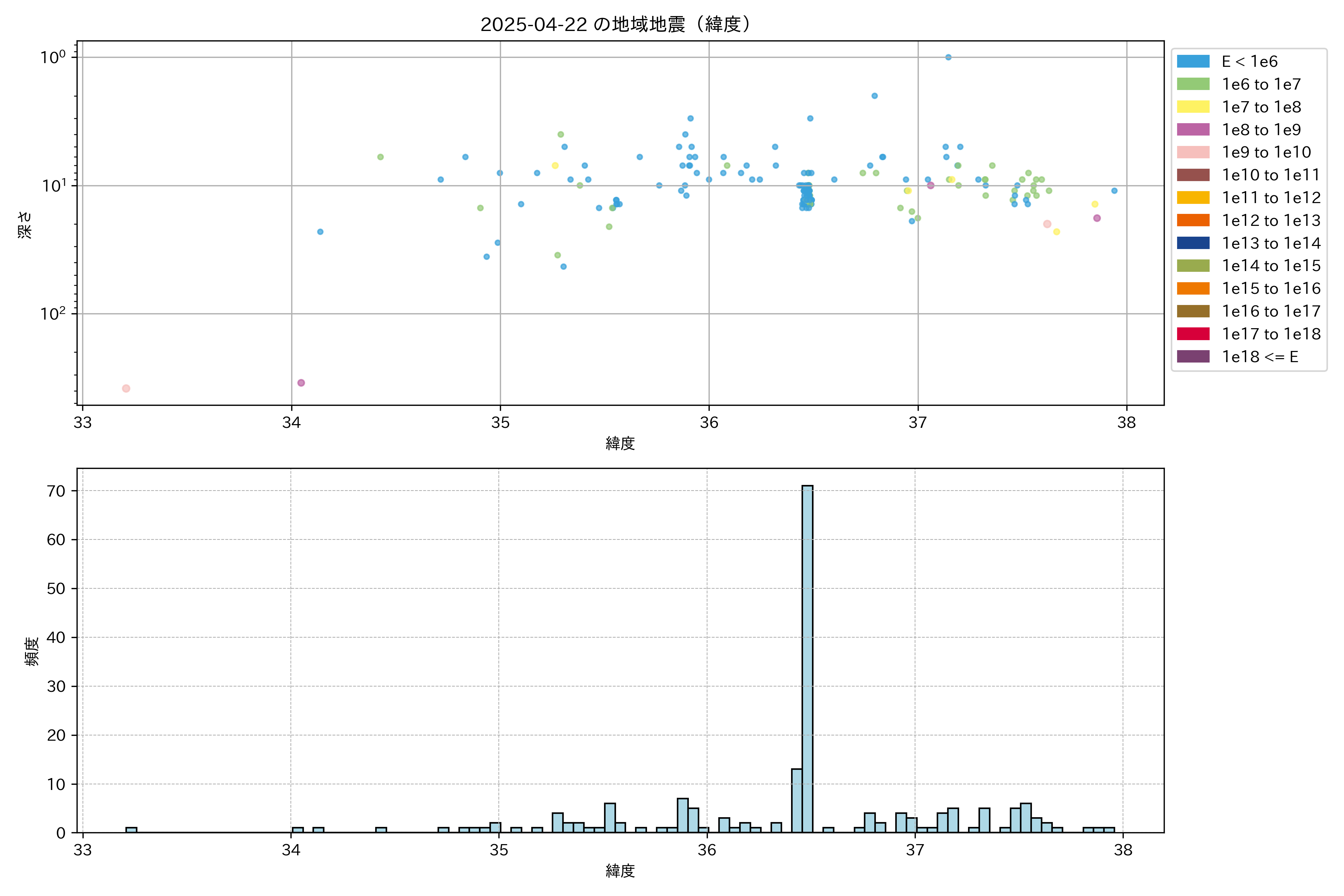 2025年04月22日中部エリア震源マップ